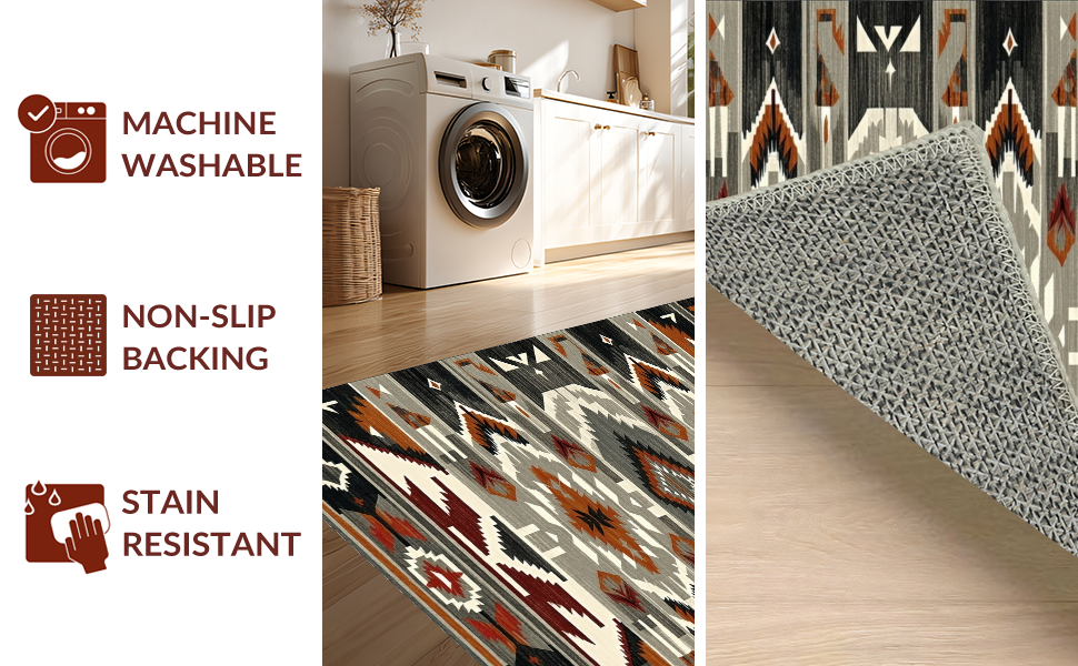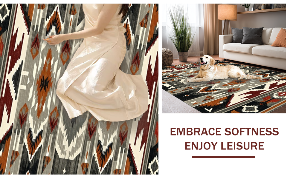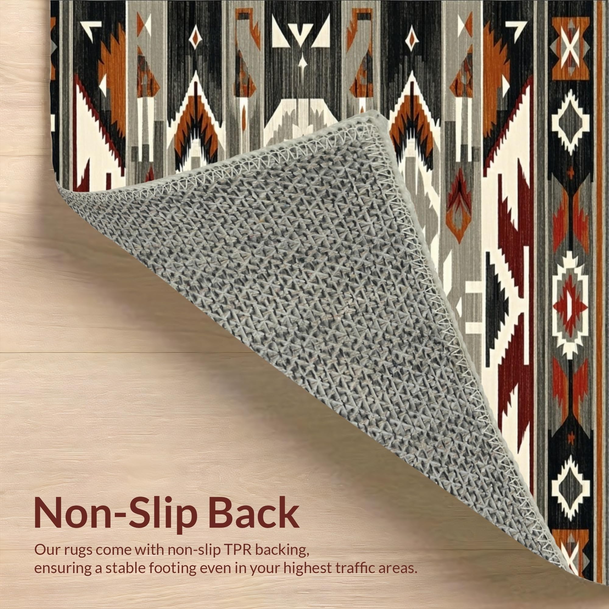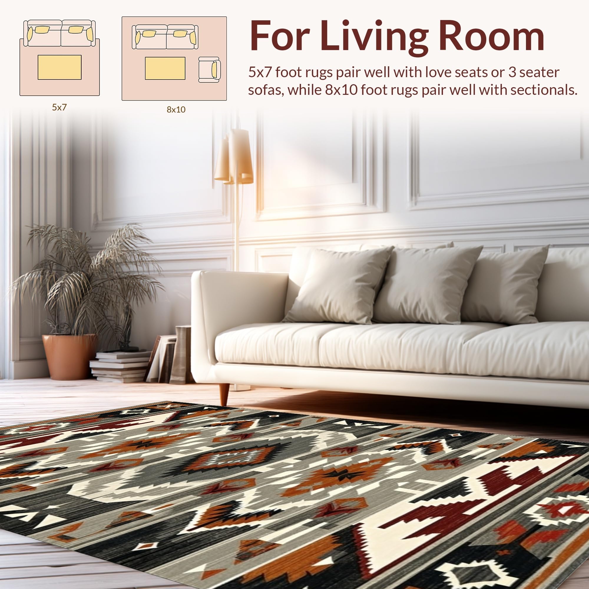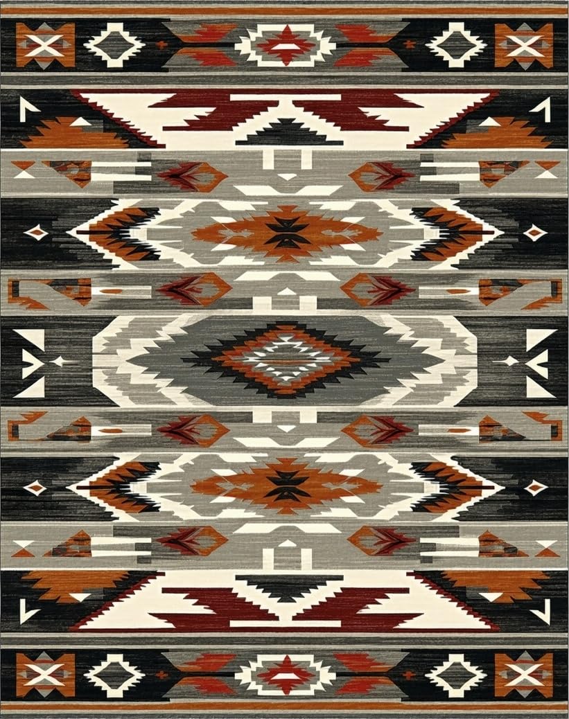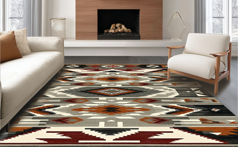 Ultra Soft Area Rug, Non Slip, Stain Resistant, Washable Area Rugs for Living Room, Bedroom, Vibrant Indigenous Artful Touch(Gray) Overview:
