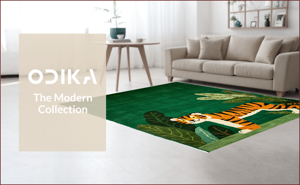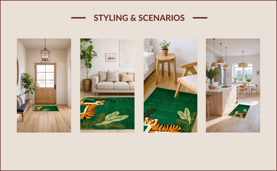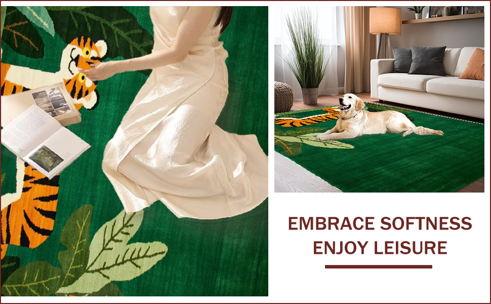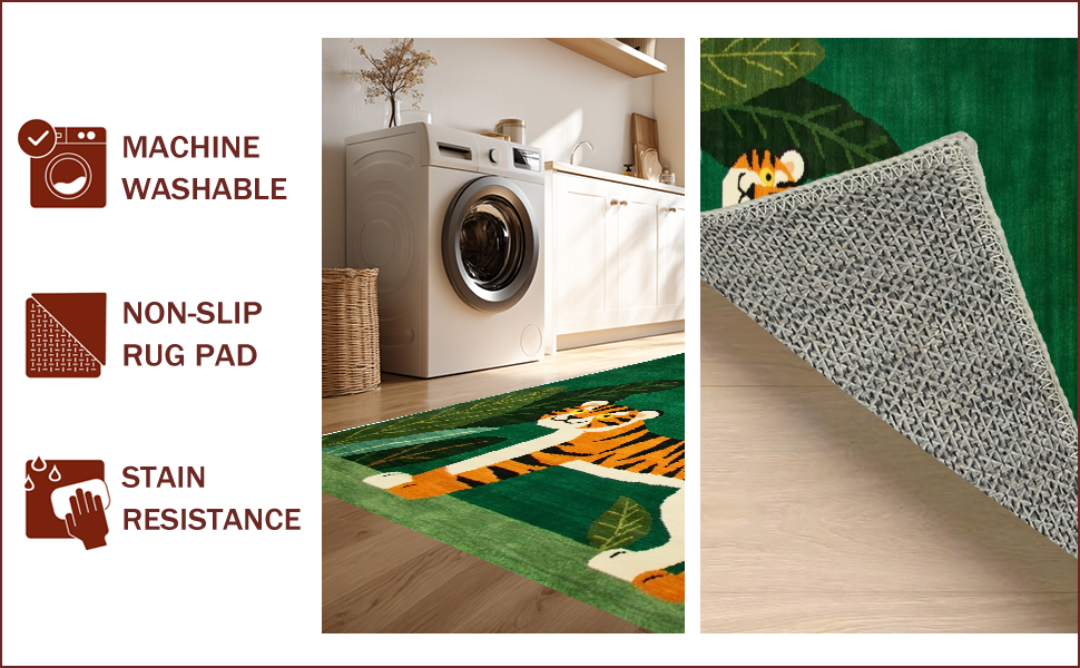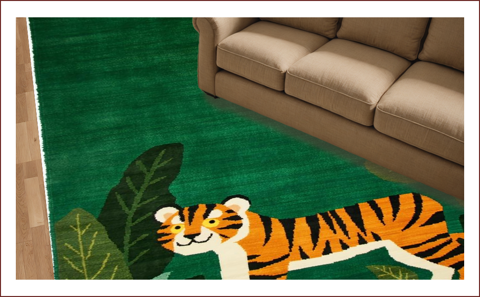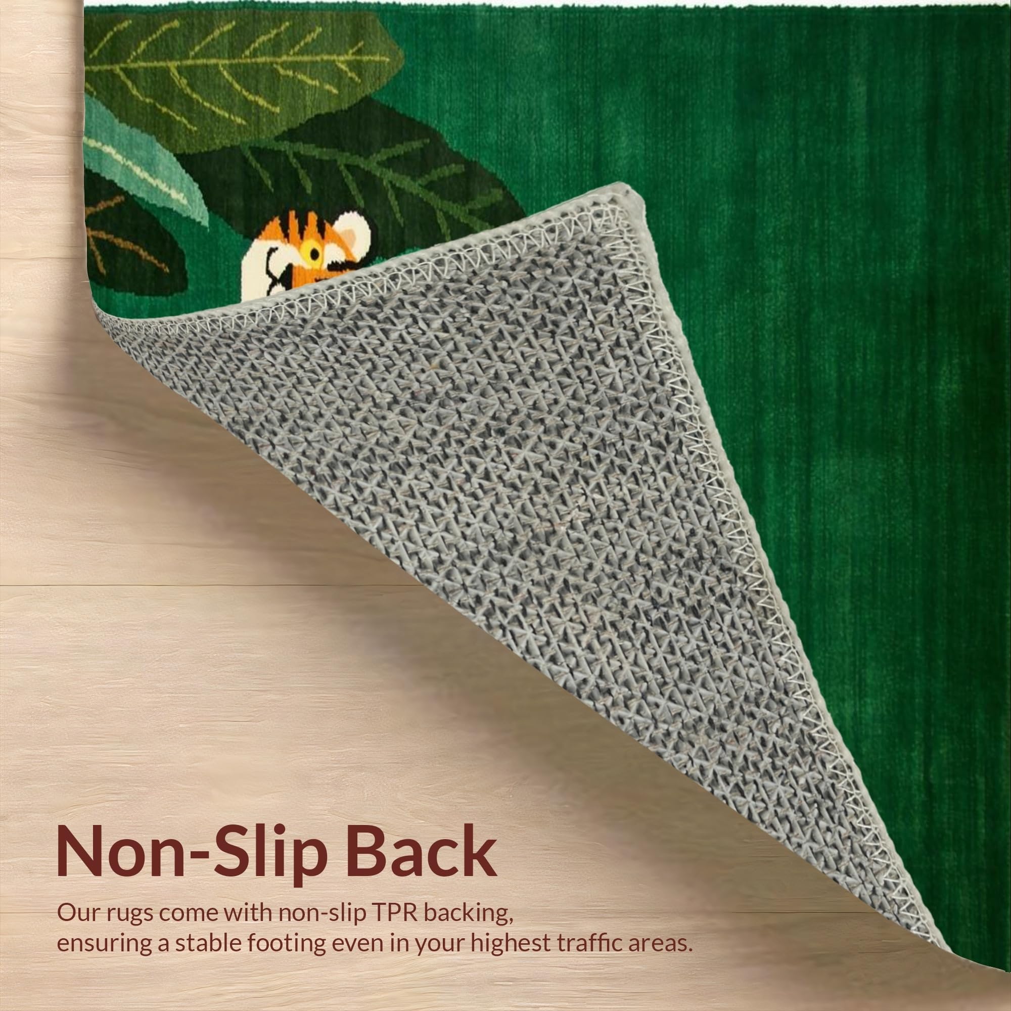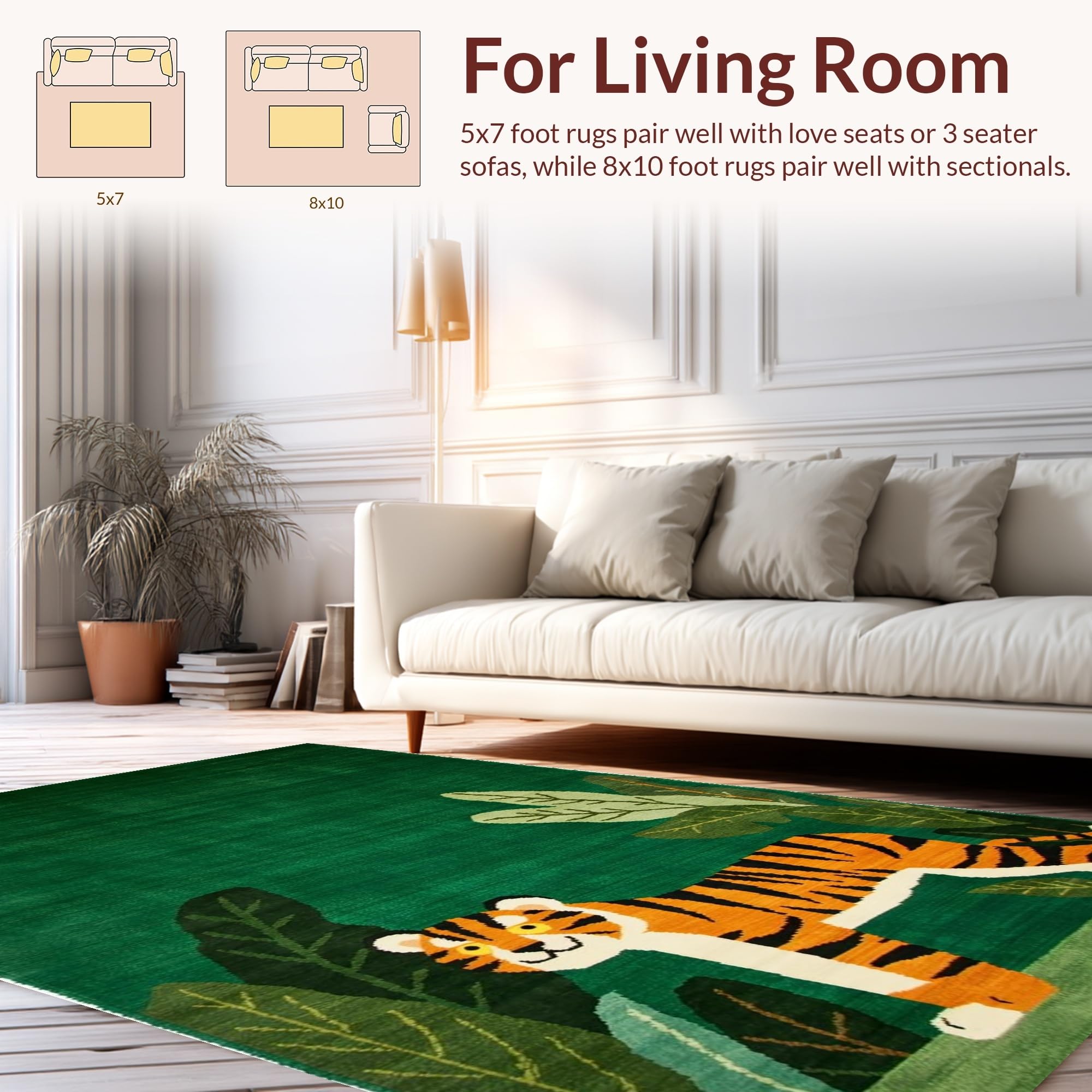 Ultra Soft Area Rug, Non Slip, Stain Resistant, Washable Area Rugs for Living Room, Bedroom, Vibrant Jungle Animal Motif(Green) Overview: