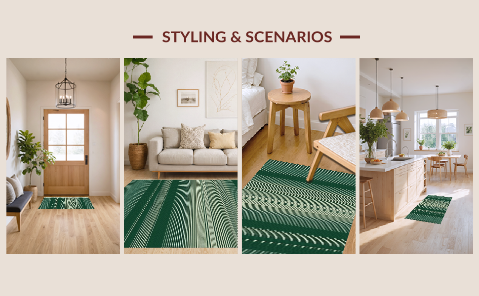 Ultra Soft Area Rug, Non Slip, Stain Resistant, Washable Area Rugs for Living Room, Bedroom, Vibrant Layered Rustic Elegance(Green) Overview: