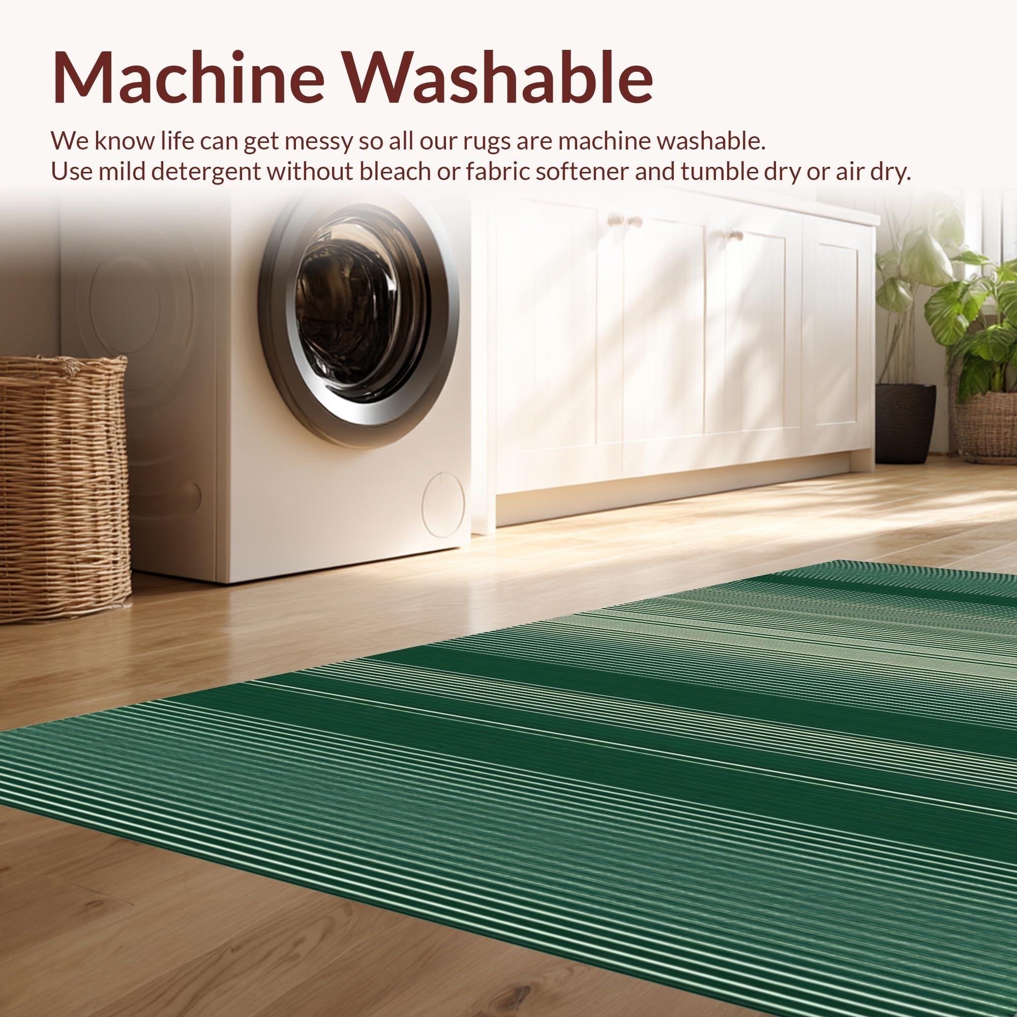 - Machine Washable: Our rugs can be easily thrown in the wash machine.