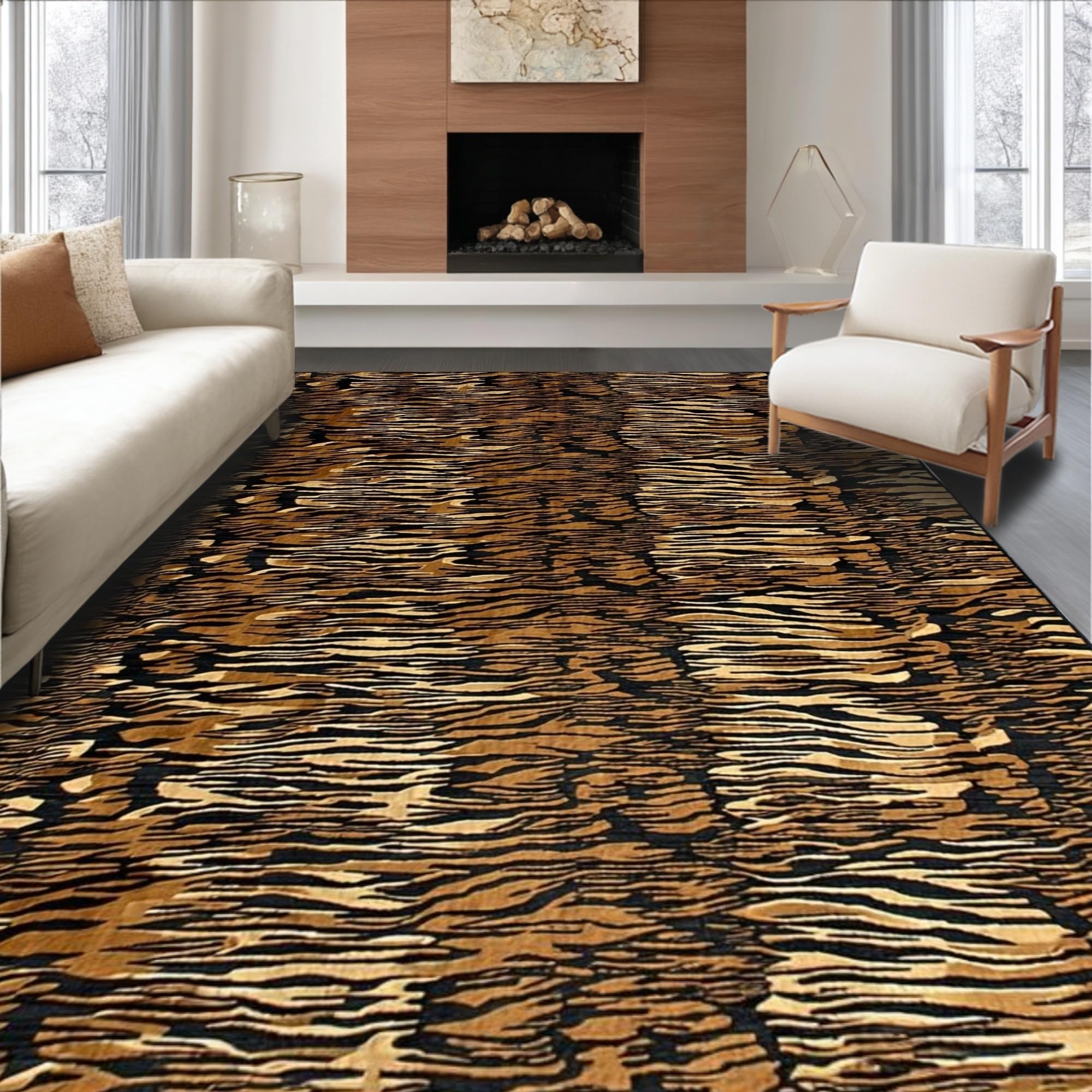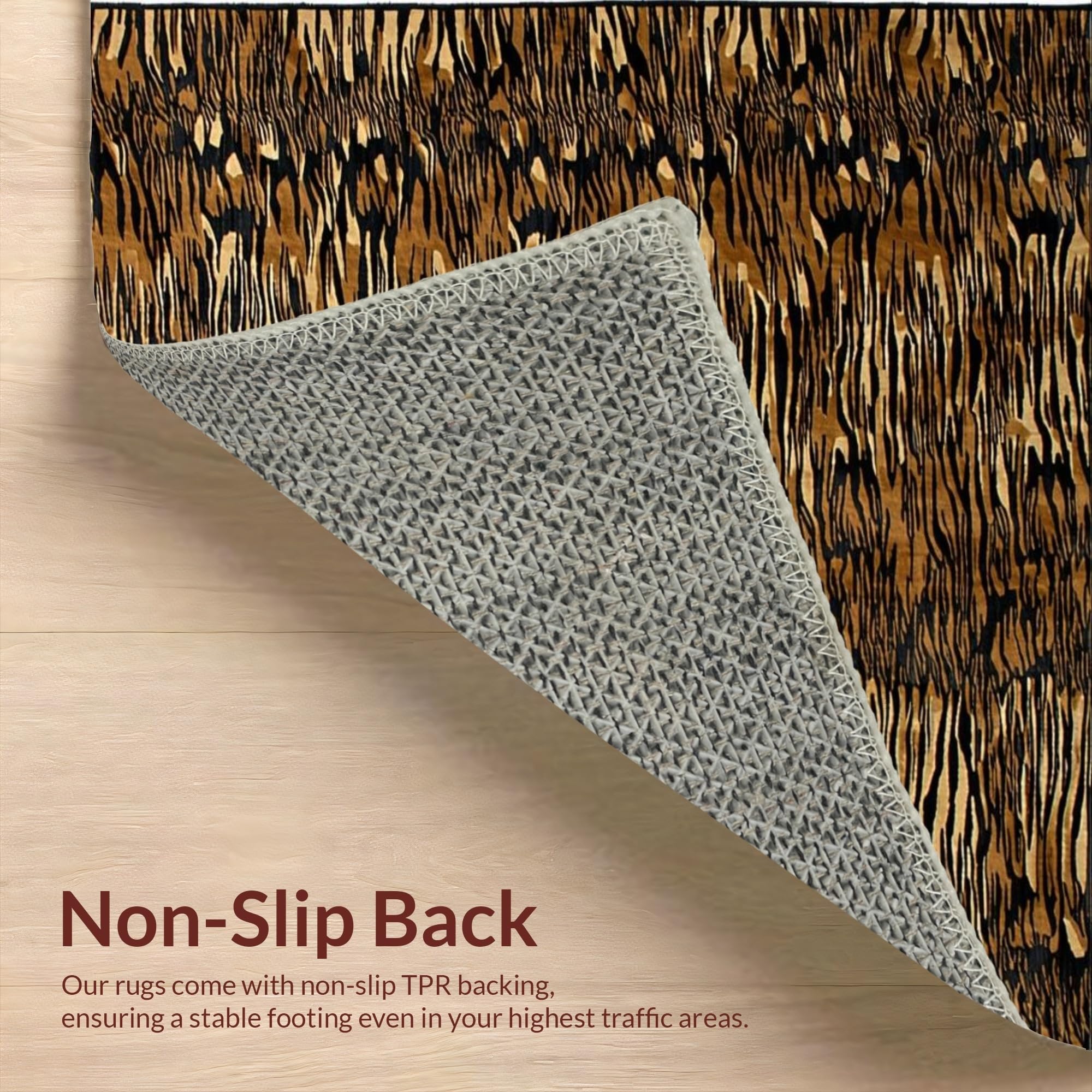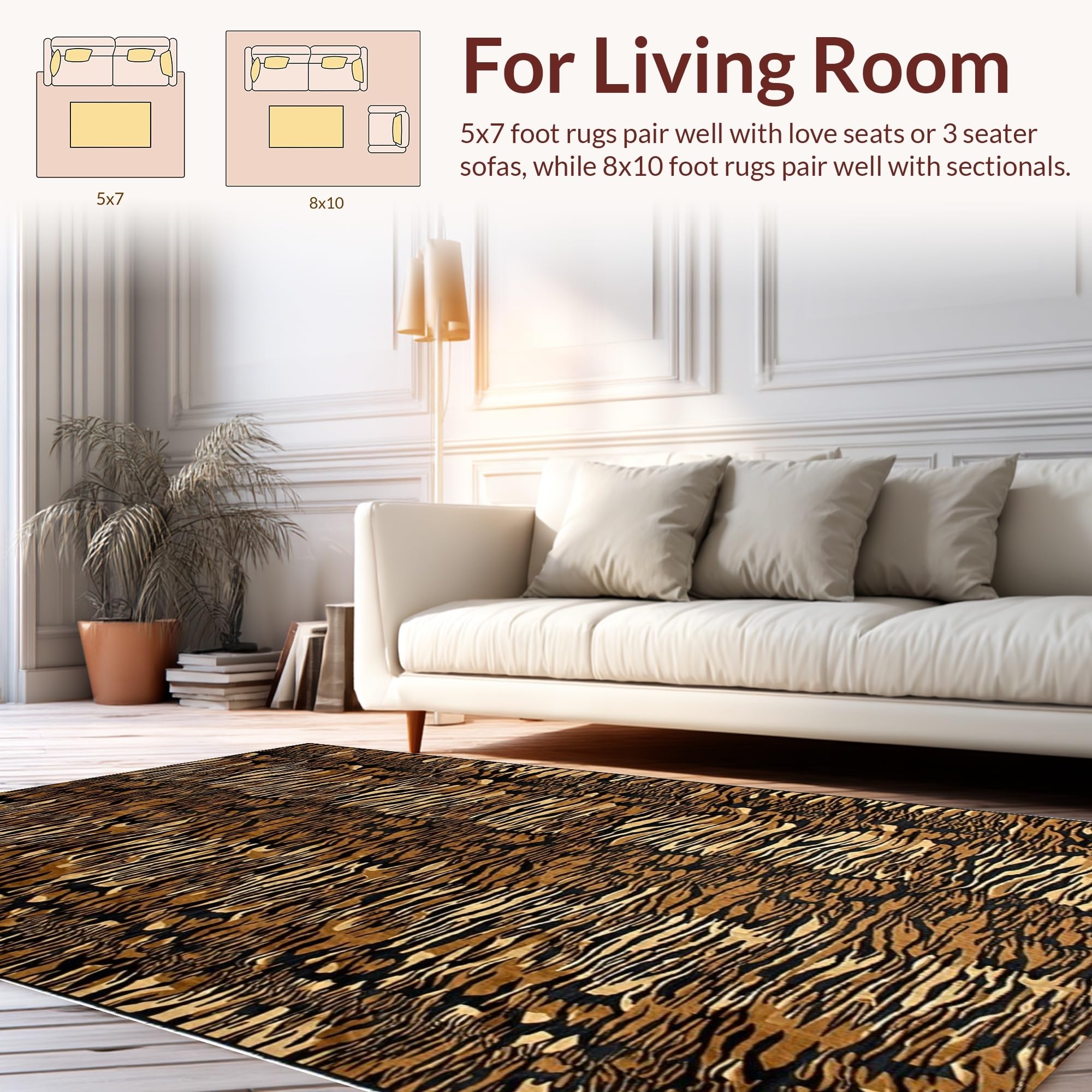 Ultra Soft Area Rug, Non Slip, Stain Resistant, Washable Area Rugs for Living Room, Bedroom, Vibrant Leopard-Inspired Texture(Brown) Overview: