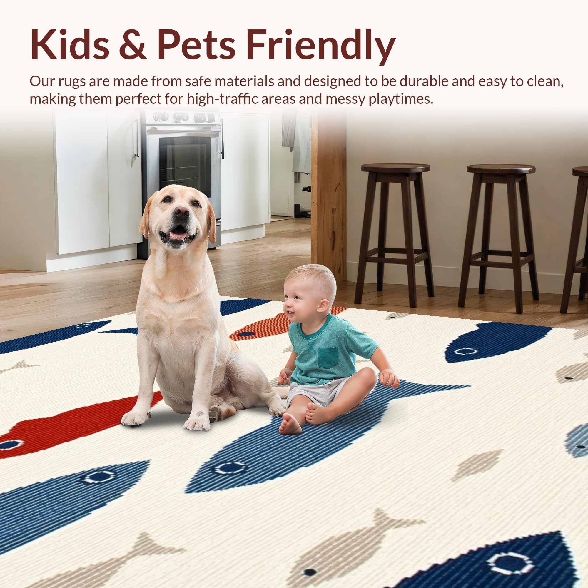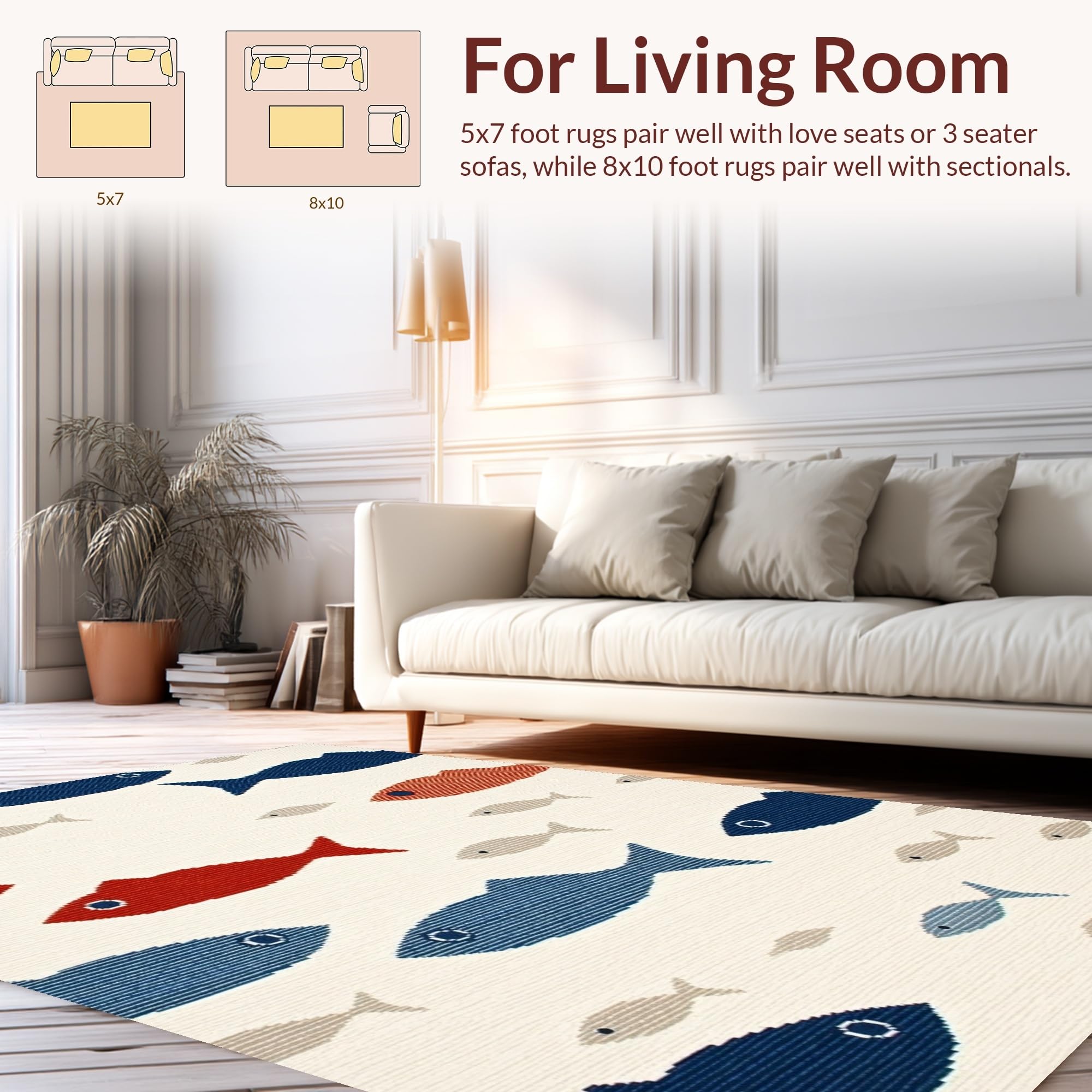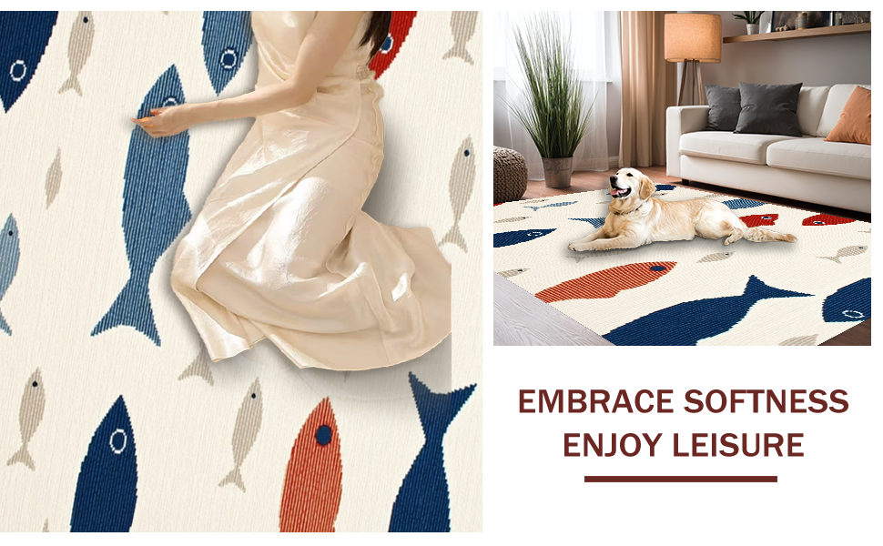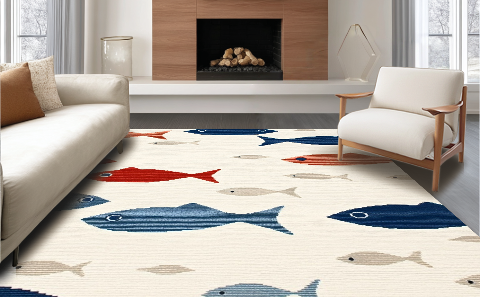 Ultra Soft Area Rug, Non Slip, Stain Resistant, Washable Area Rugs for Living Room, Bedroom, Vibrant Marine Life Visuals(Beige) Overview: