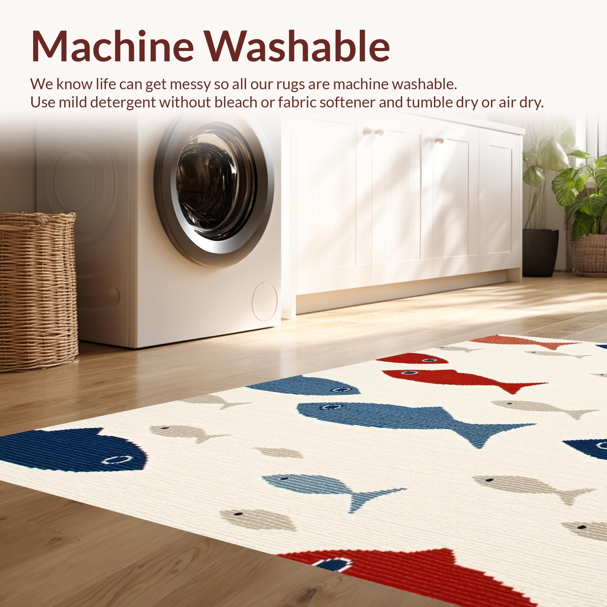 - Machine Washable: Our rugs can be easily thrown in the wash machine.