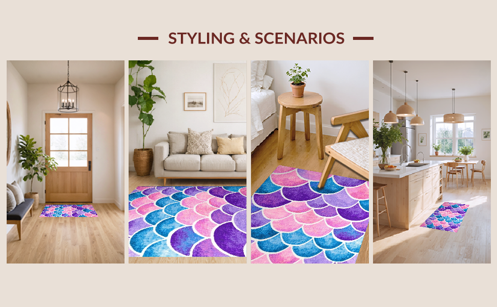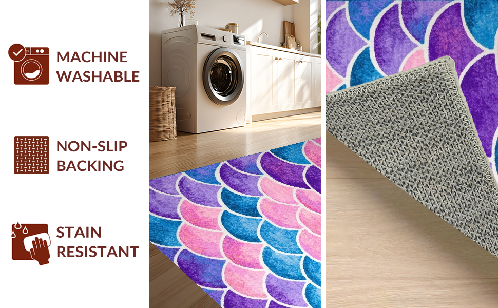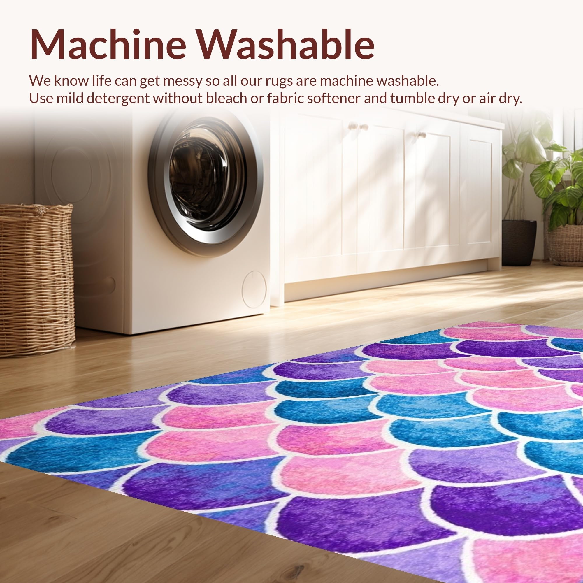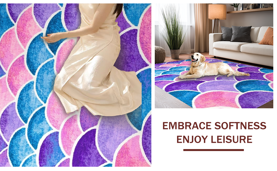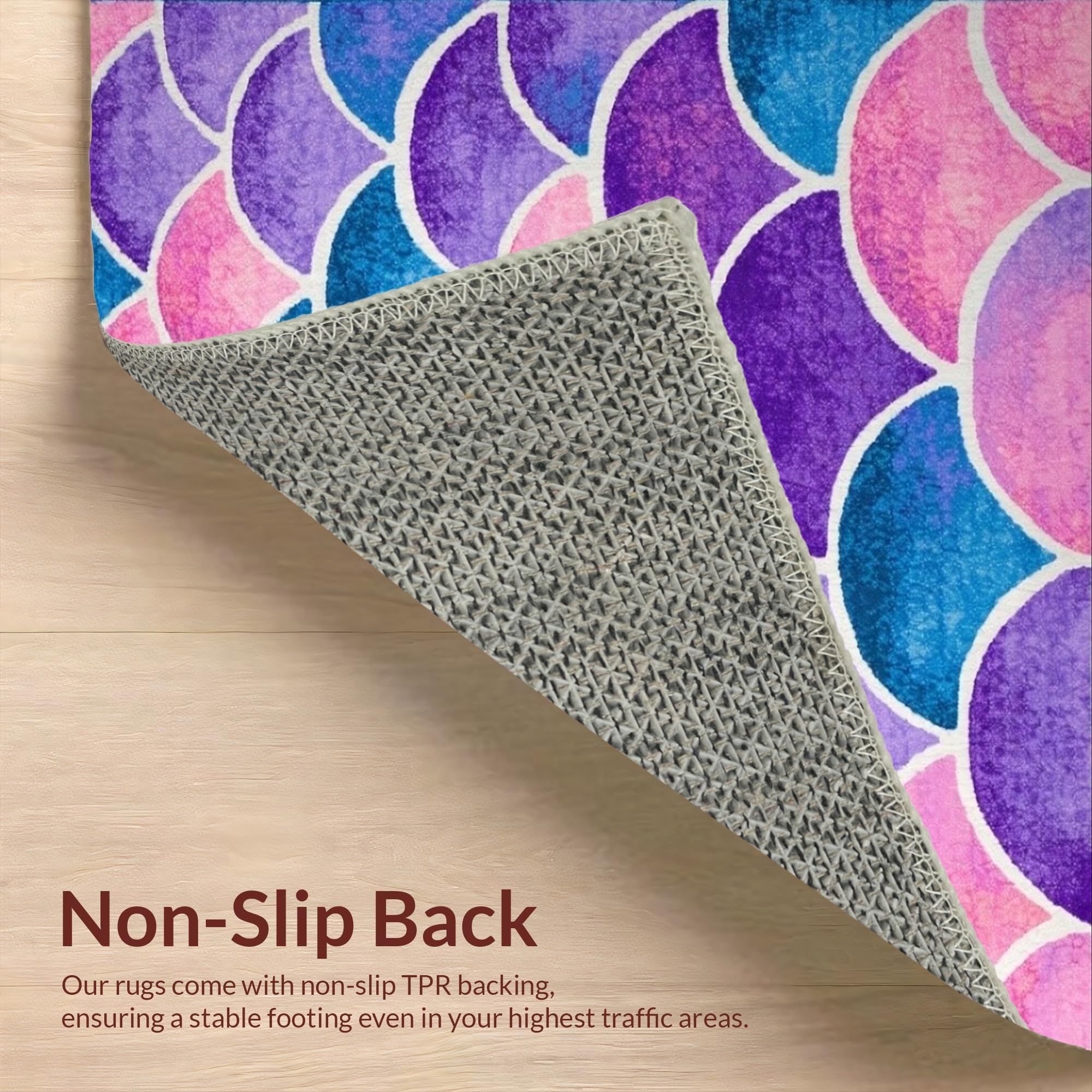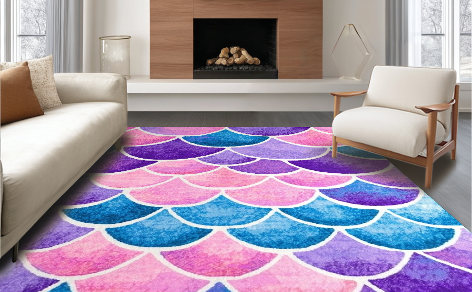 Ultra Soft Area Rug, Non Slip, Stain Resistant, Washable Area Rugs for Living Room, Bedroom, Vibrant Mermaid Scale Aesthetic(Pink) Overview:
