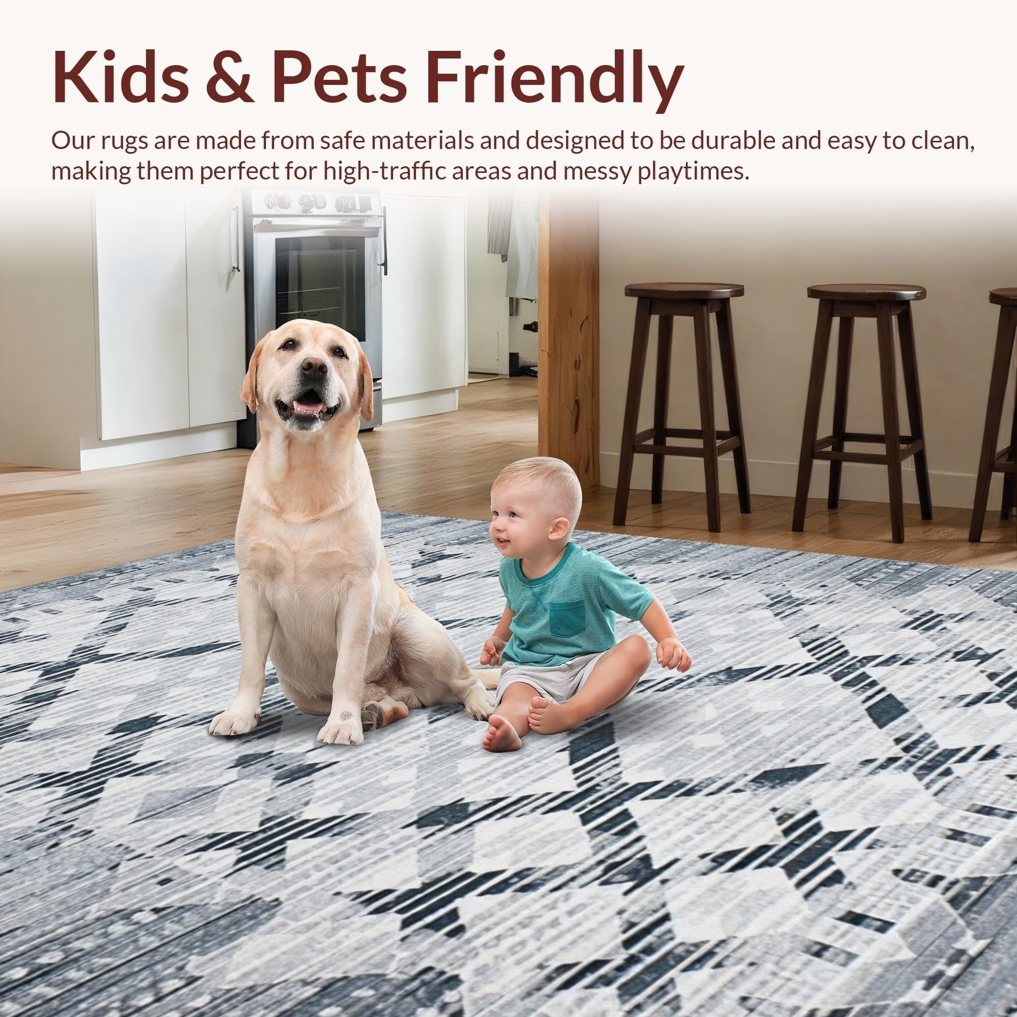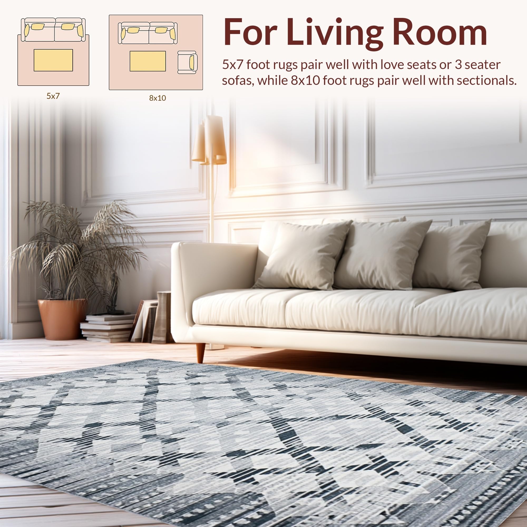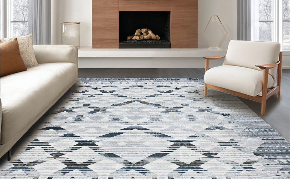 Ultra Soft Area Rug, Non Slip, Stain Resistant, Washable Area Rugs for Living Room, Bedroom, Vibrant Modern Grey Ogee Design(Gray) Overview: