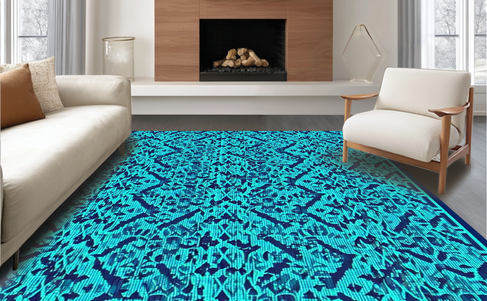 Ultra Soft Area Rug, Non Slip, Stain Resistant, Washable Area Rugs for Living Room, Bedroom, Vibrant Multi-Color Geometric Design(Blue) Overview: