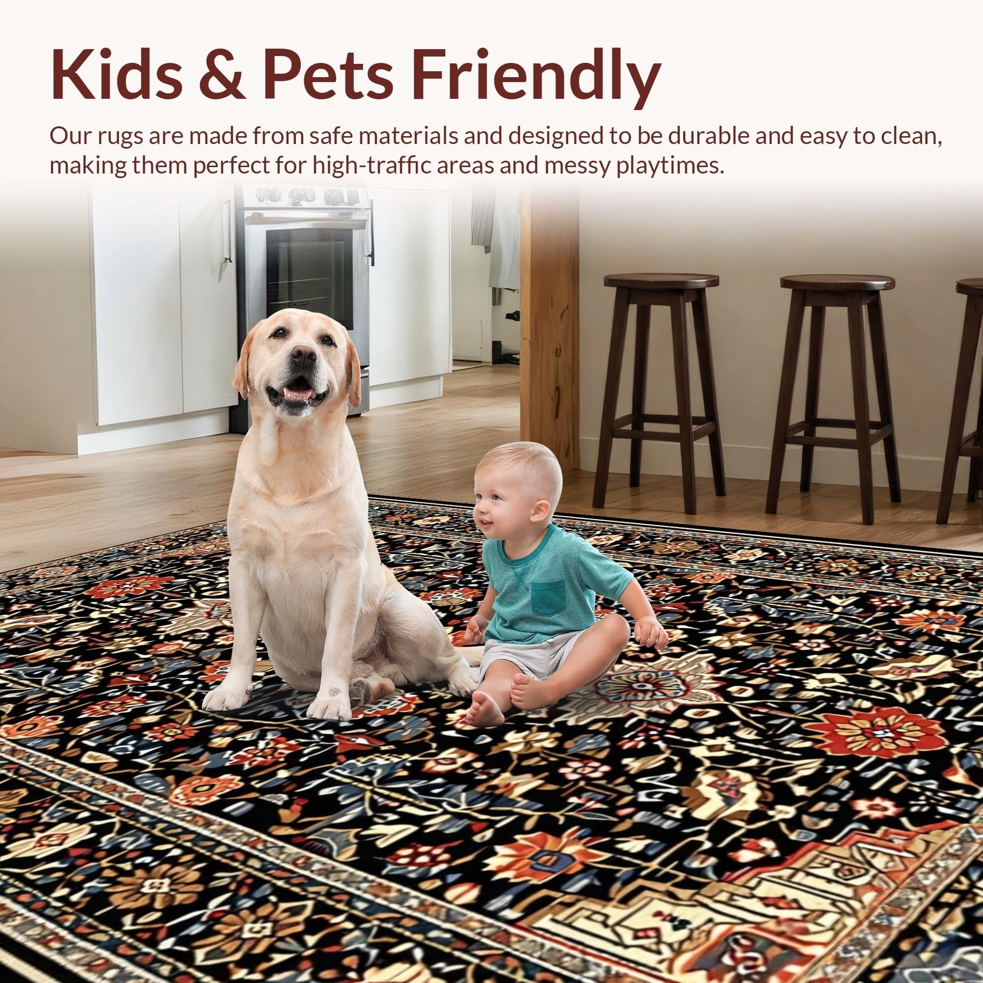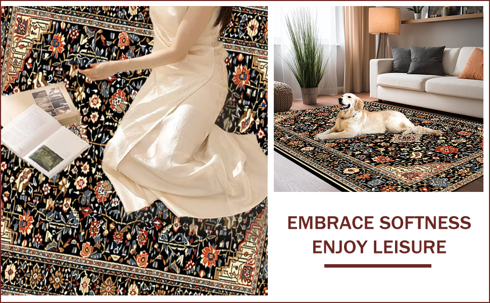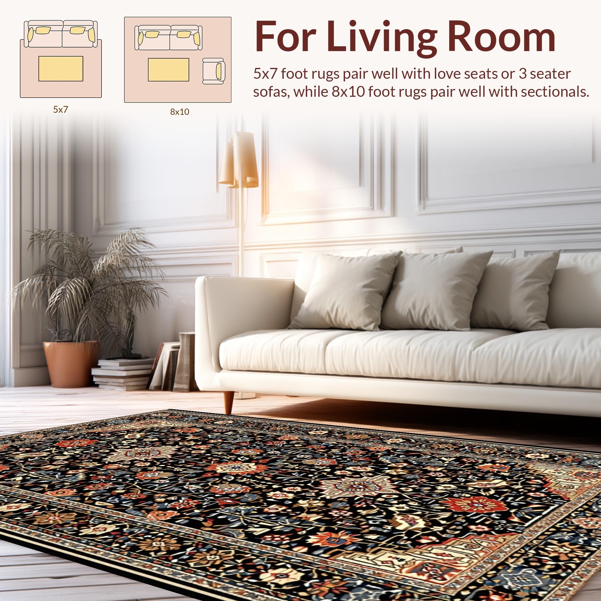 Ultra Soft Area Rug, Non Slip, Stain Resistant, Washable Area Rugs for Living Room, Bedroom, Vibrant Multi-Hued Textured Weave(Black) Overview: