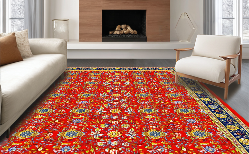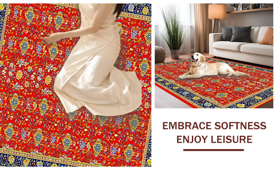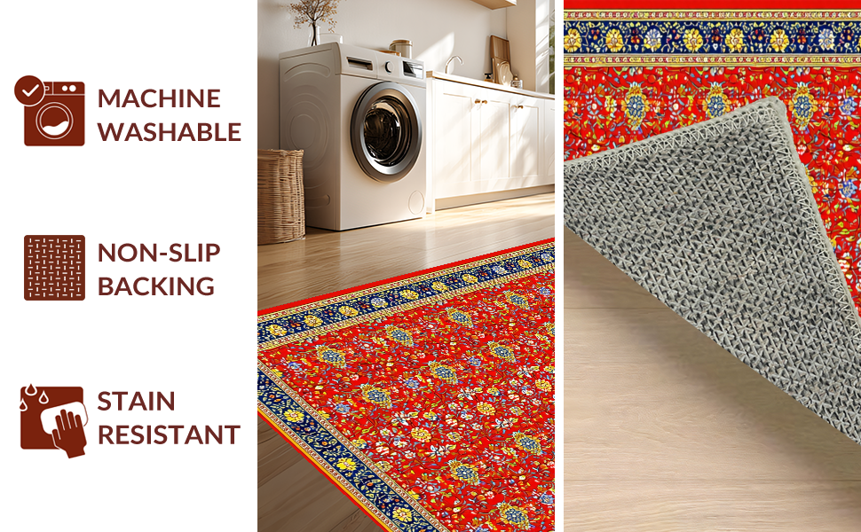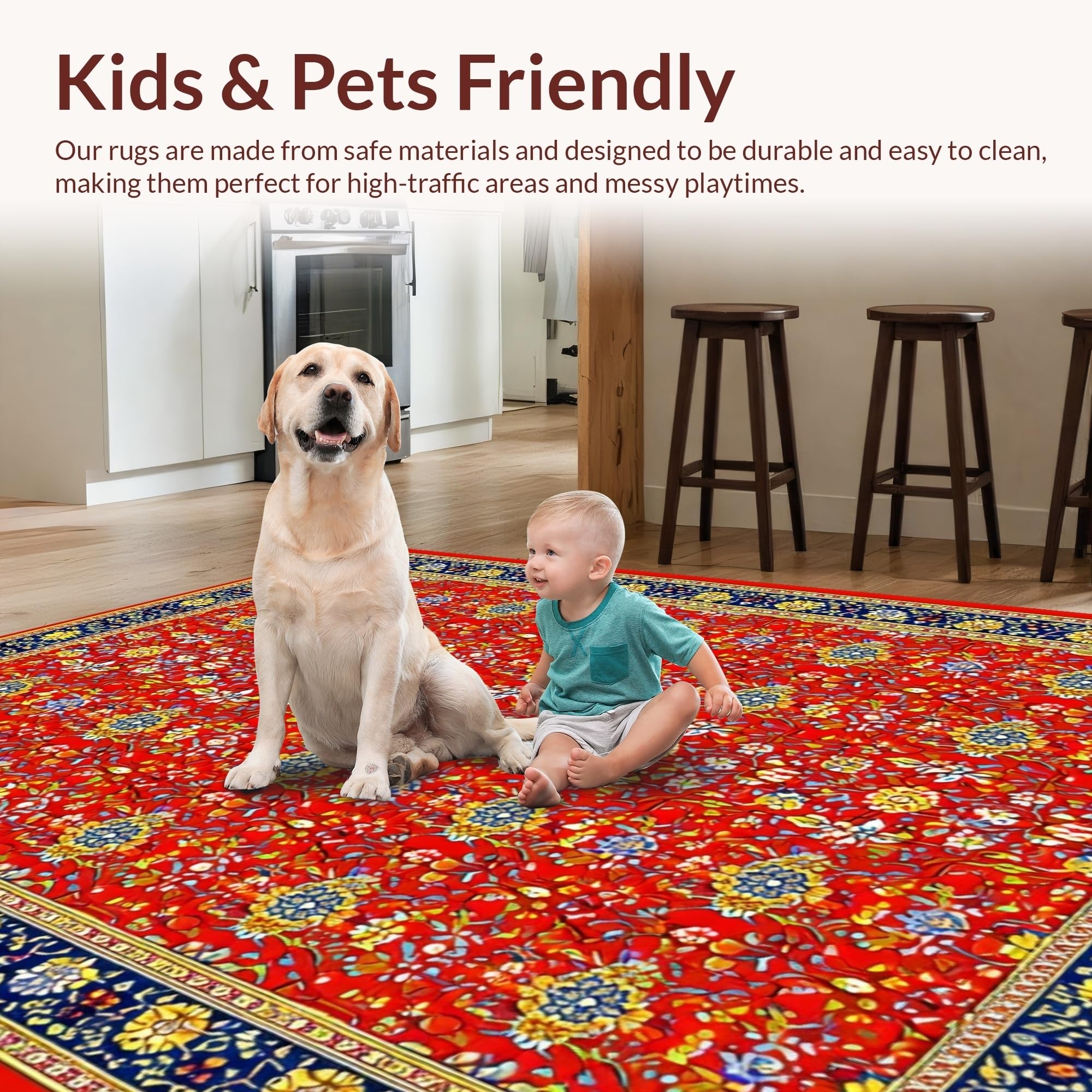 Ultra Soft Area Rug, Non Slip, Stain Resistant, Washable Area Rugs for Living Room, Bedroom, Vibrant Multicolor Trellis Design(Red) Overview: