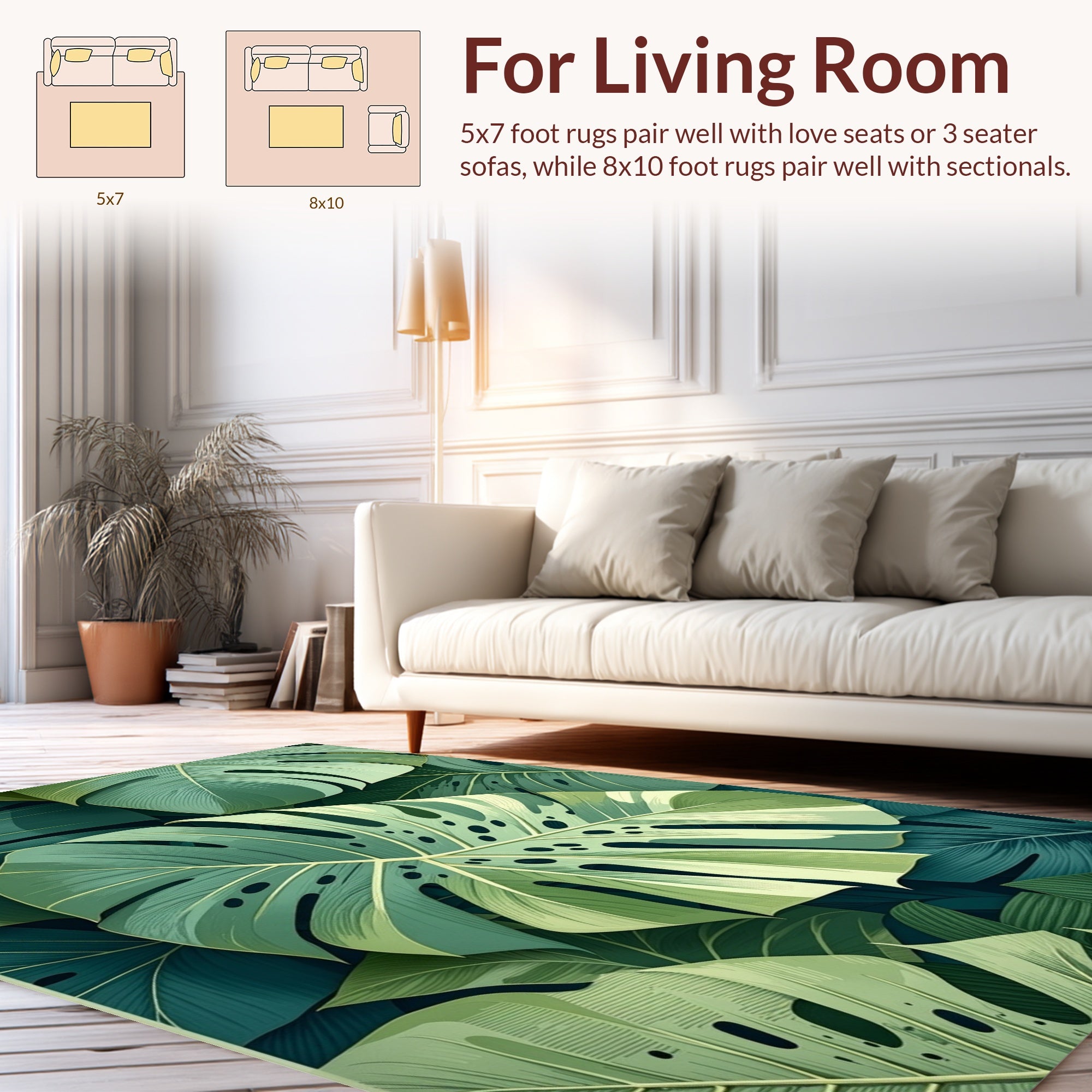 Flatwoven High Traffic Area Rug, Vibrant Nature Inspired Composition, Non Slip, Stain Resistant, Washable Area Rugs for Living Room, Bedroom (Green) Overview: