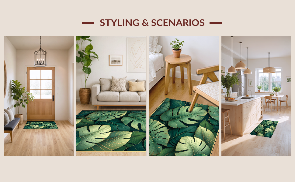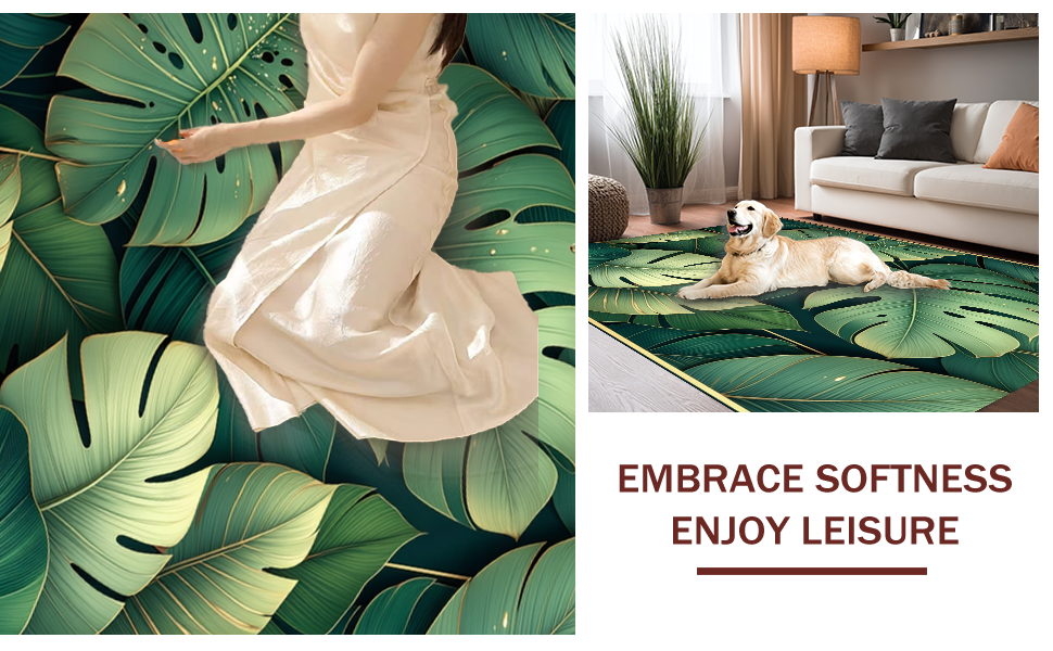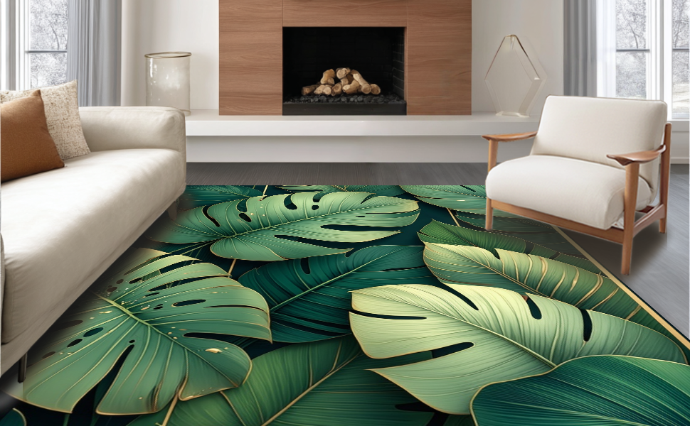 Ultra Soft Area Rug, Non Slip, Stain Resistant, Washable Area Rugs for Living Room, Bedroom, Vibrant Nature-Inspired Floor Art(Green) Overview: