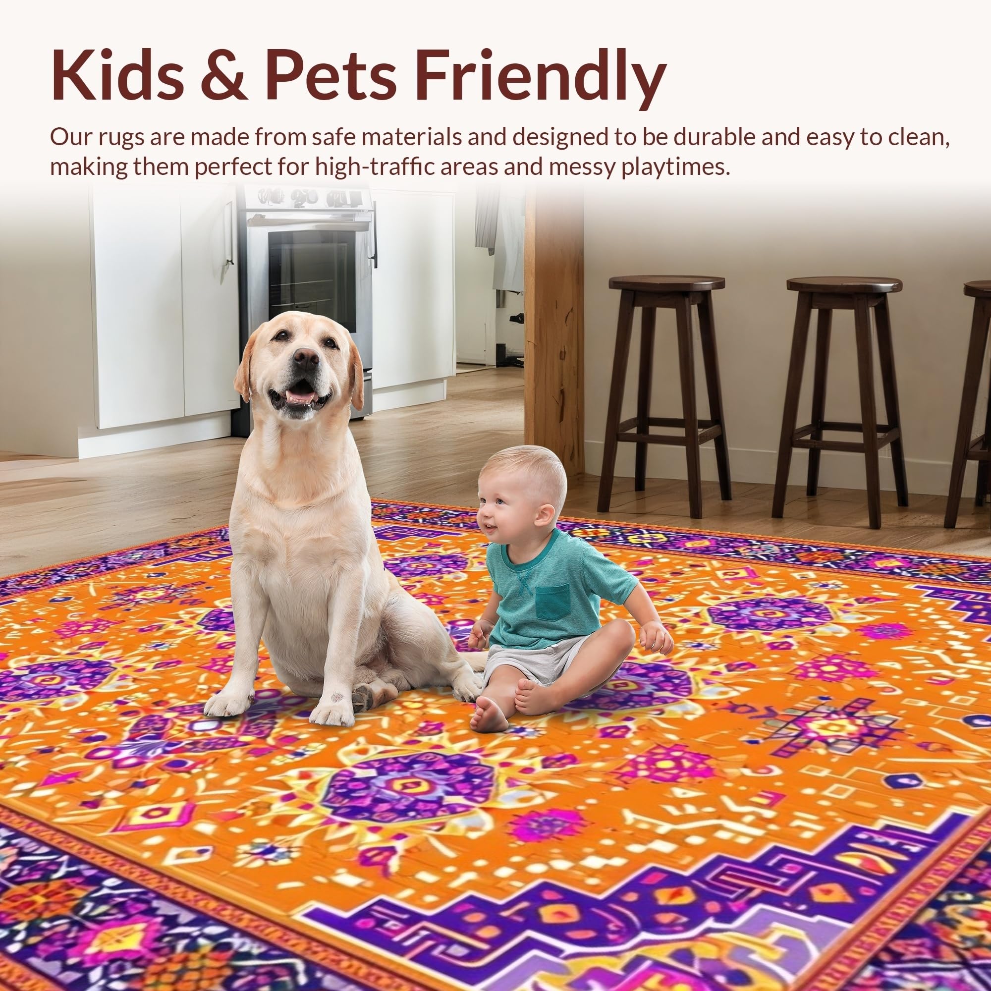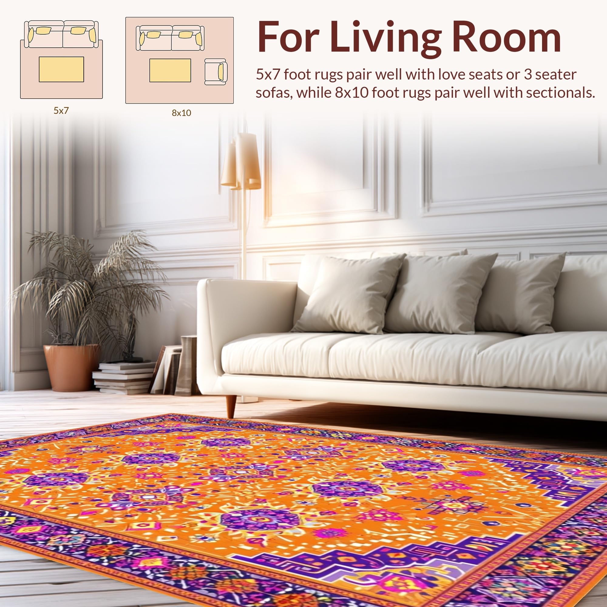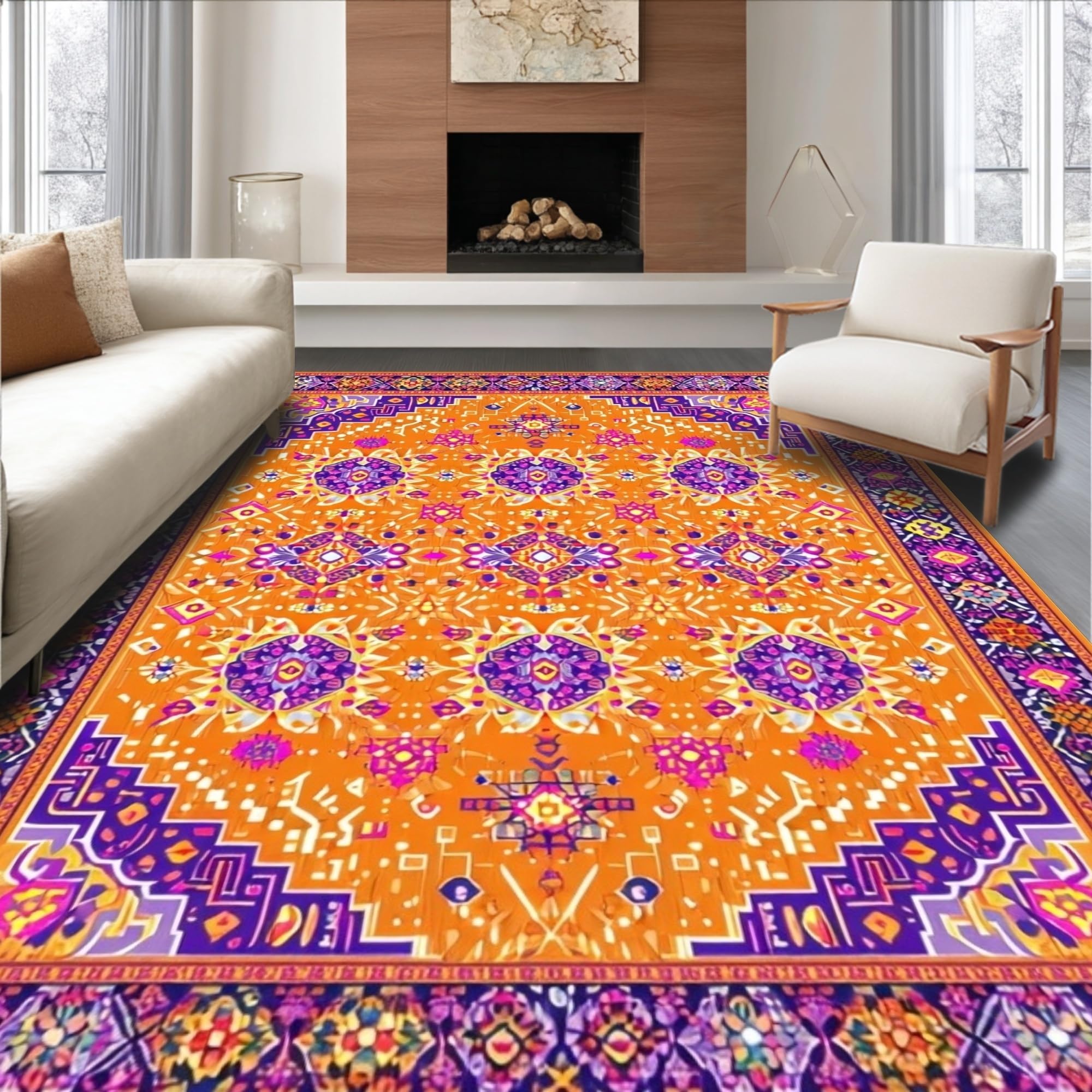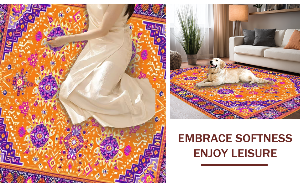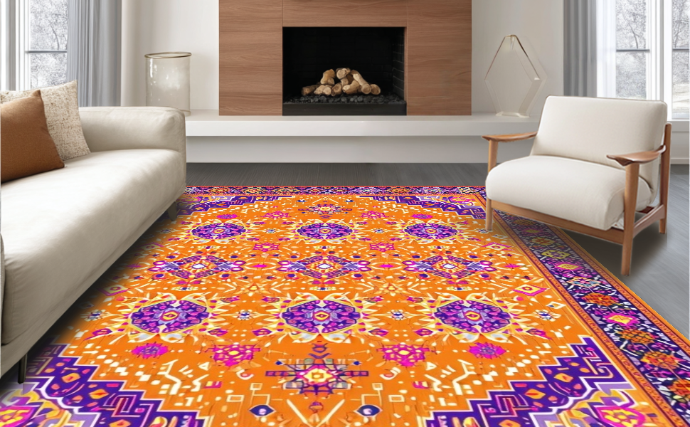 Ultra Soft Area Rug, Non Slip, Stain Resistant, Washable Area Rugs for Living Room, Bedroom, Vibrant Orange Tribal Aesthetic(Orange) Overview: