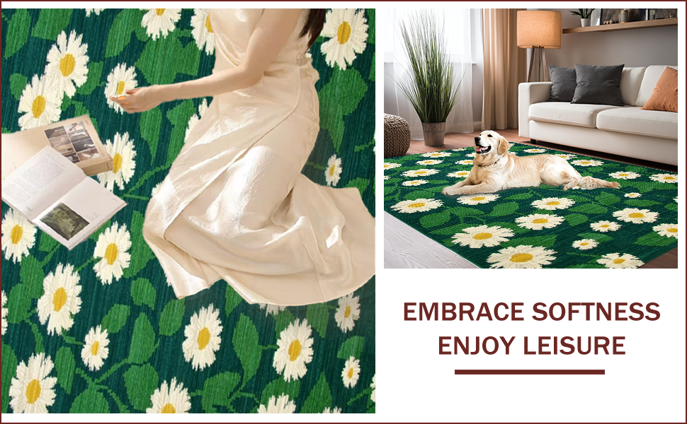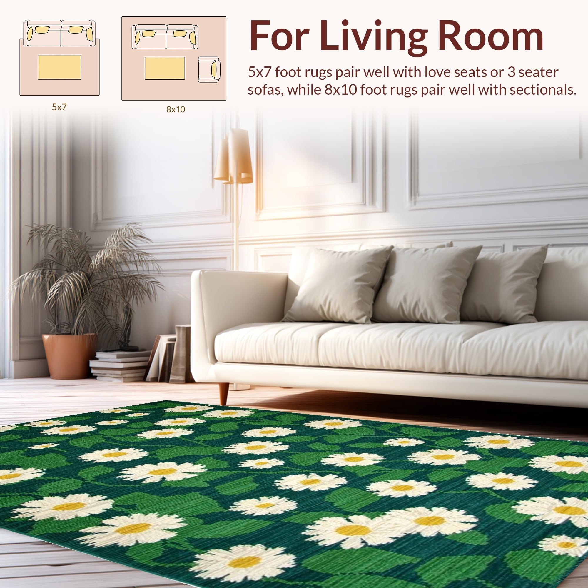 Ultra Soft Area Rug, Non Slip, Stain Resistant, Washable Area Rugs for Living Room, Bedroom, Vibrant Organic Shaggy Design(Green) Overview: