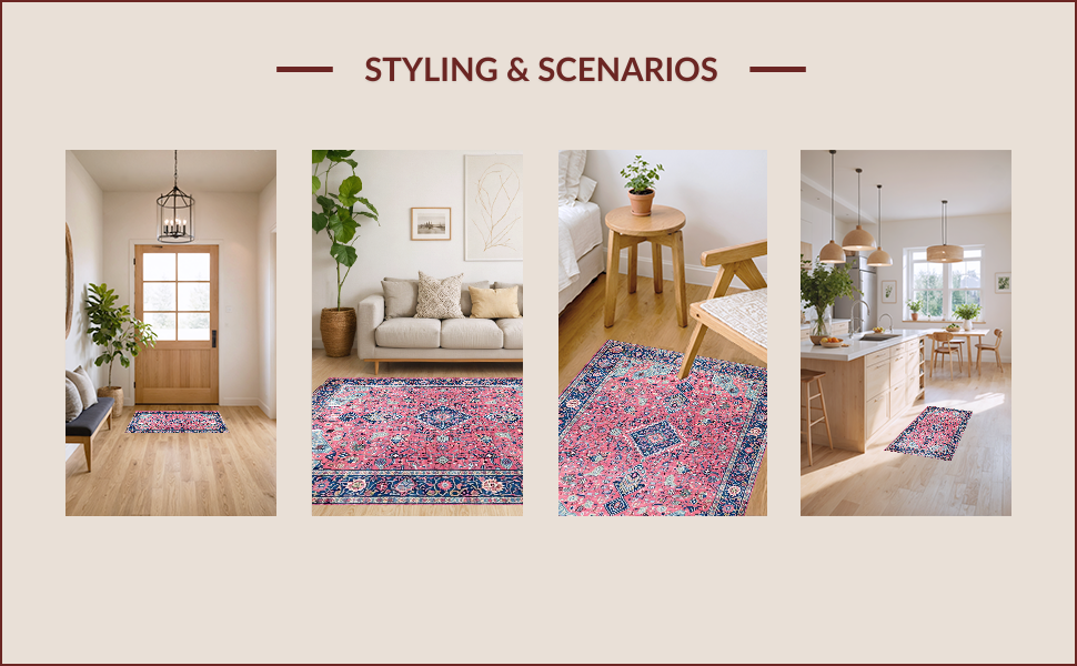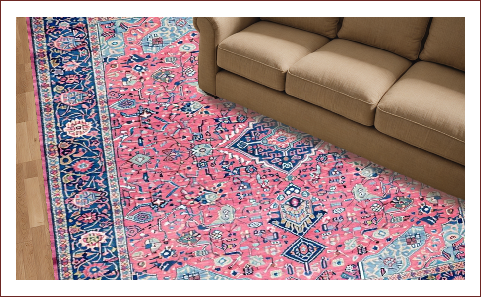 Ultra Soft Area Rug, Non Slip, Stain Resistant, Washable Area Rugs for Living Room, Bedroom, Vibrant Pastel Geometric Motif(Pink) Overview: