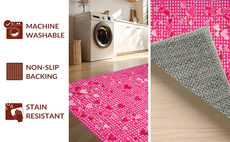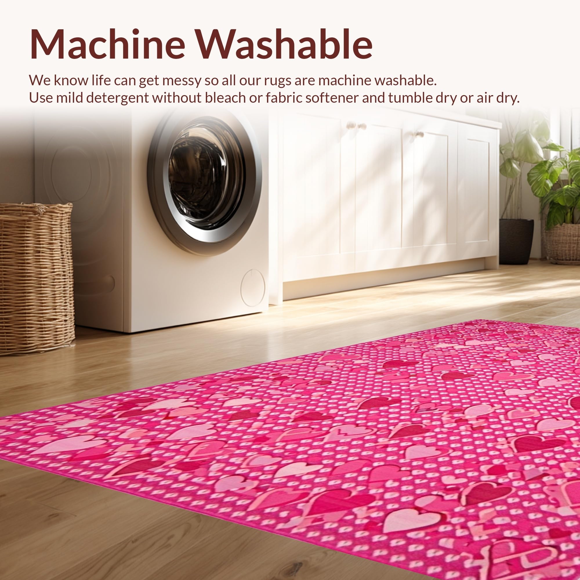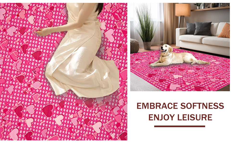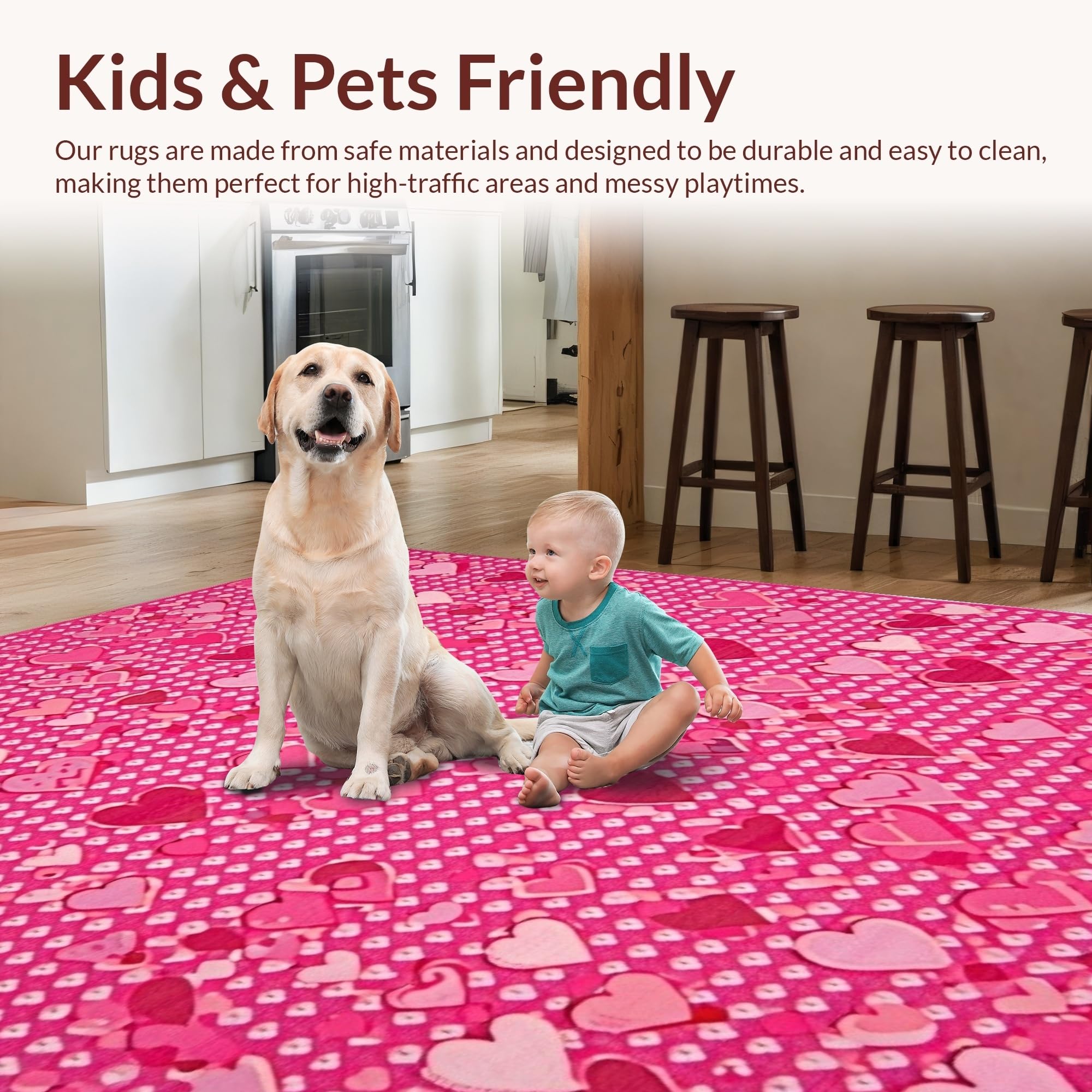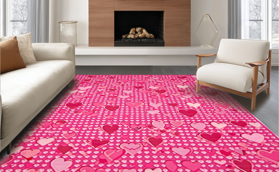 Ultra Soft Area Rug, Non Slip, Stain Resistant, Washable Area Rugs for Living Room, Bedroom, Vibrant Pastel Heart Aesthetic(Pink) Overview: