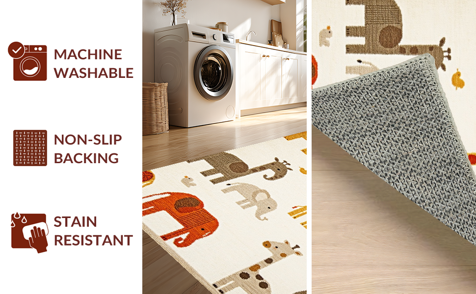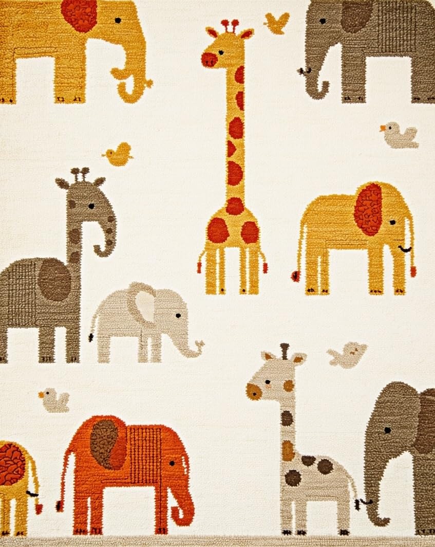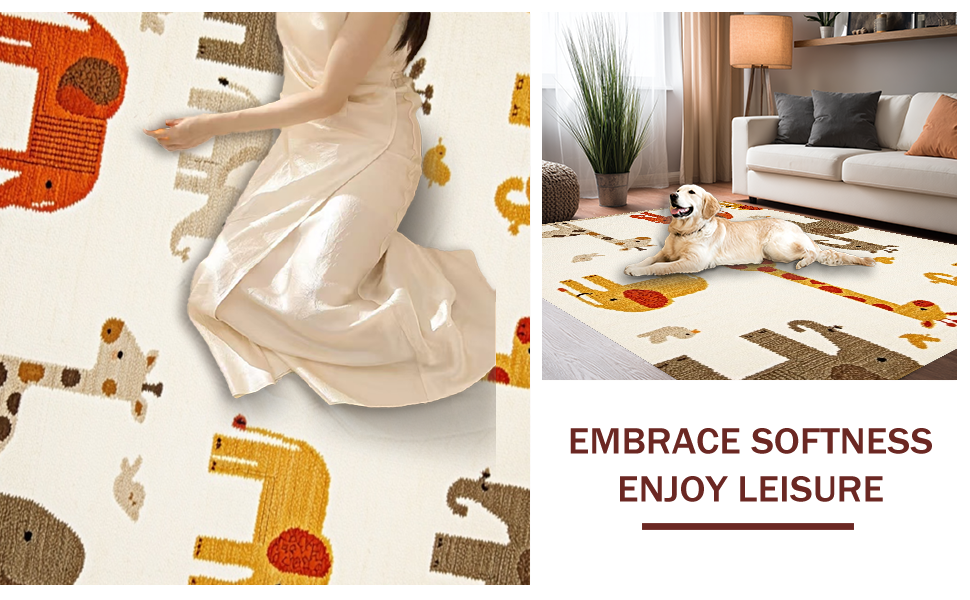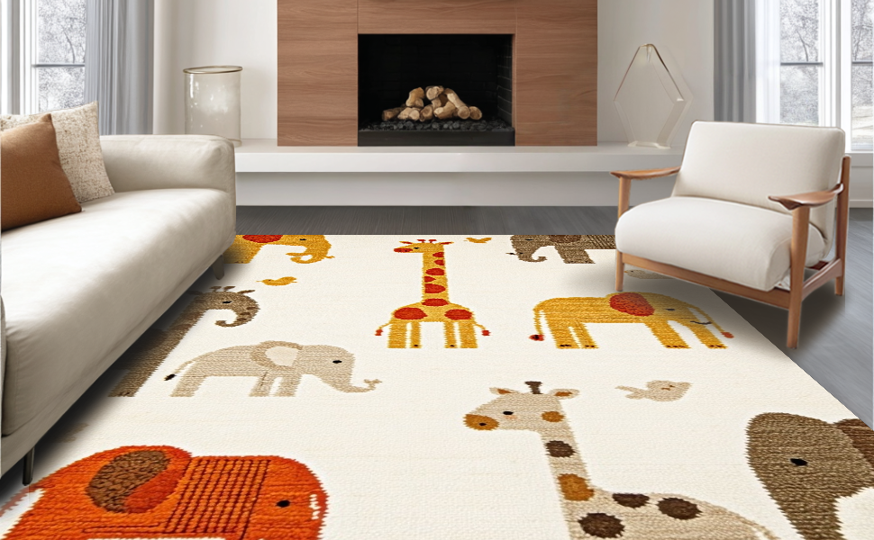 Ultra Soft Area Rug, Non Slip, Stain Resistant, Washable Area Rugs for Living Room, Bedroom, Vibrant Pastel Safari Scene Design(Beige) Overview: