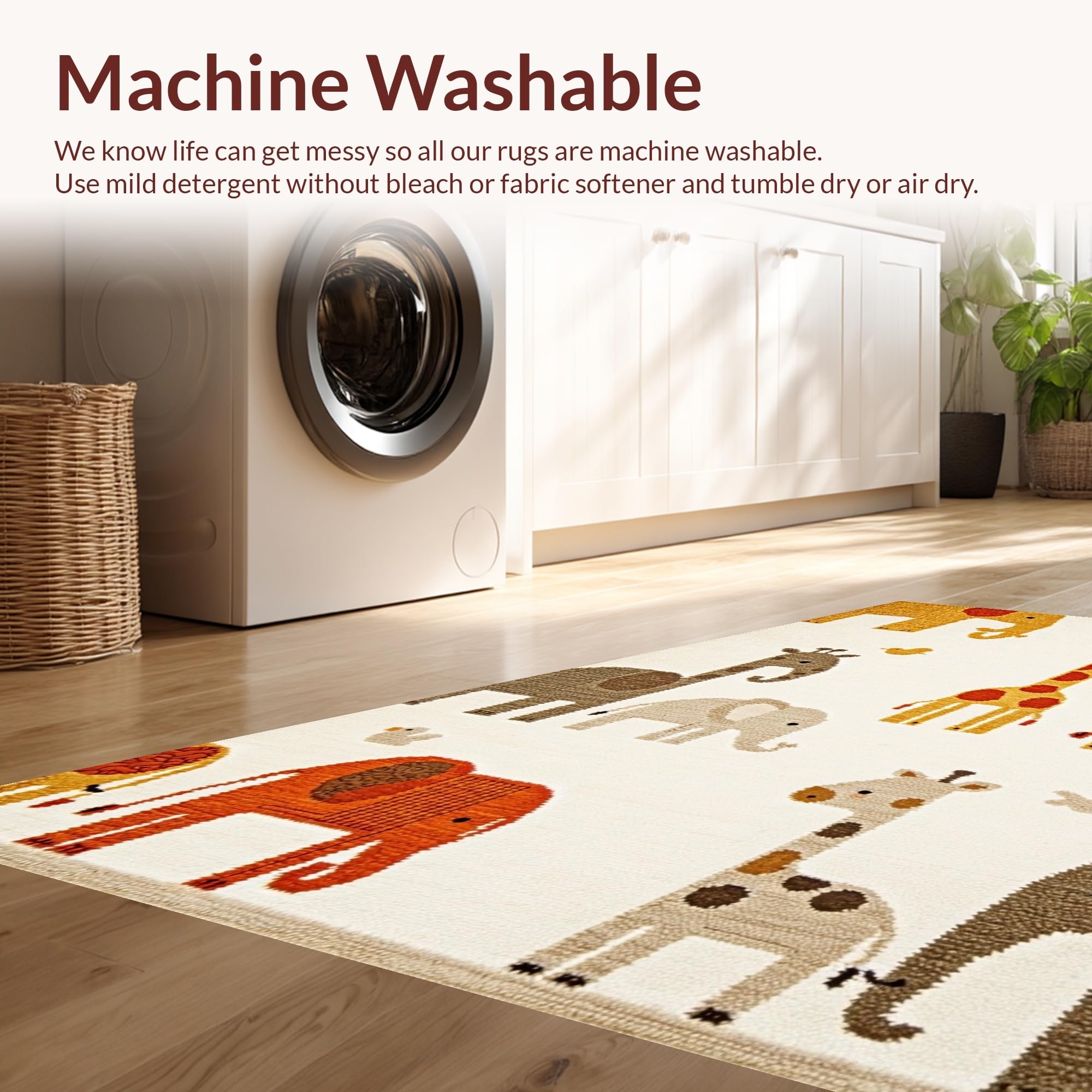 - Machine Washable: Our rugs can be easily thrown in the wash machine.