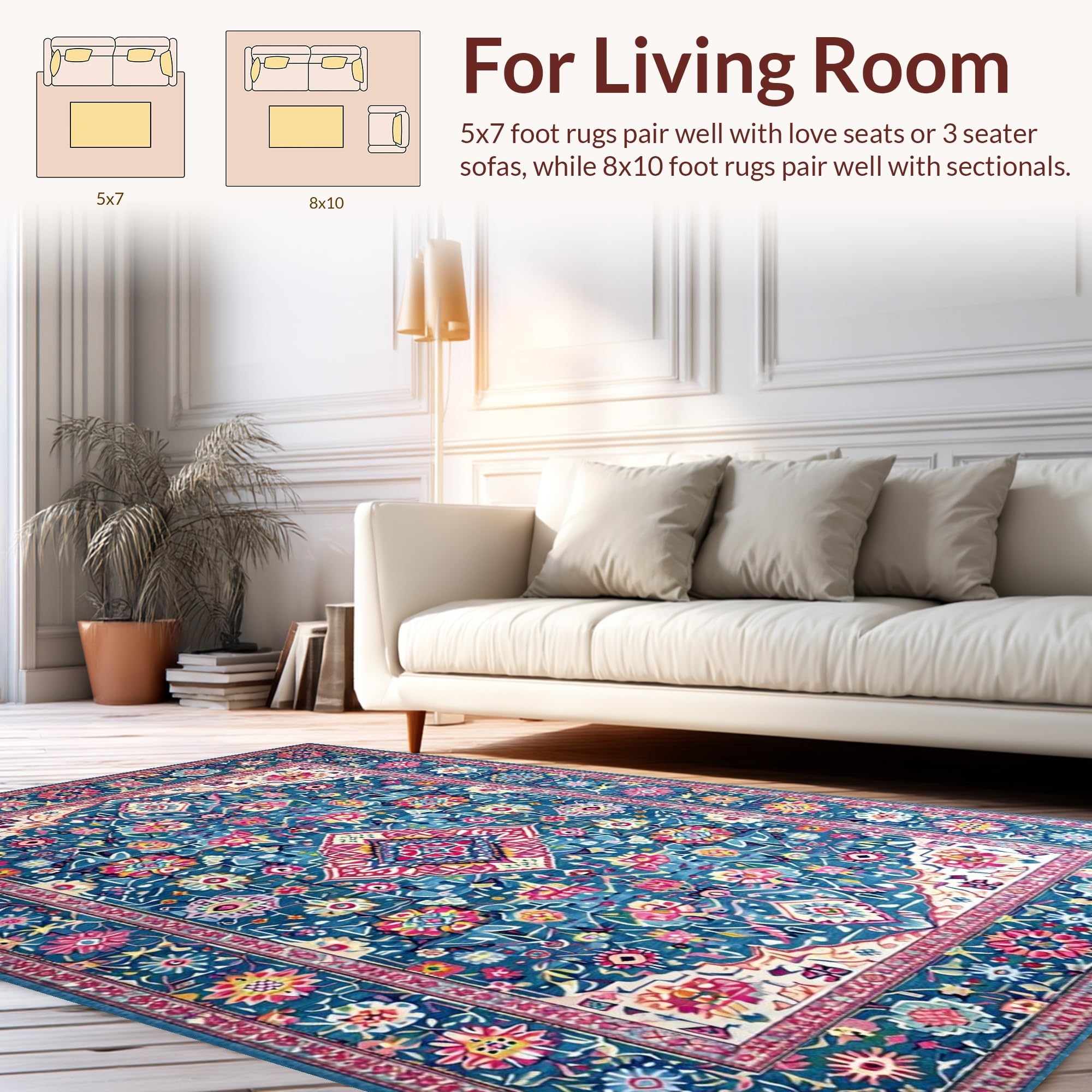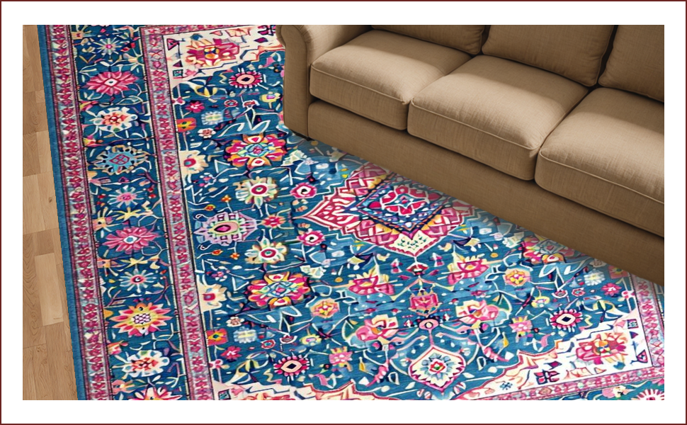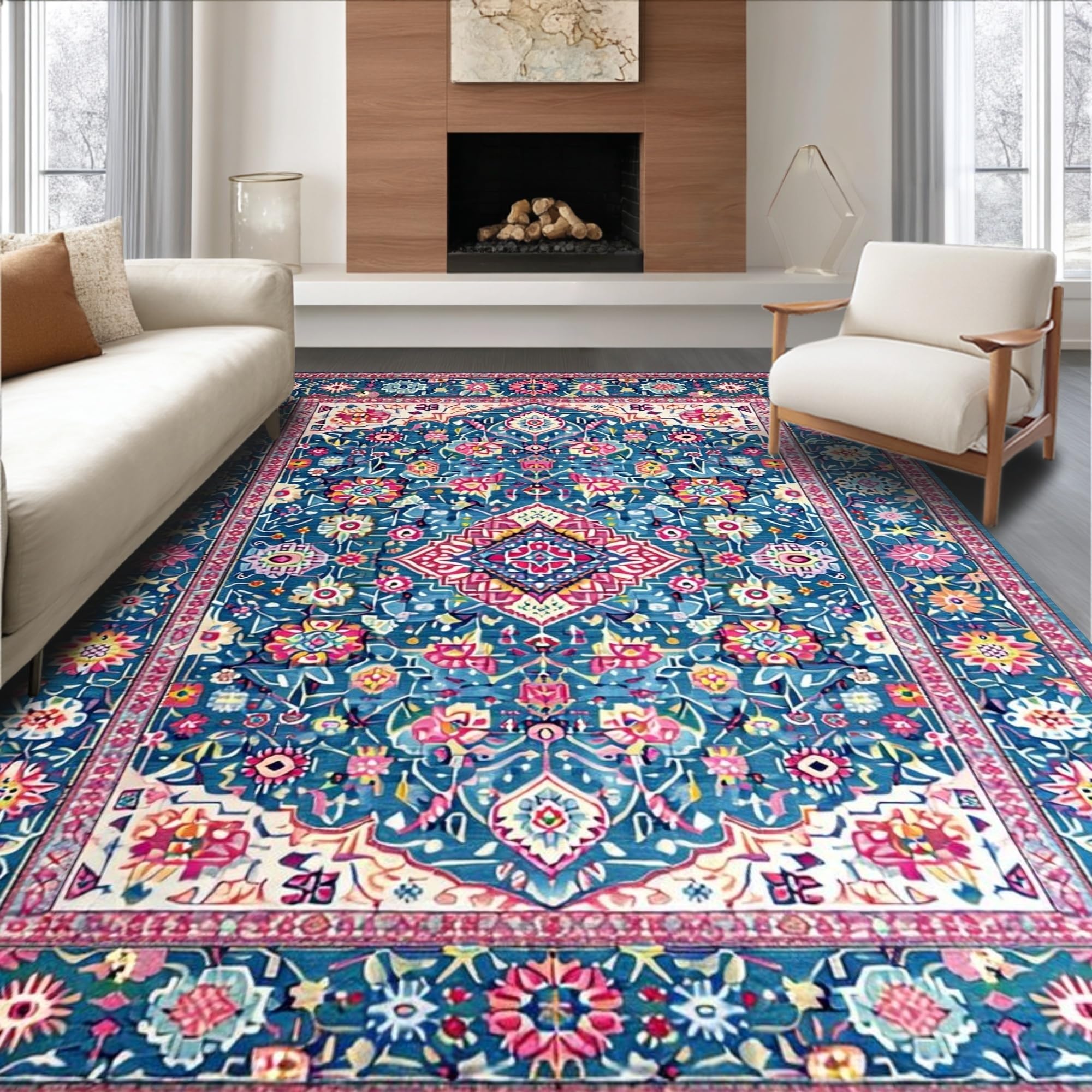 Ultra Soft Area Rug, Non Slip, Stain Resistant, Washable Area Rugs for Living Room, Bedroom, Vibrant Patterned Boho Charm(Blue) Overview: