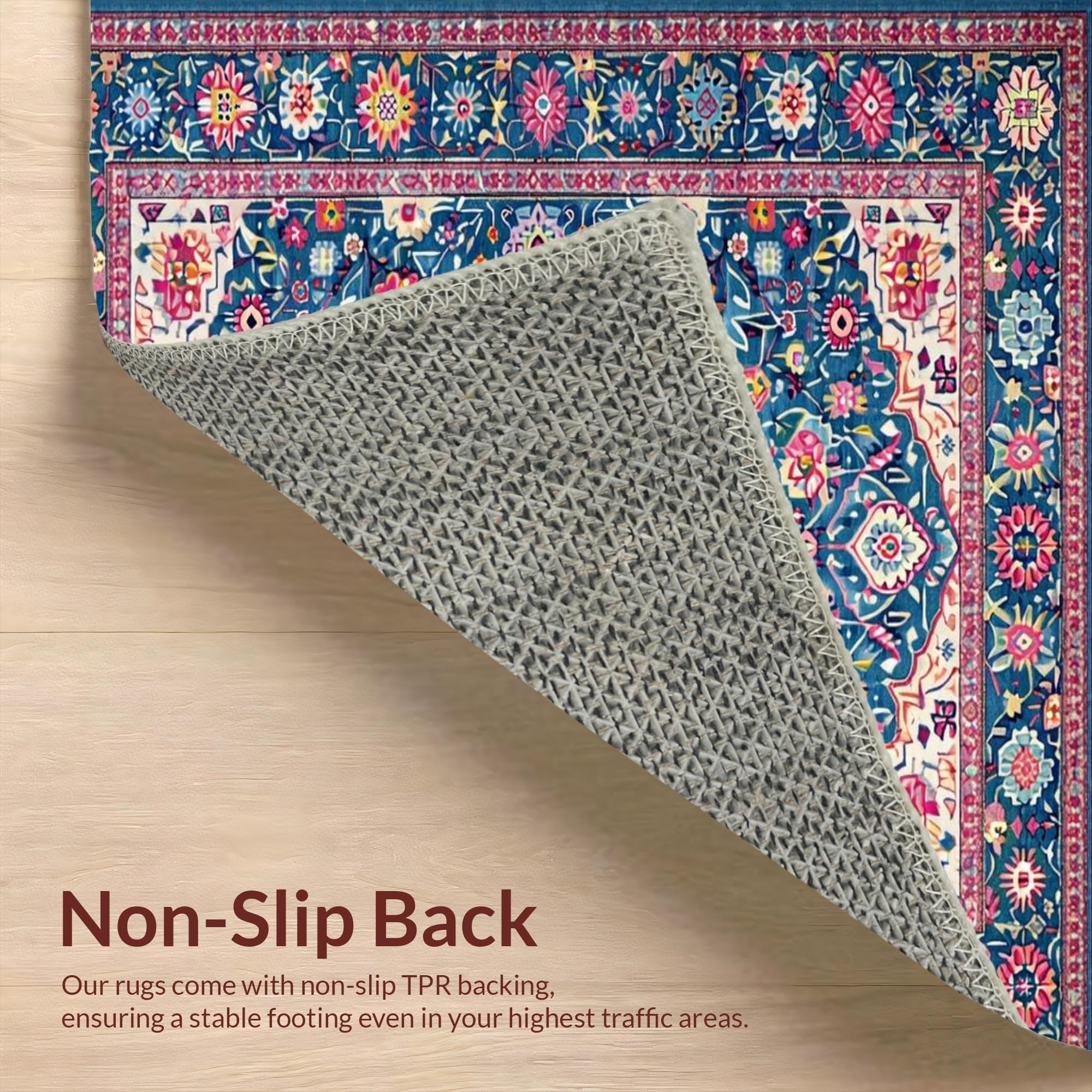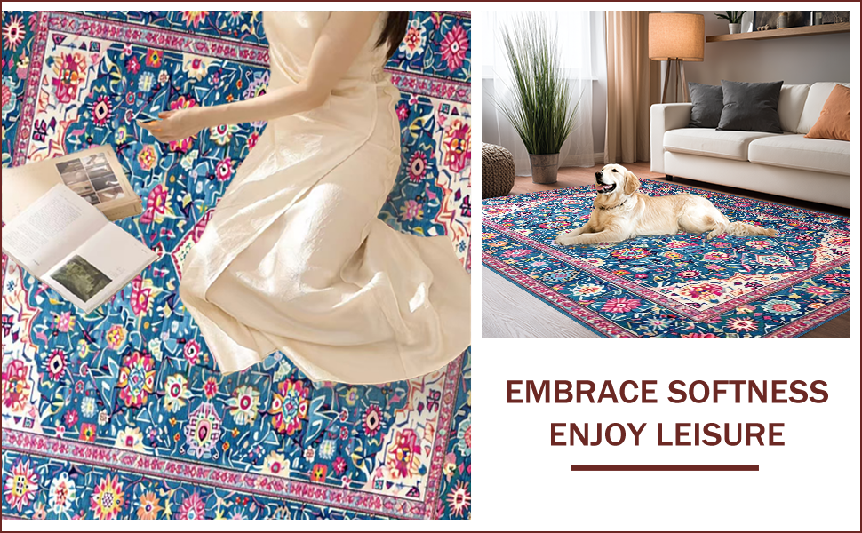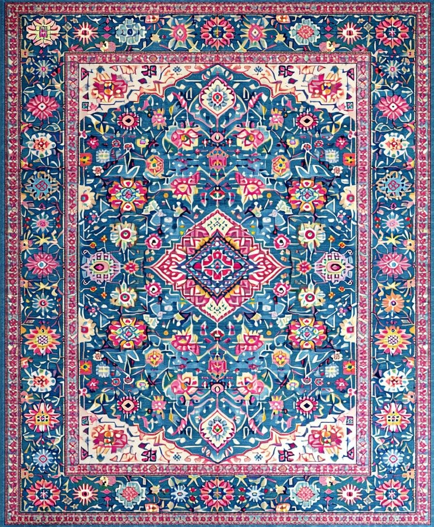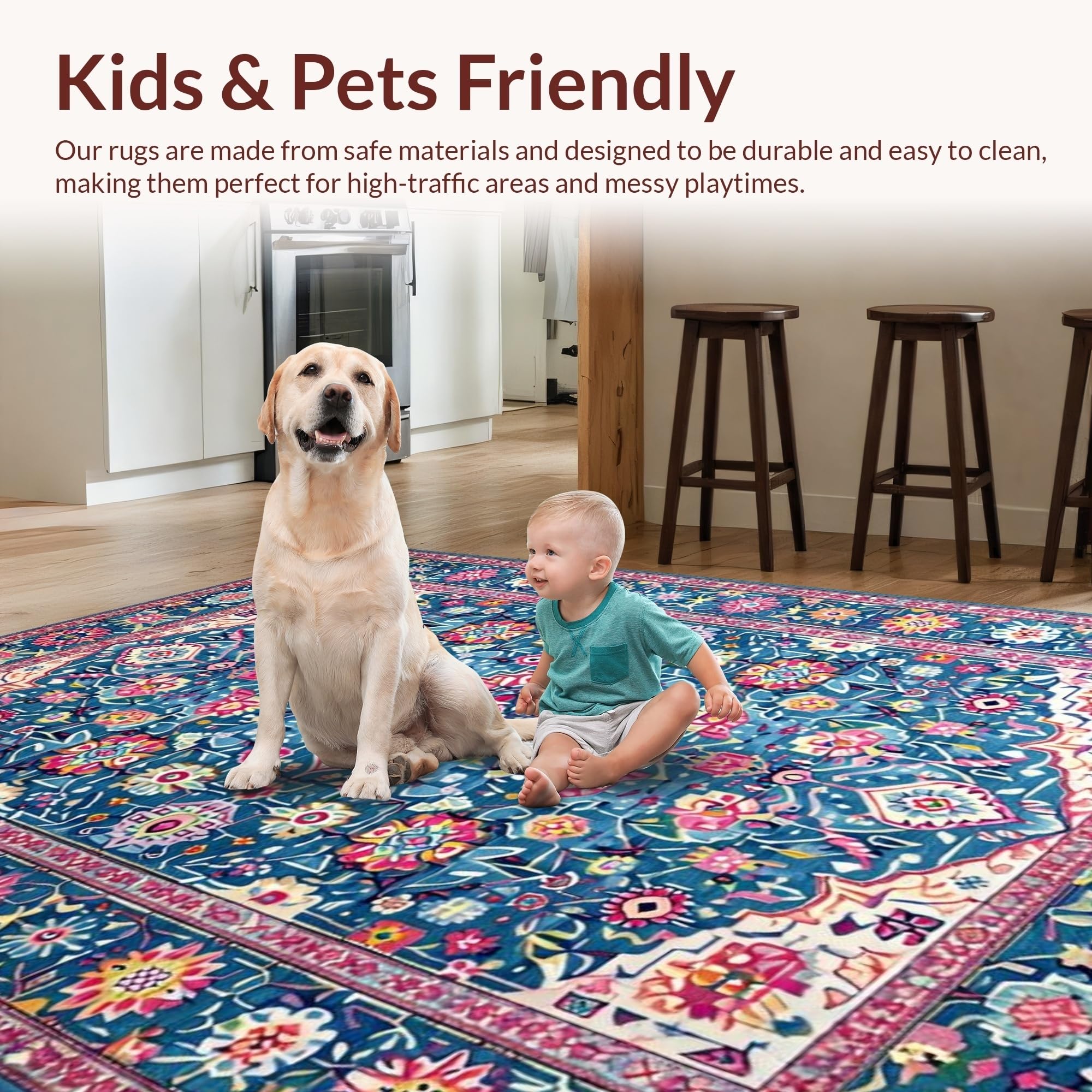 Ultra Soft Area Rug, Non Slip, Stain Resistant, Washable Area Rugs for Living Room, Bedroom, Vibrant Patterned Boho Charm(Blue) Overview: