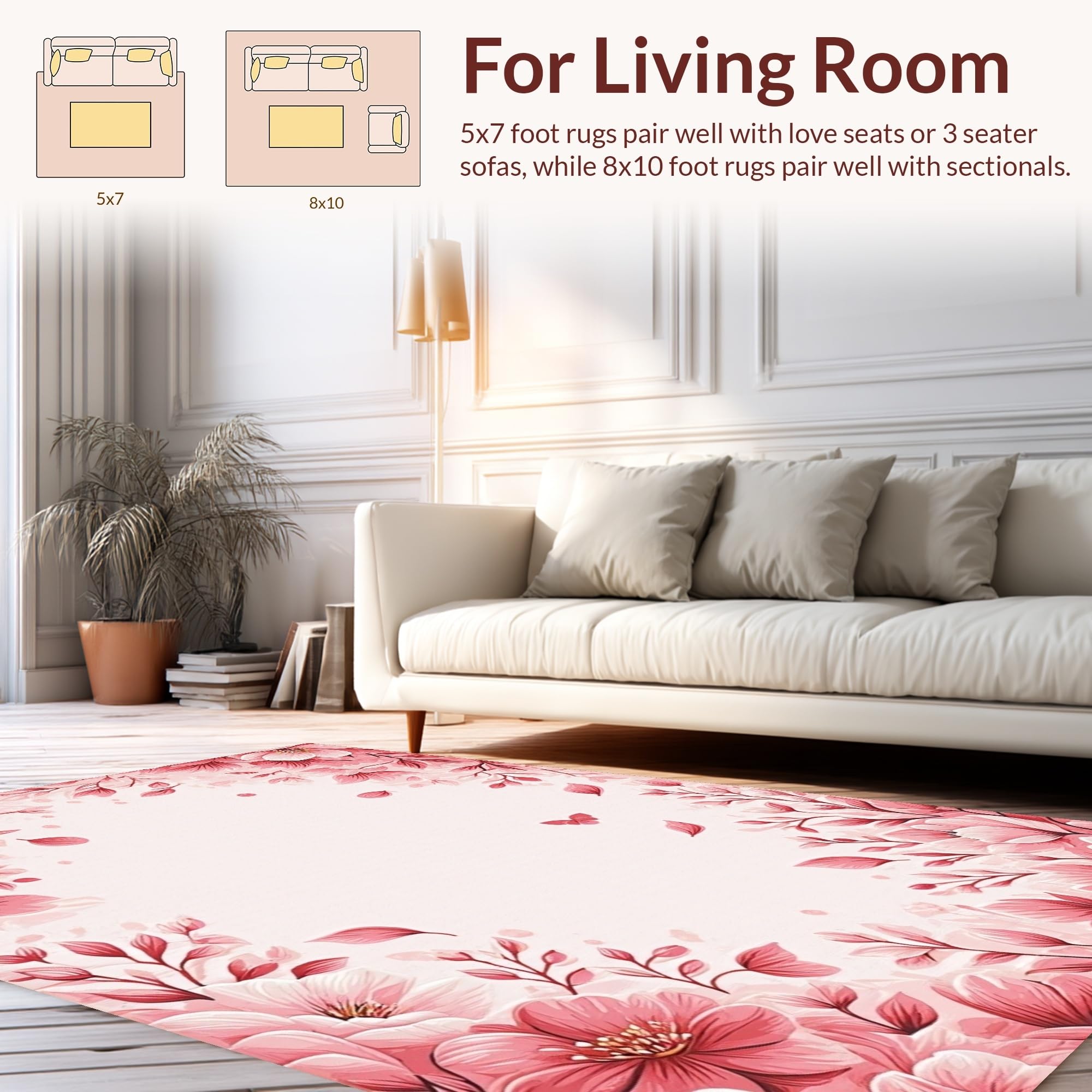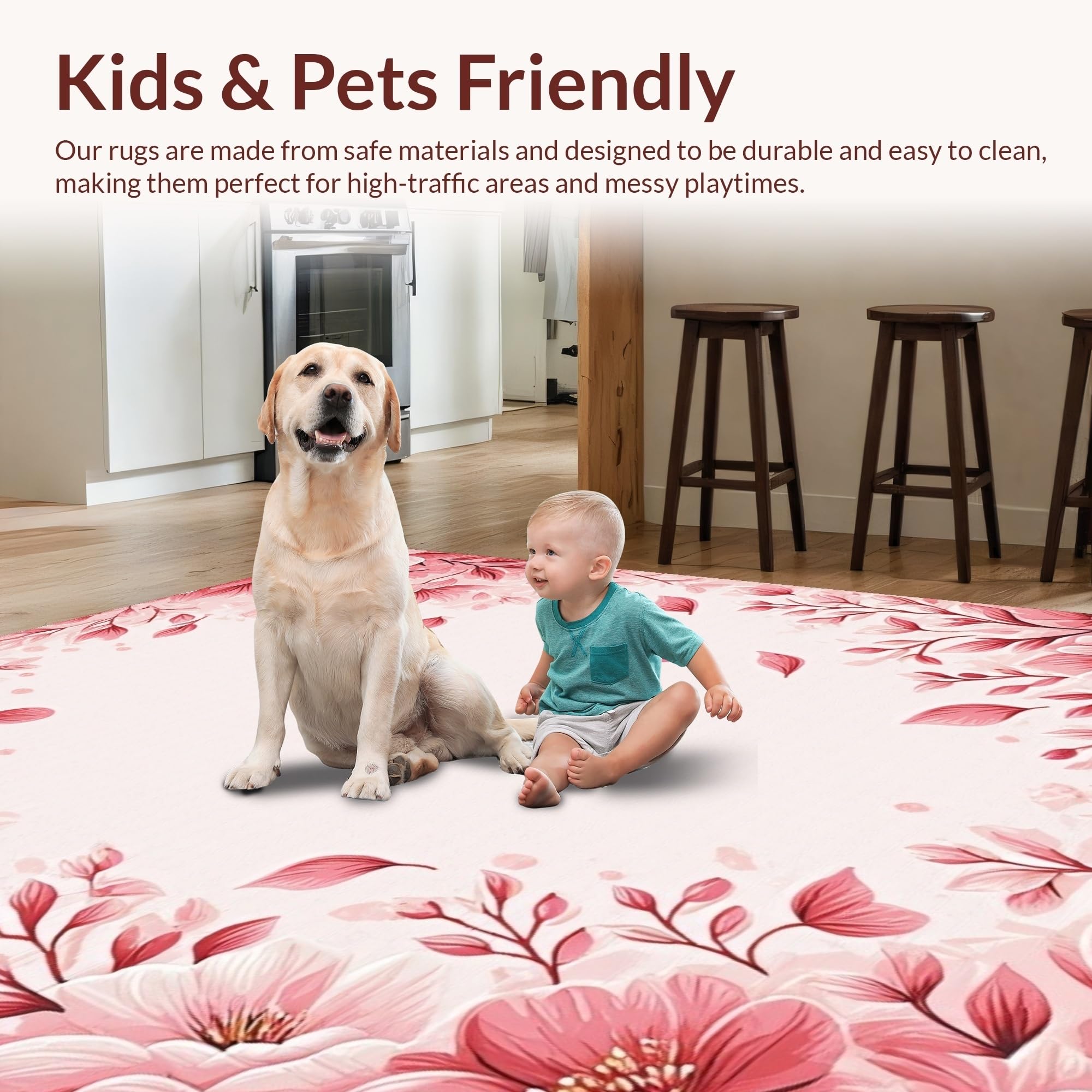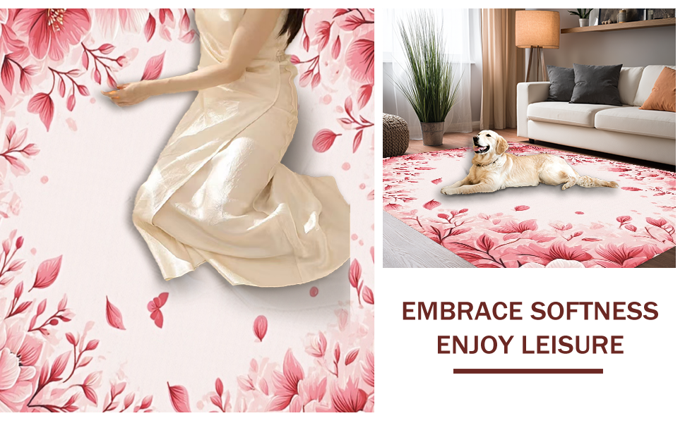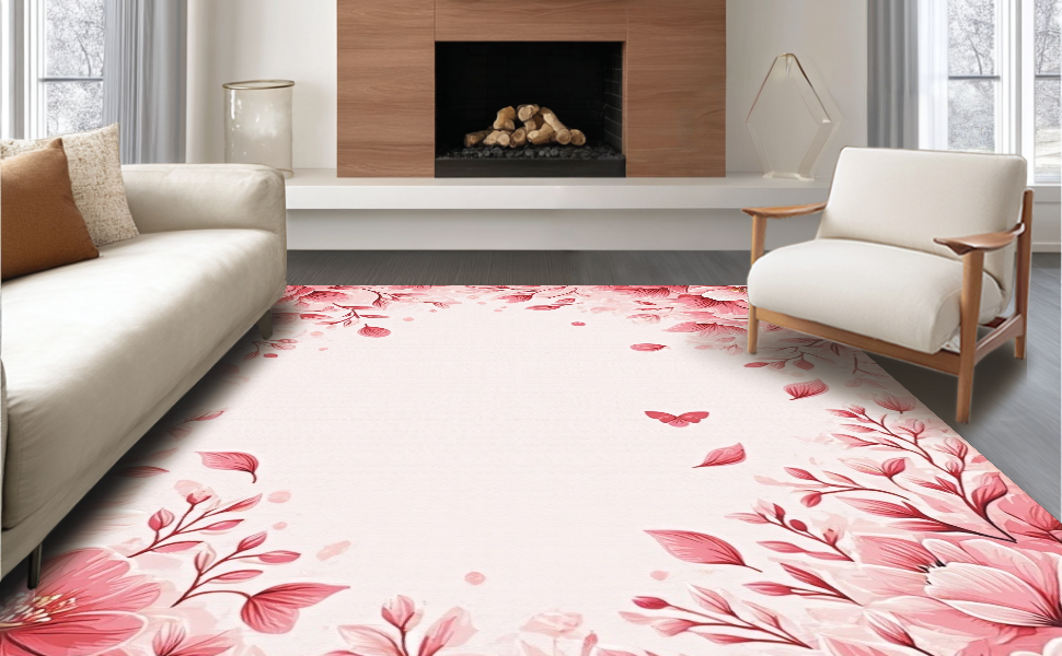 Ultra Soft Area Rug, Non Slip, Stain Resistant, Washable Area Rugs for Living Room, Bedroom, Vibrant Petal Fringe Aesthetic(Pink) Overview: