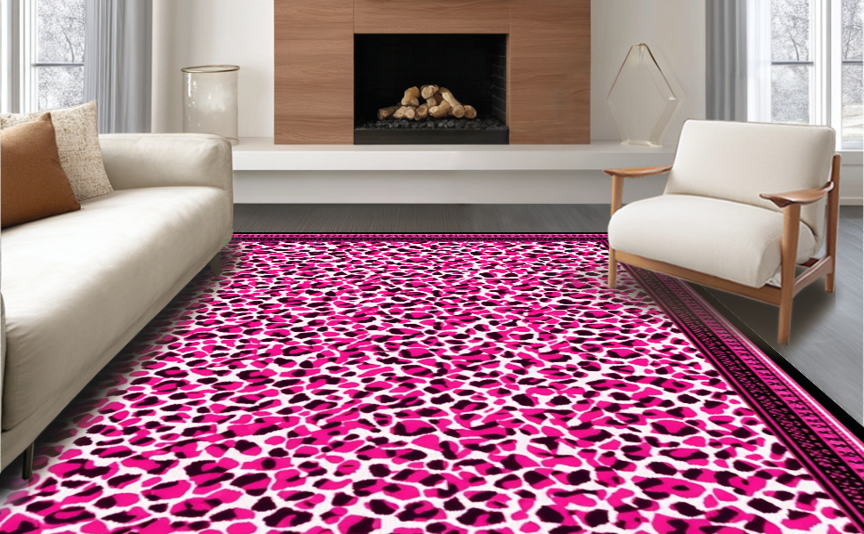 Ultra Soft Area Rug, Non Slip, Stain Resistant, Washable Area Rugs for Living Room, Bedroom, Vibrant Pink Wildlife Inspiration(Pink) Overview: