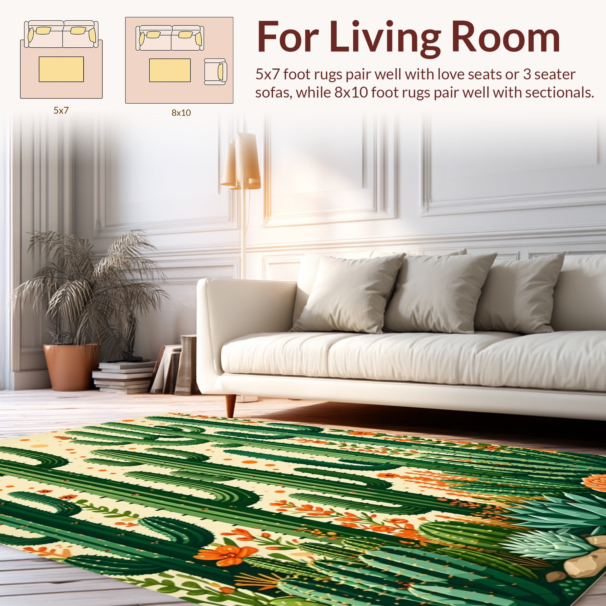 Flatwoven High Traffic Area Rug, Vibrant Playful Botanical Aesthetic, Non Slip, Stain Resistant, Washable Area Rugs for Living Room, Bedroom (Green) Overview: