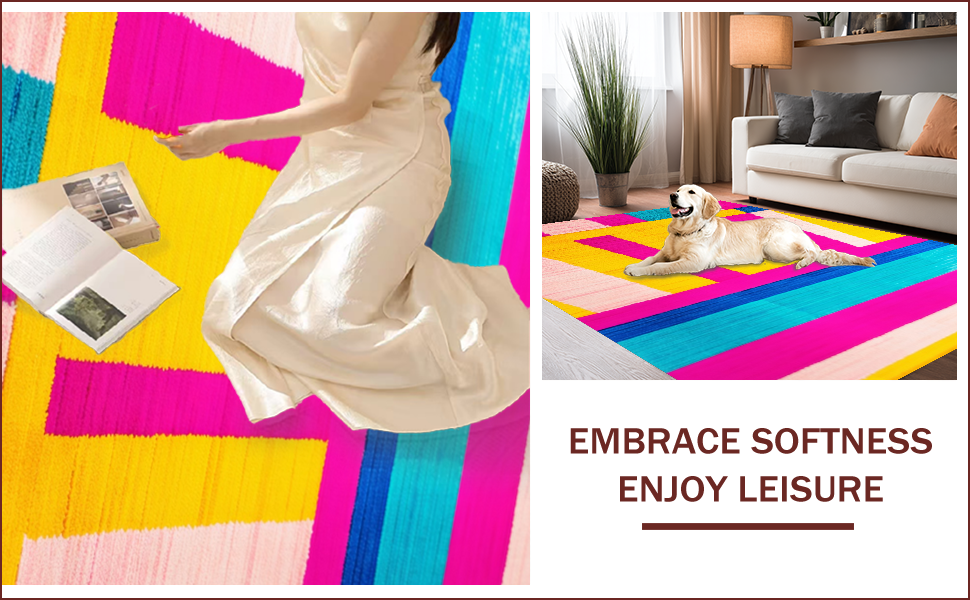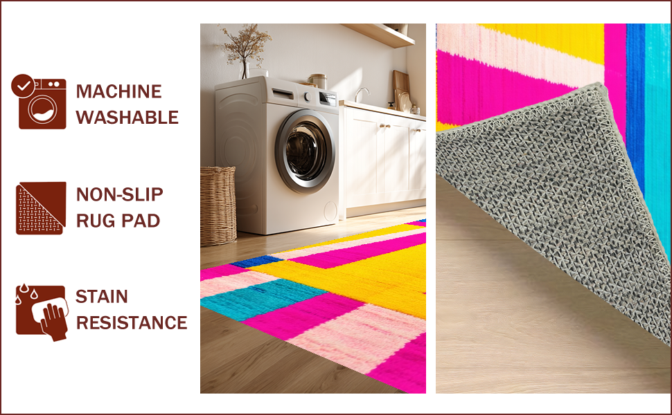 Ultra Soft Area Rug, Non Slip, Stain Resistant, Washable Area Rugs for Living Room, Bedroom, Vibrant Playful Patchwork Design(Pink) Overview: