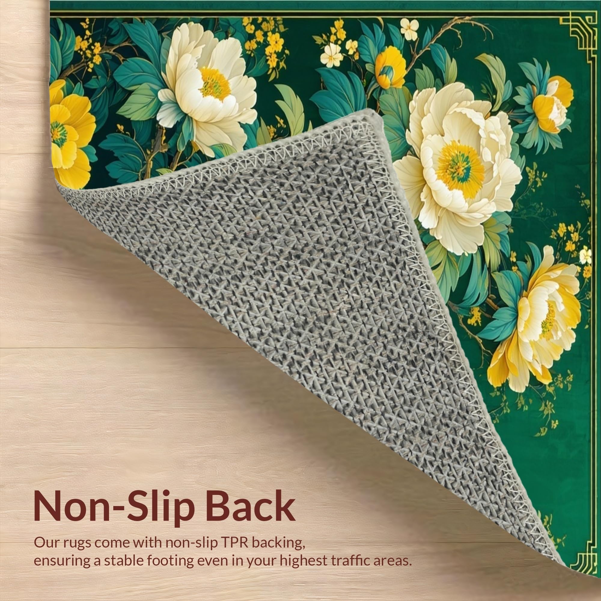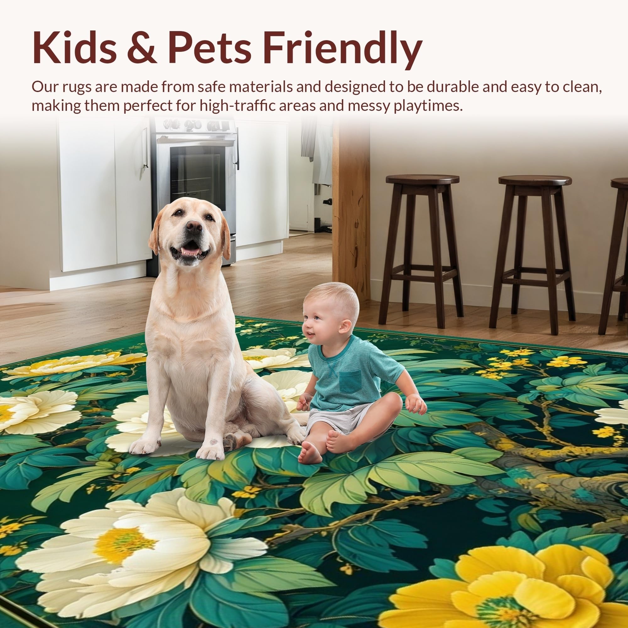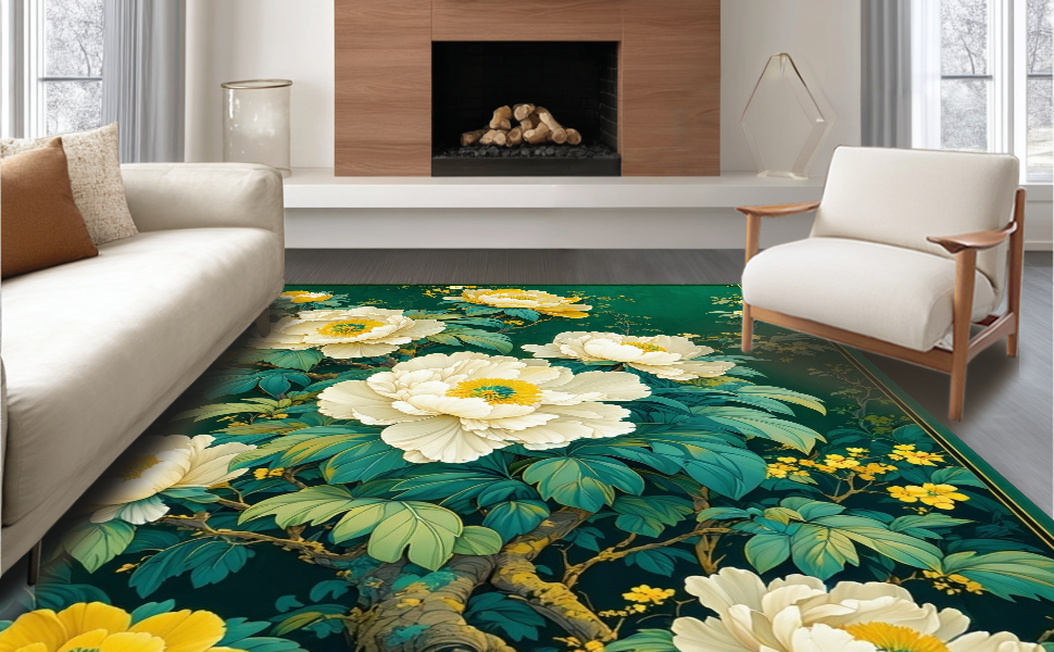 Ultra Soft Area Rug, Non Slip, Stain Resistant, Washable Area Rugs for Living Room, Bedroom, Vibrant Realistic Flower Aesthetic(Green) Overview:
