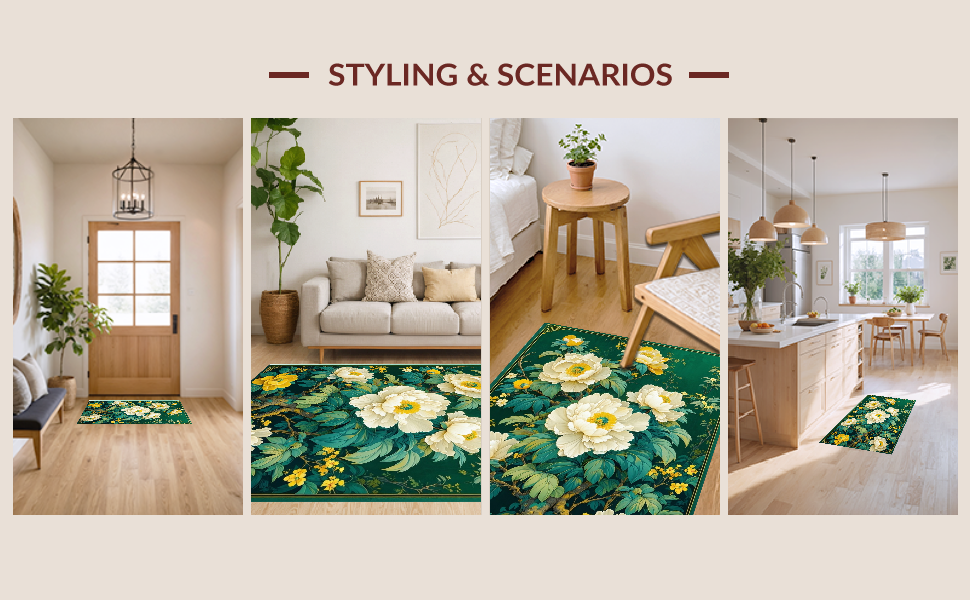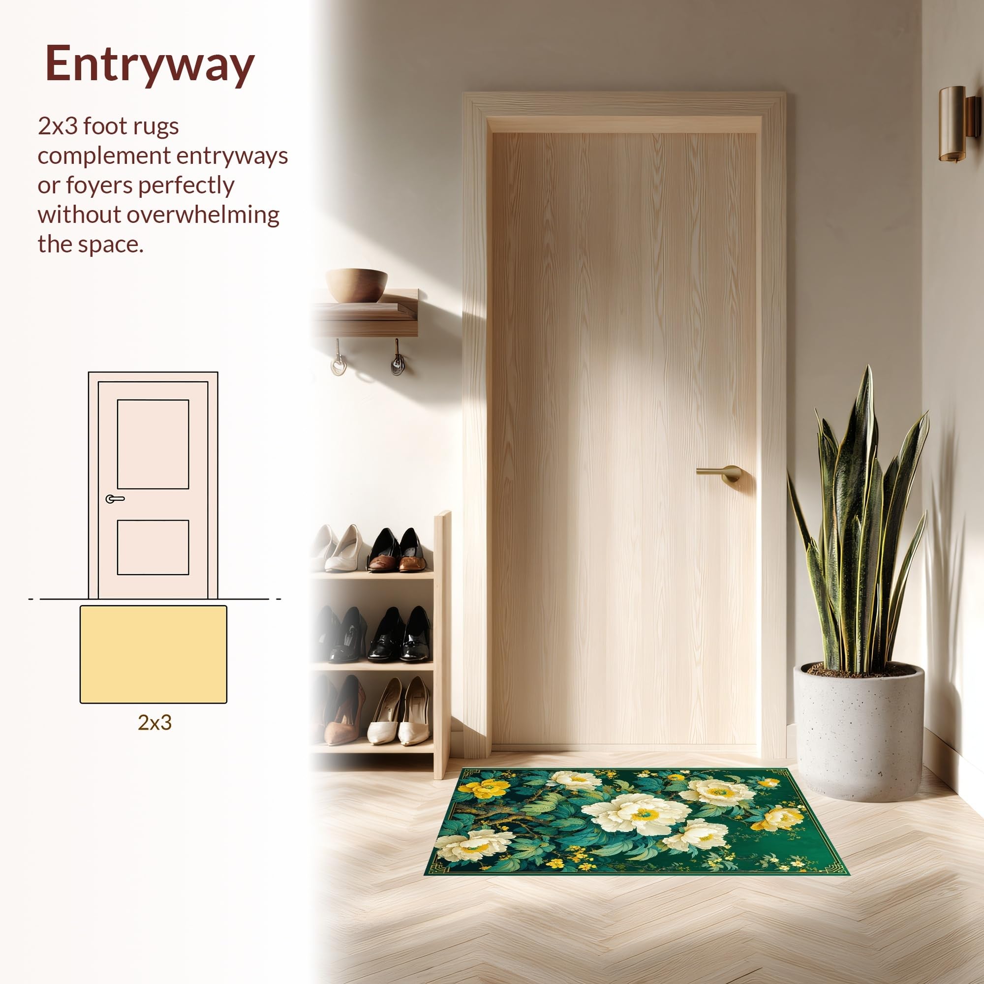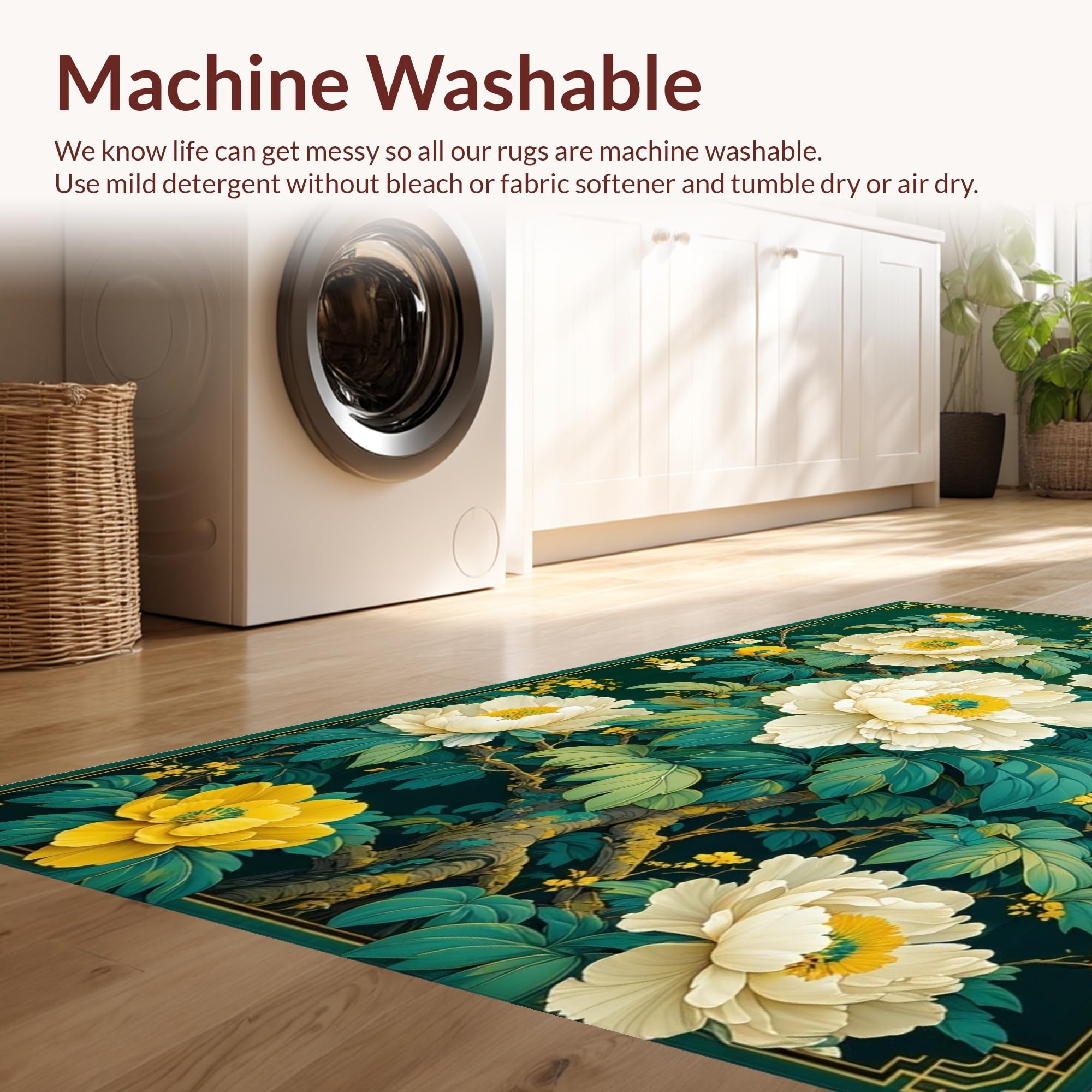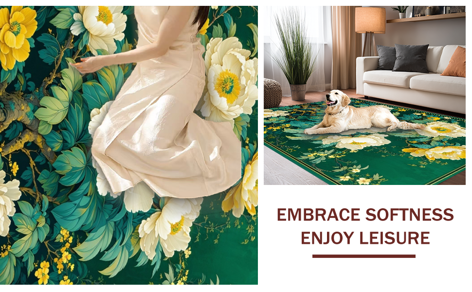 Ultra Soft Area Rug, Non Slip, Stain Resistant, Washable Area Rugs for Living Room, Bedroom, Vibrant Realistic Flower Aesthetic(Green) Overview: