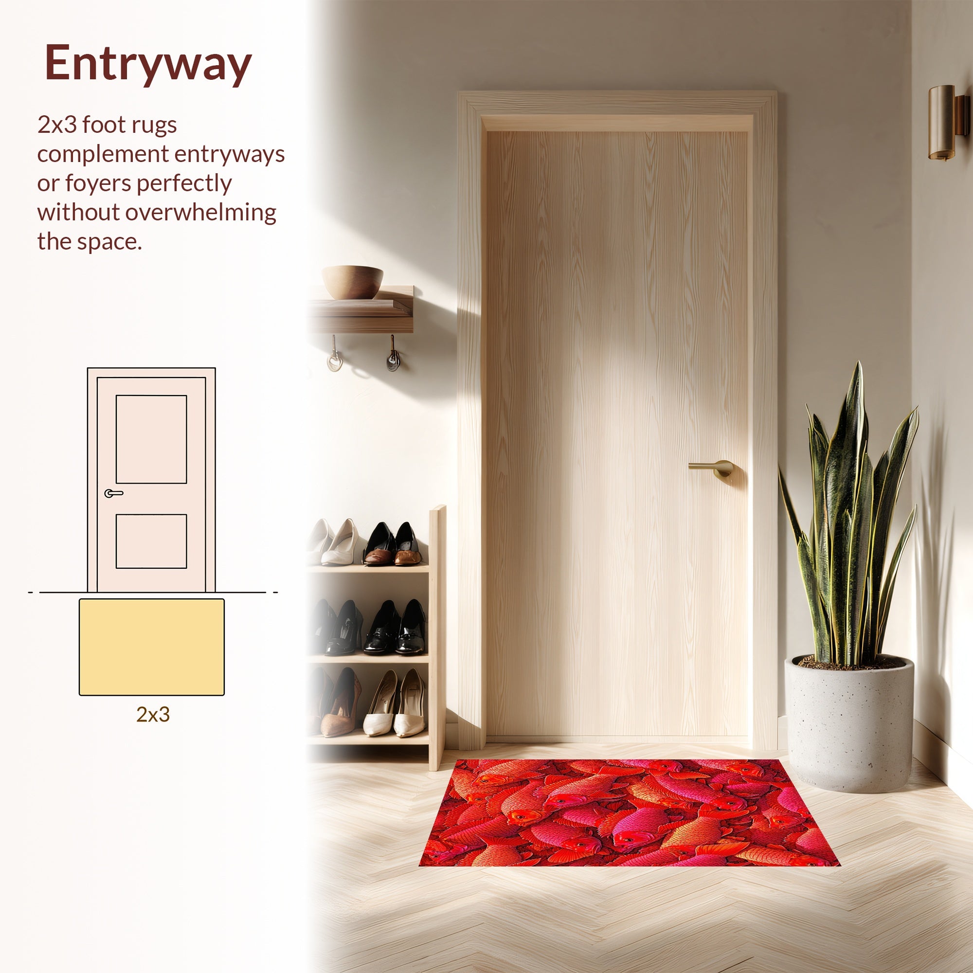 Flatwoven High Traffic Area Rug, Vibrant Fish Entryway Non Slip Doormat, Non Slip, Stain Resistant, Washable Area Rugs for Living Room, Bedroom (Red) Overview: