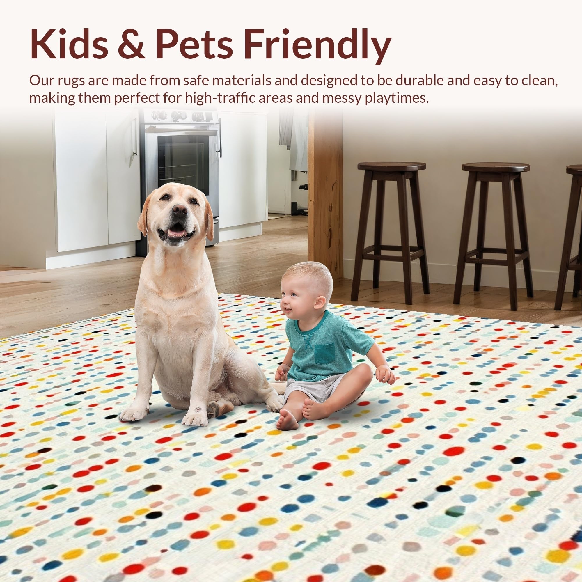 Ultra Soft Area Rug, Non Slip, Stain Resistant, Washable Area Rugs for Living Room, Bedroom, Vibrant Retro Circular Design(White) Overview: