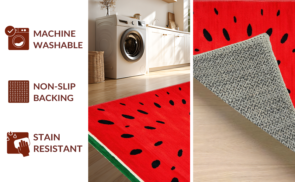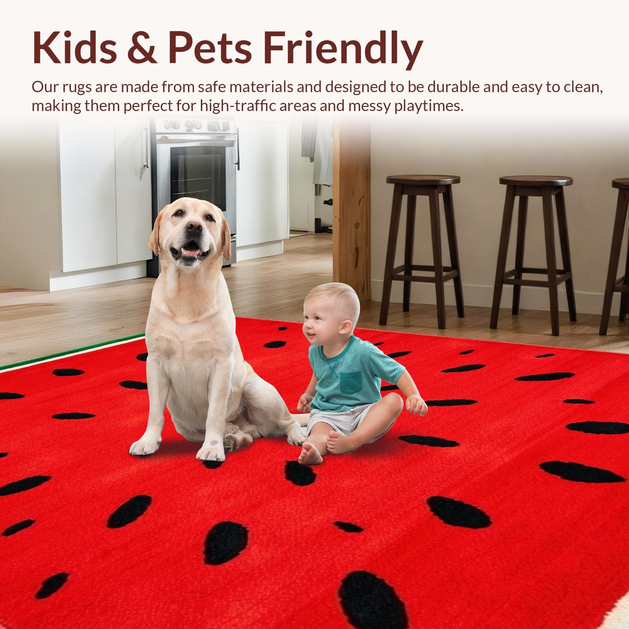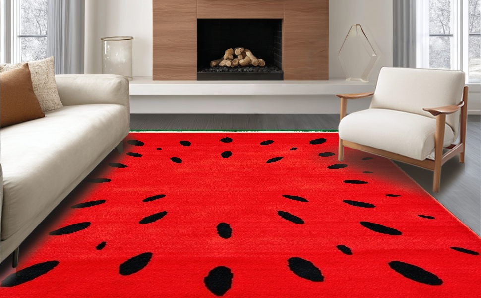 Ultra Soft Area Rug, Non Slip, Stain Resistant, Washable Area Rugs for Living Room, Bedroom, Vibrant Retro Culinary Design(Red) Overview:
