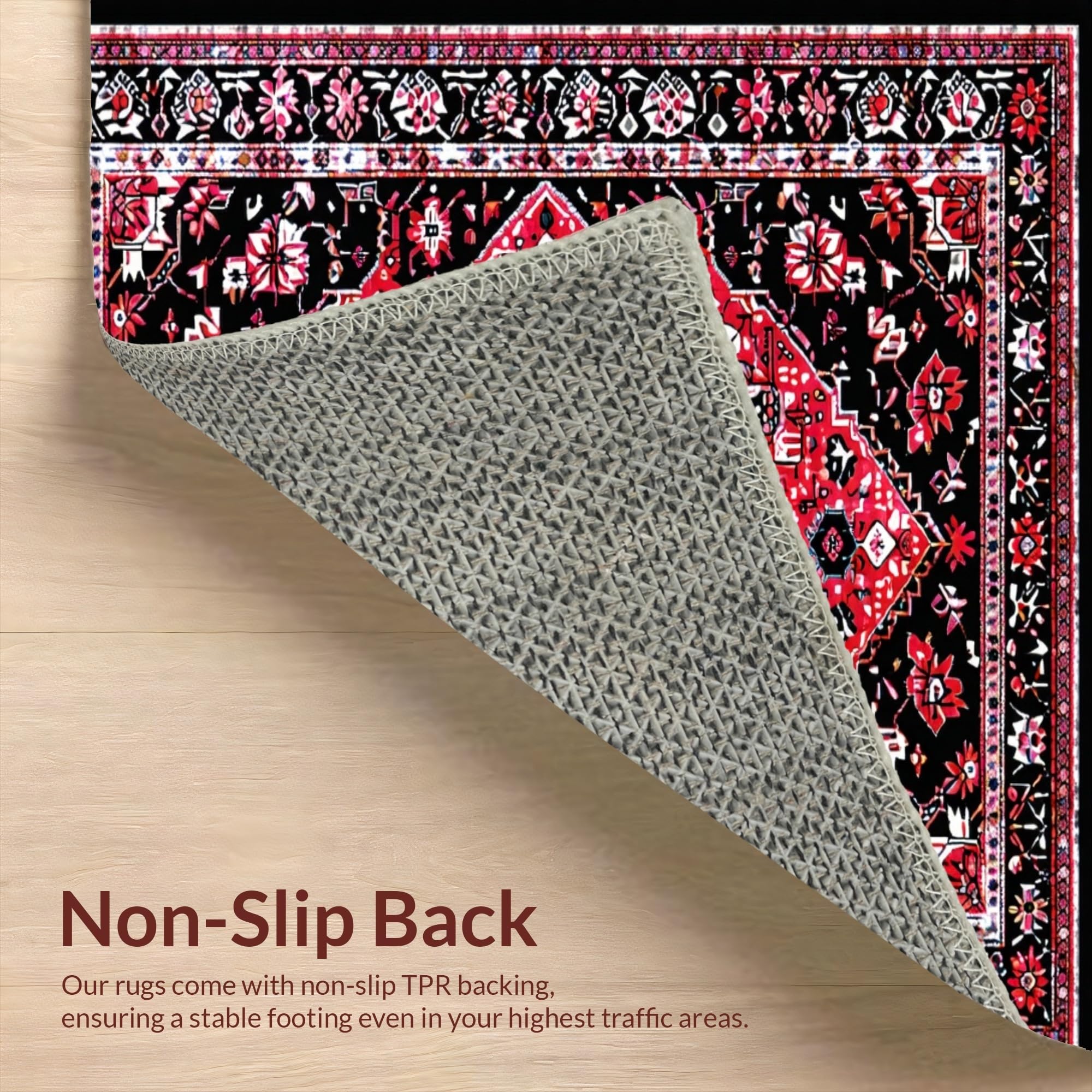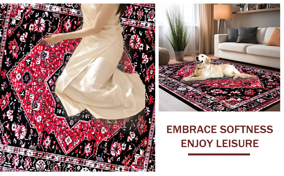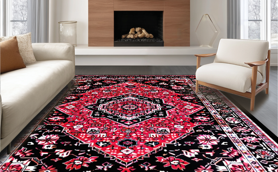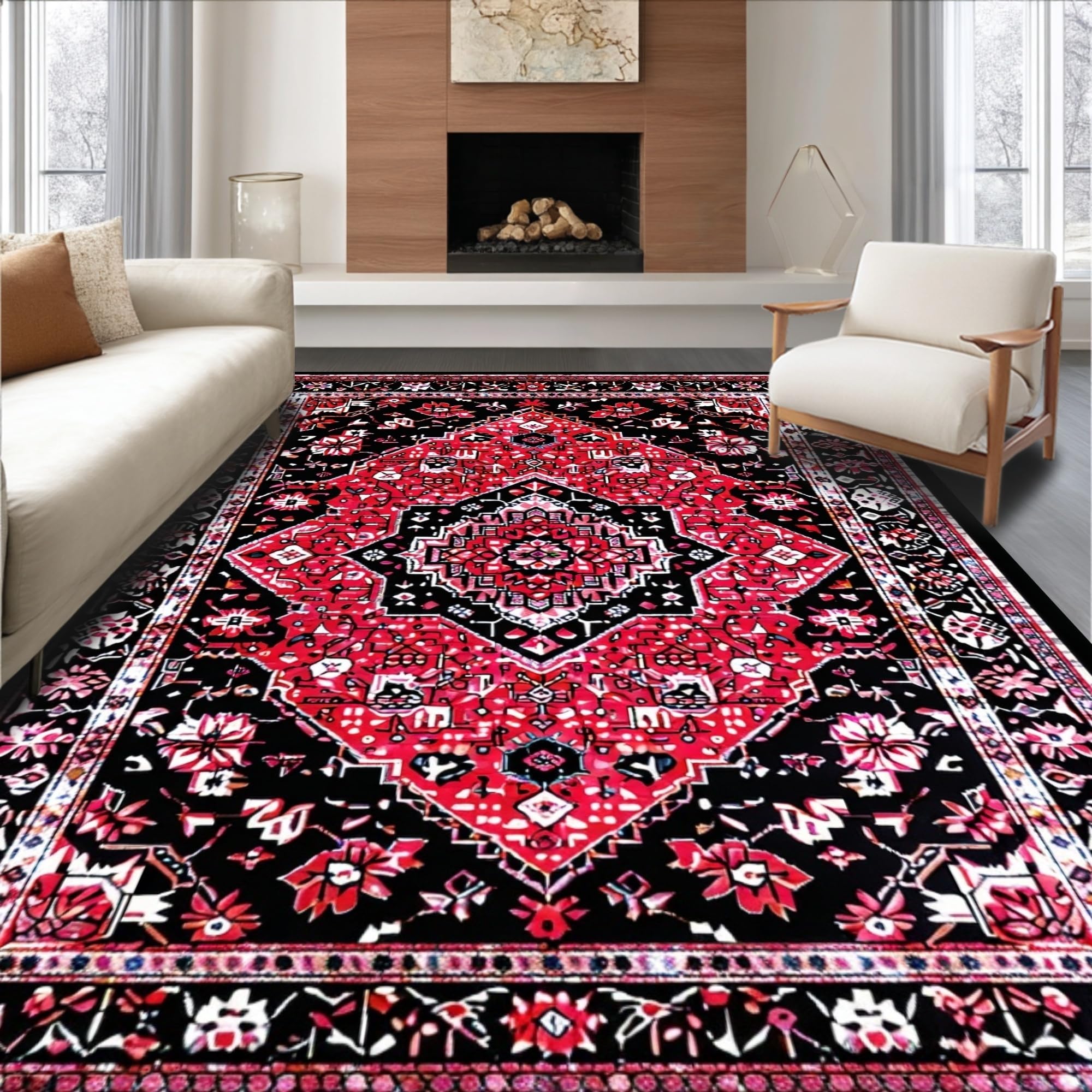 Ultra Soft Area Rug, Non Slip, Stain Resistant, Washable Area Rugs for Living Room, Bedroom, Vibrant Retro Ogee Style Rug(Red) Overview: