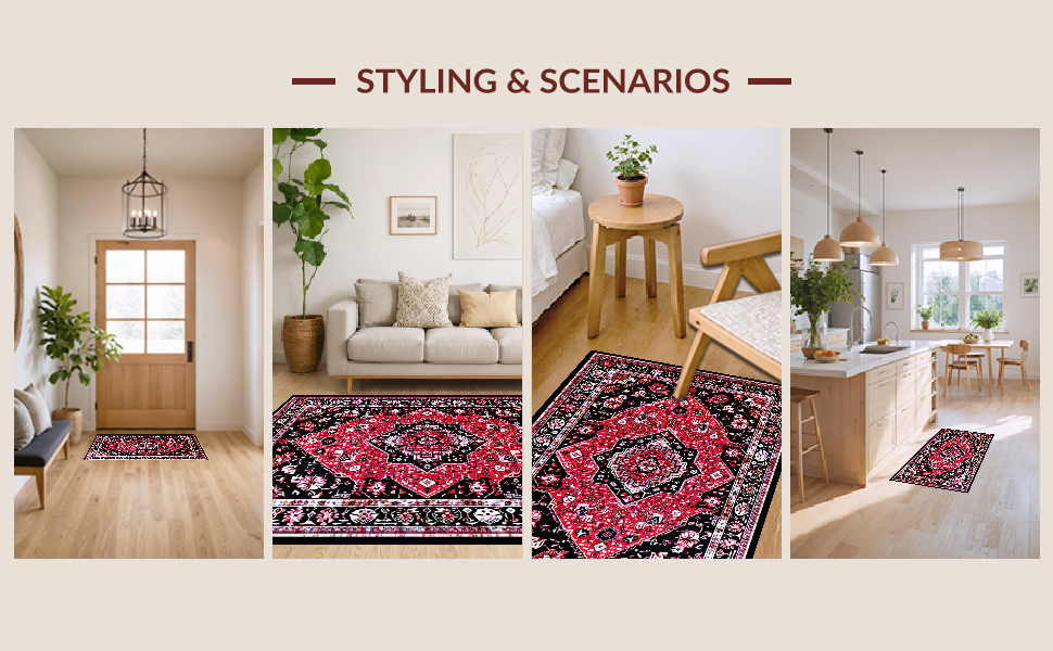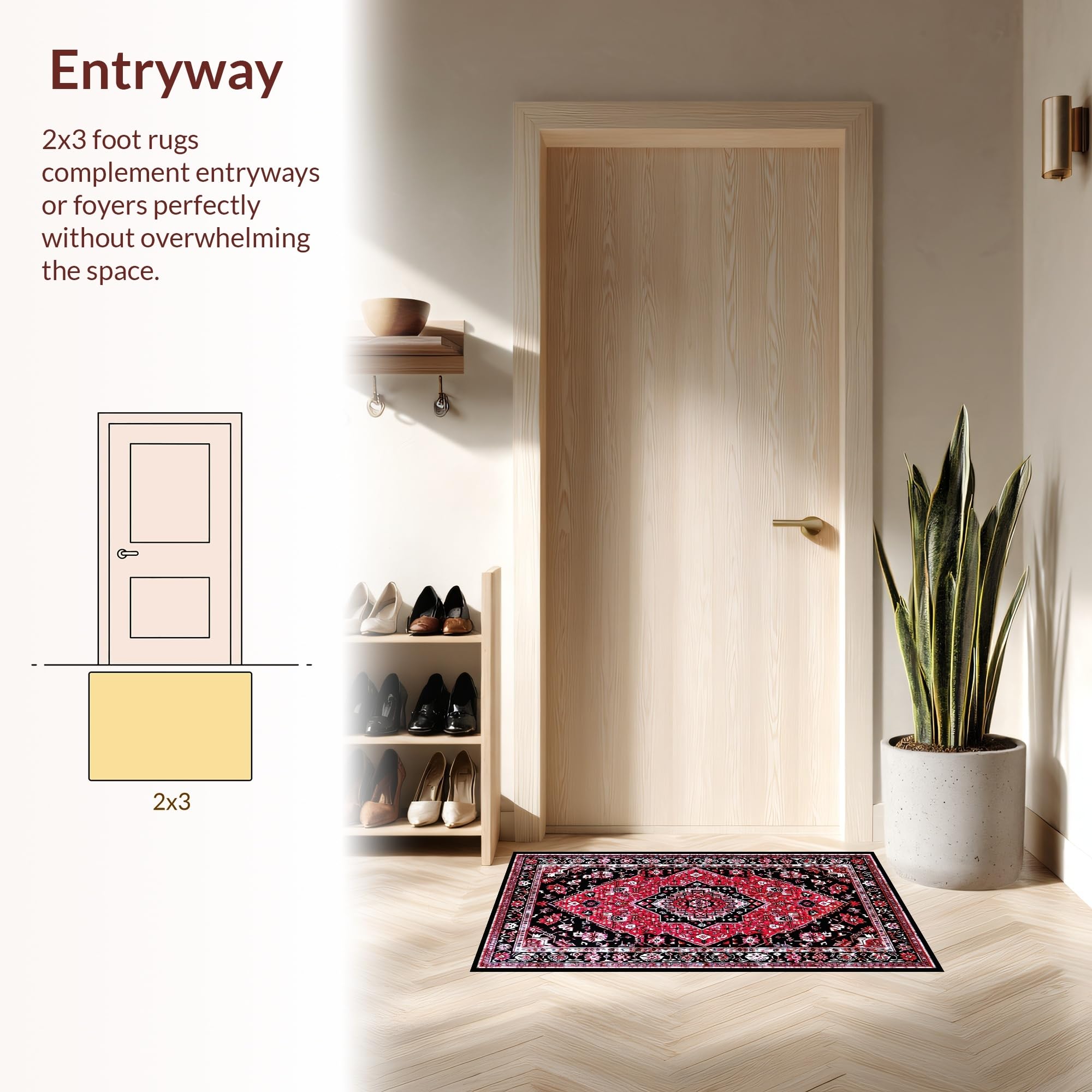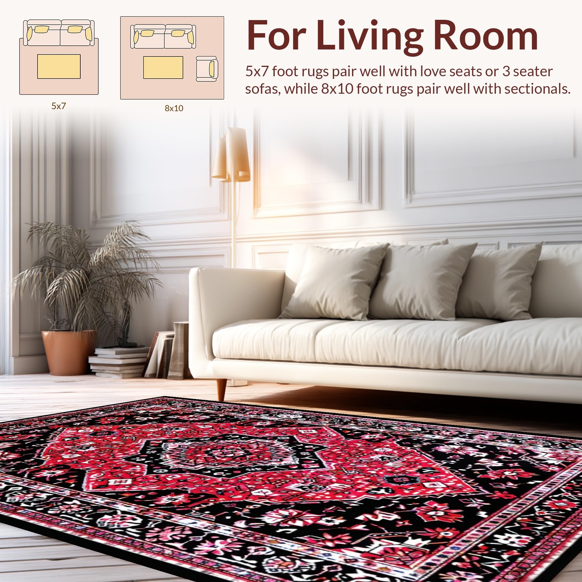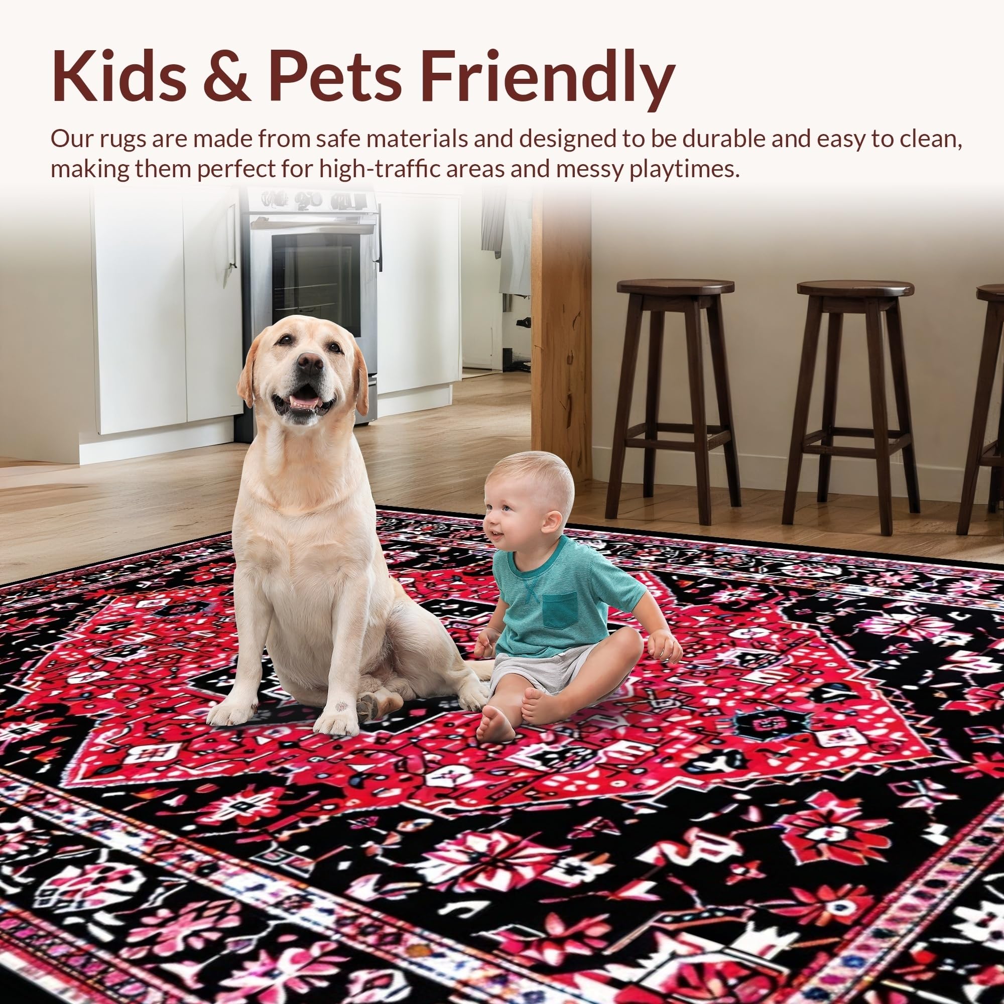 Ultra Soft Area Rug, Non Slip, Stain Resistant, Washable Area Rugs for Living Room, Bedroom, Vibrant Retro Ogee Style Rug(Red) Overview: