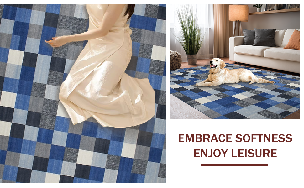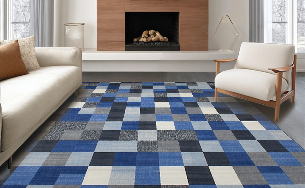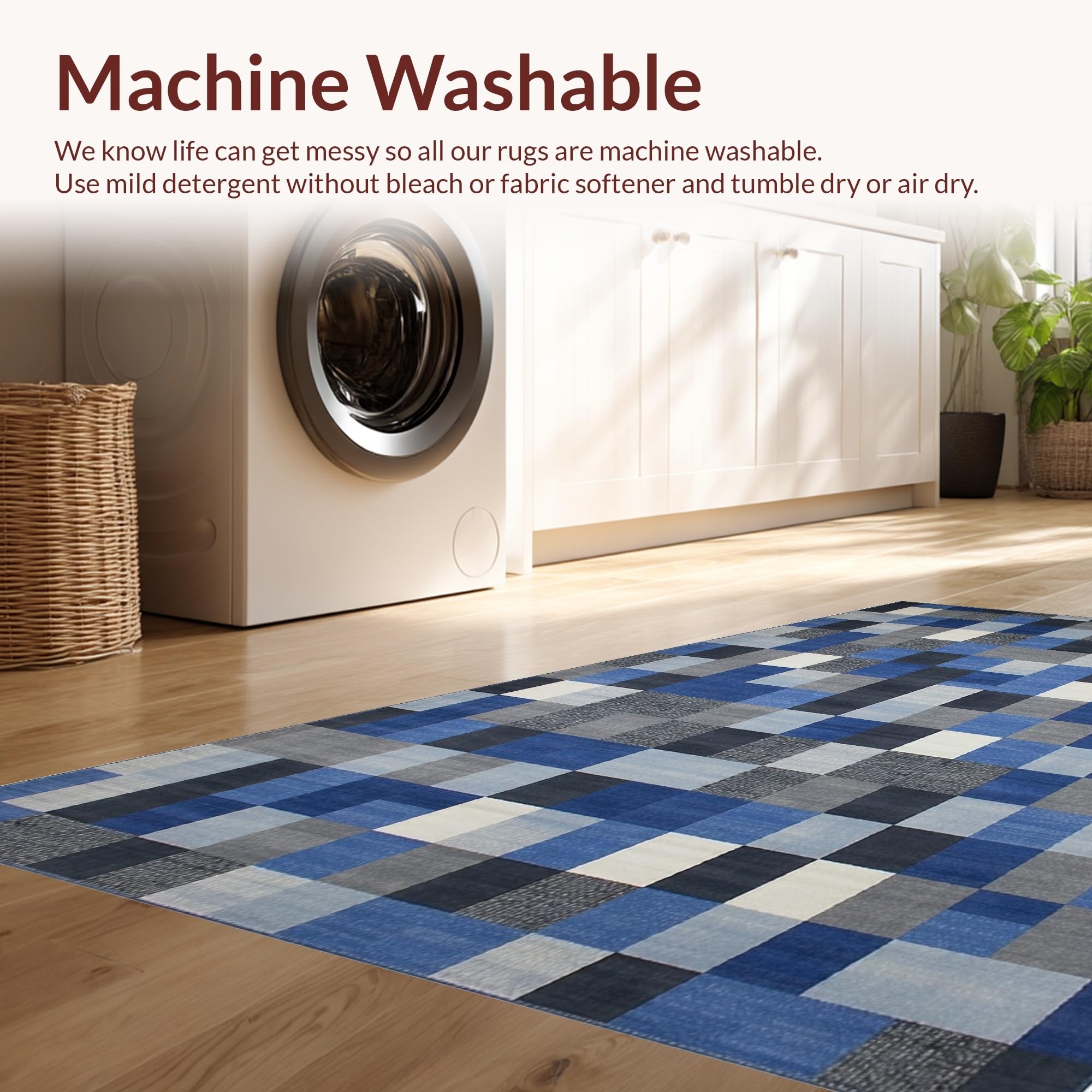Ultra Soft Area Rug, Non Slip, Stain Resistant, Washable Area Rugs for Living Room, Bedroom, Vibrant Retro Patchwork Aesthetic(Blue) Overview: