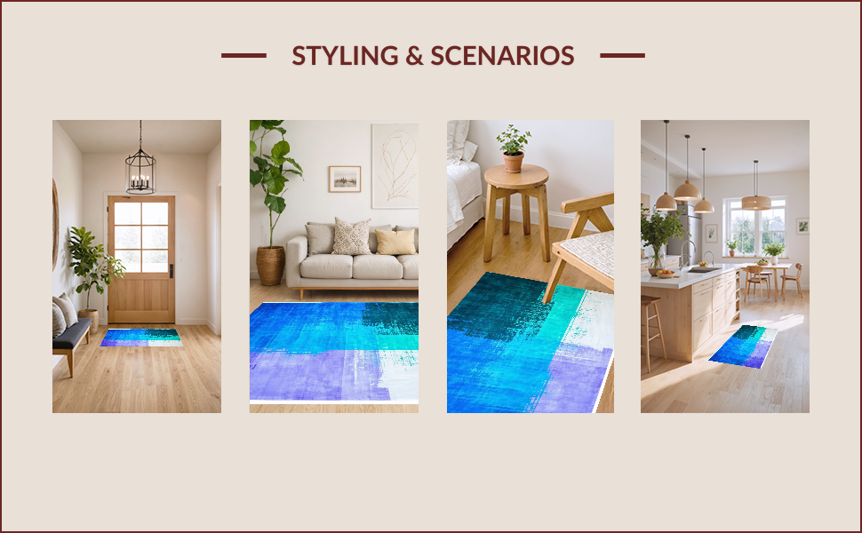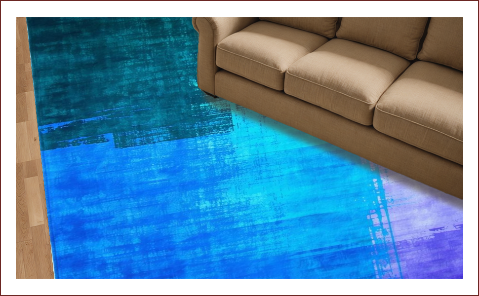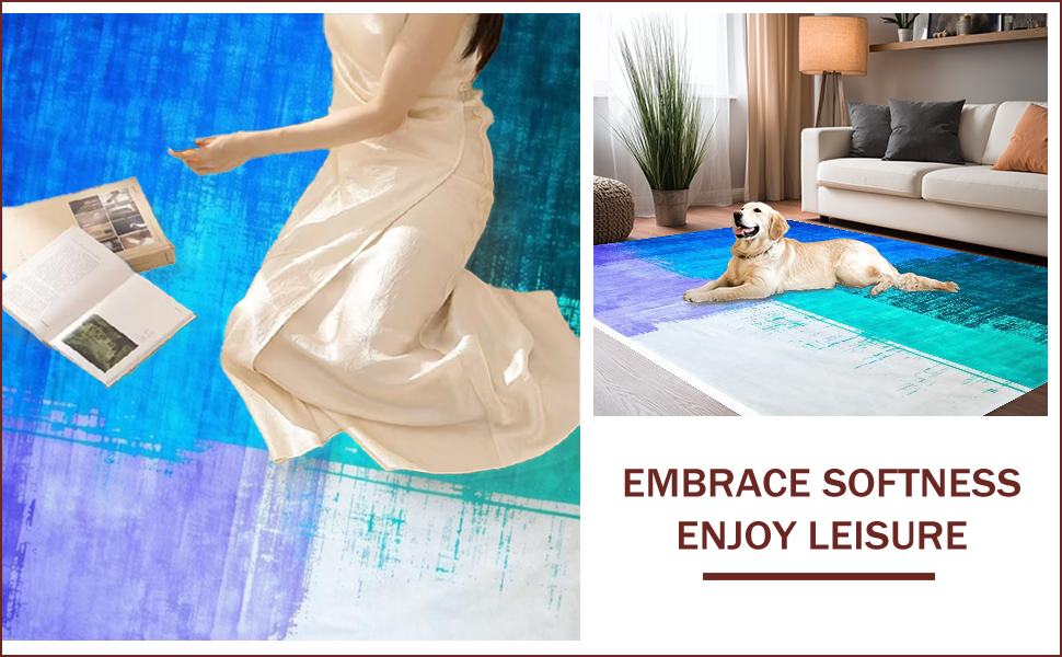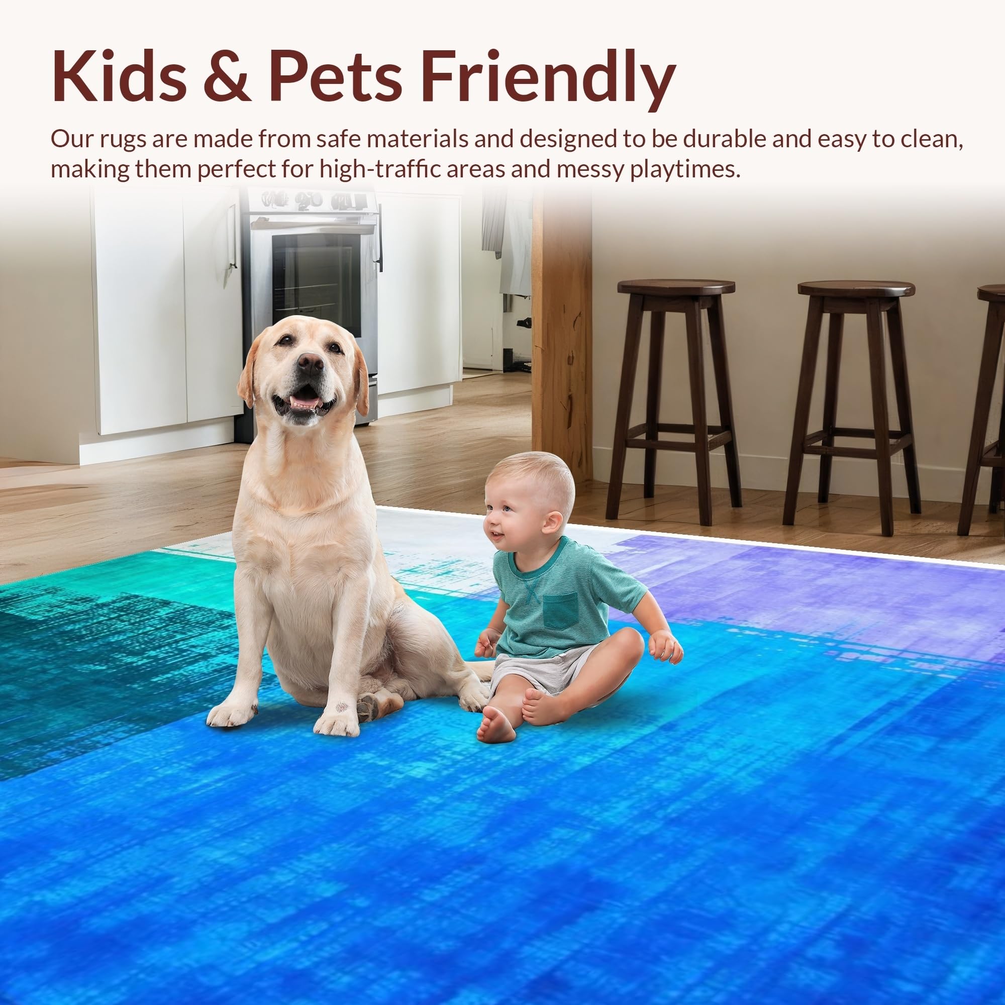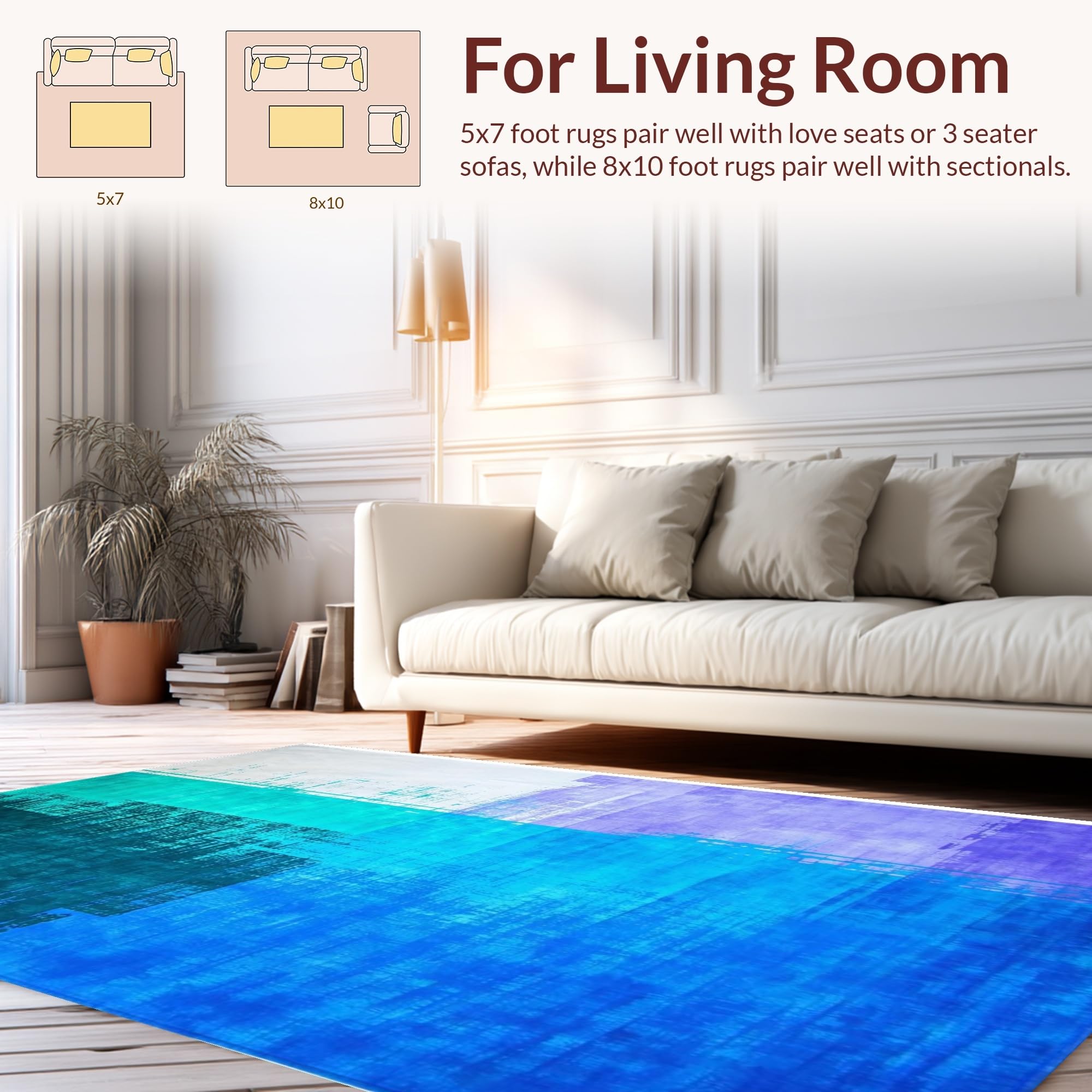 Ultra Soft Area Rug, Non Slip, Stain Resistant, Washable Area Rugs for Living Room, Bedroom, Vibrant Retro Watercolor Aesthetic(Blue) Overview:
