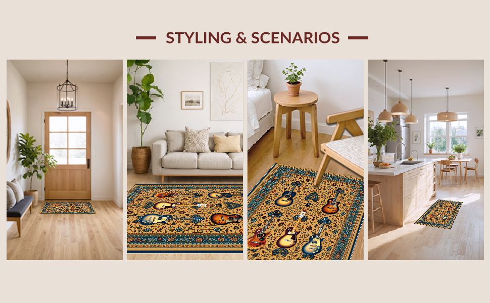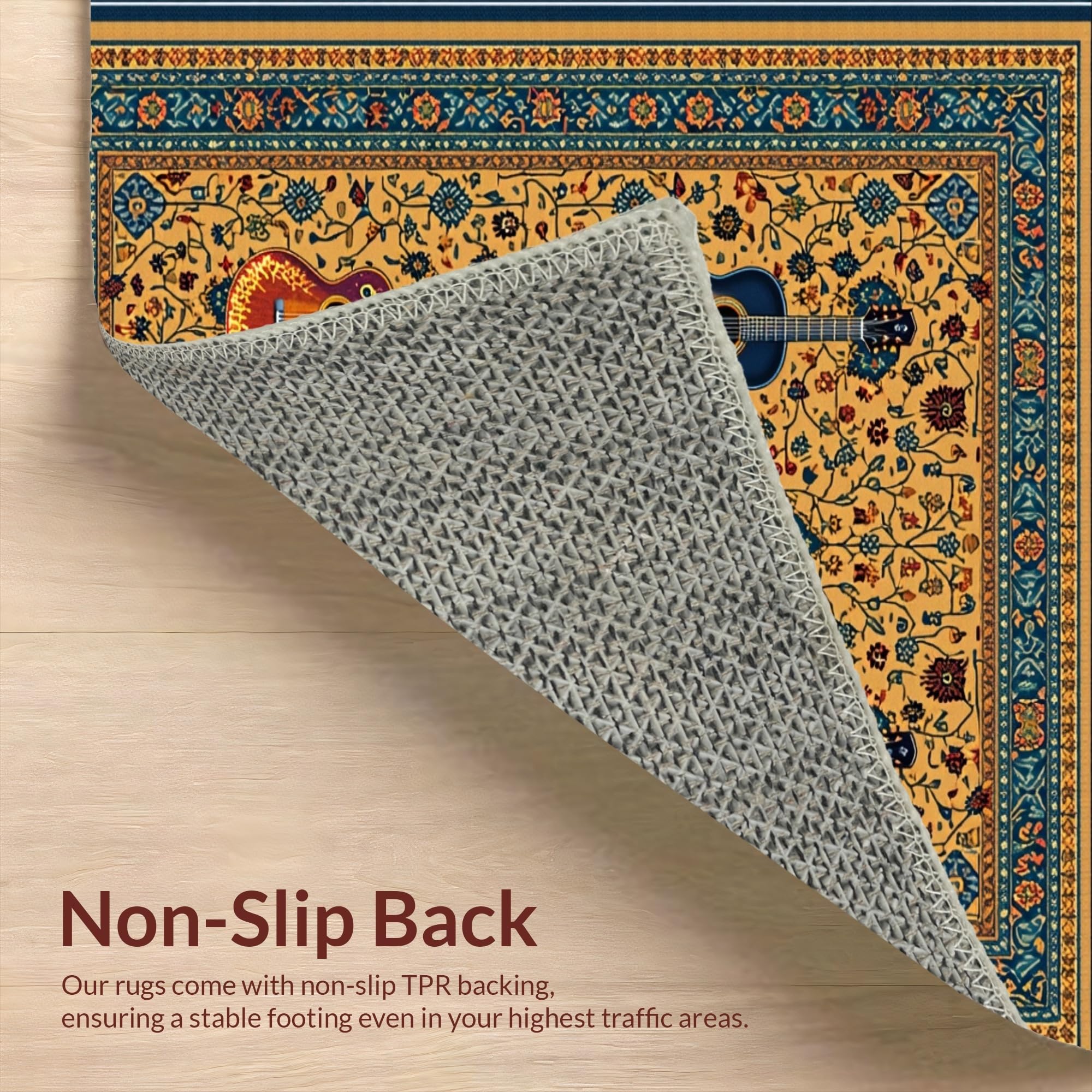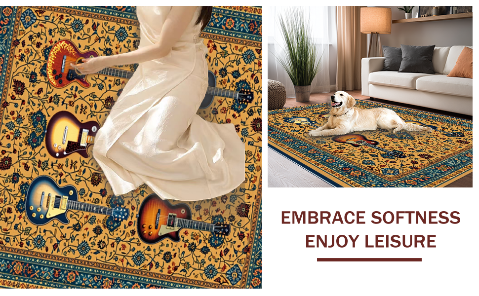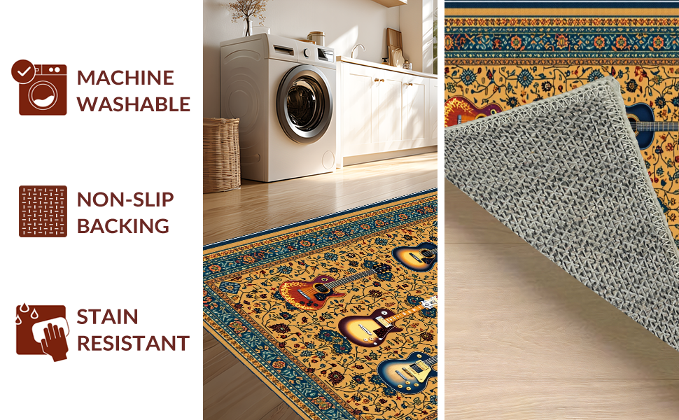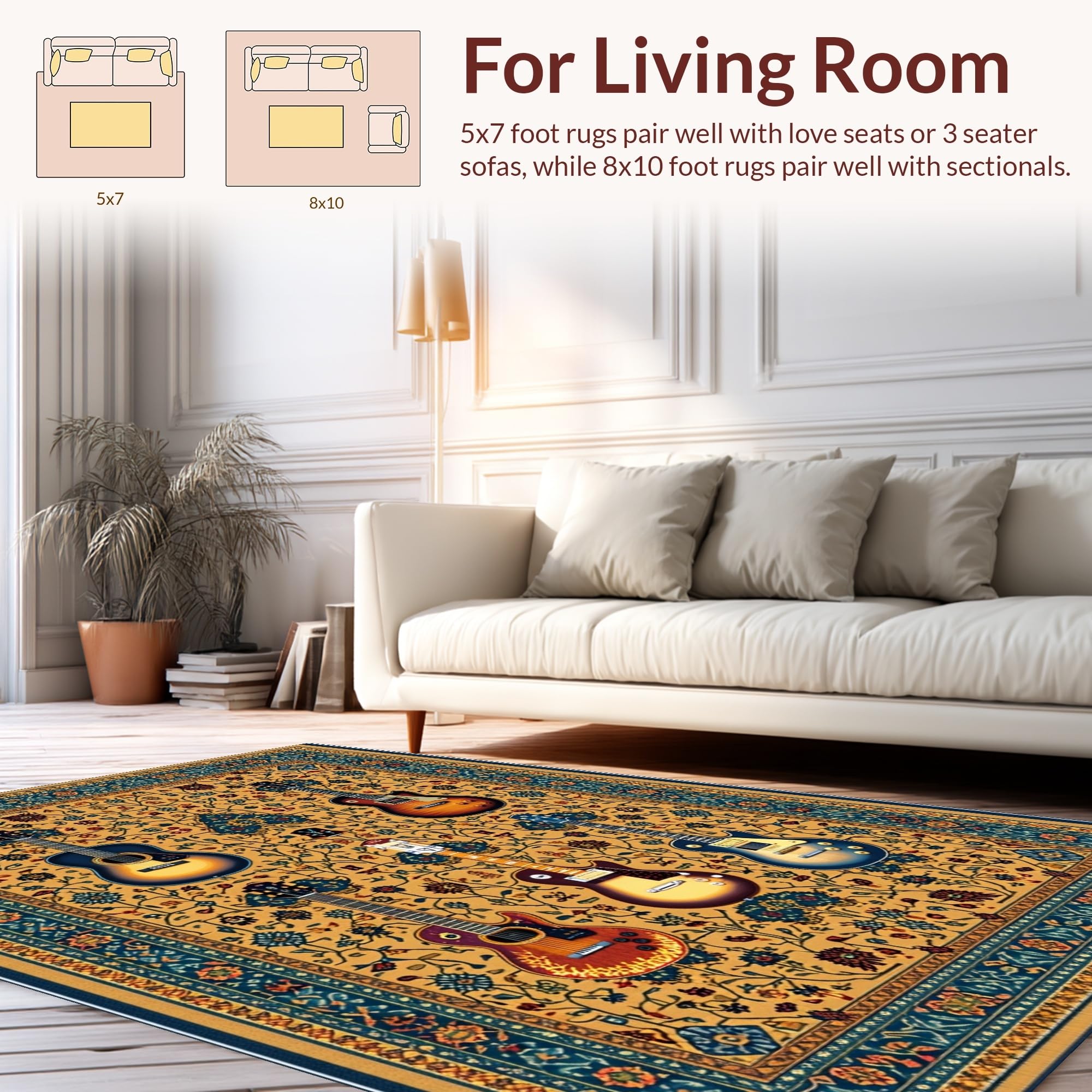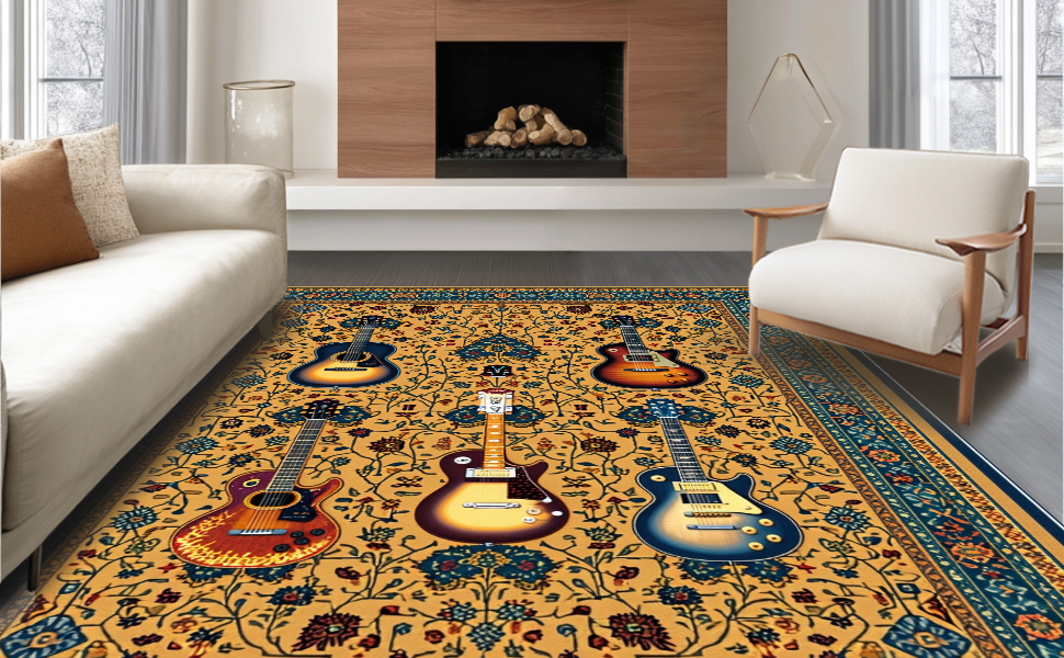 Ultra Soft Area Rug, Non Slip, Stain Resistant, Washable Area Rugs for Living Room, Bedroom, Vibrant Rock Music Aesthetic(Beige) Overview: