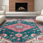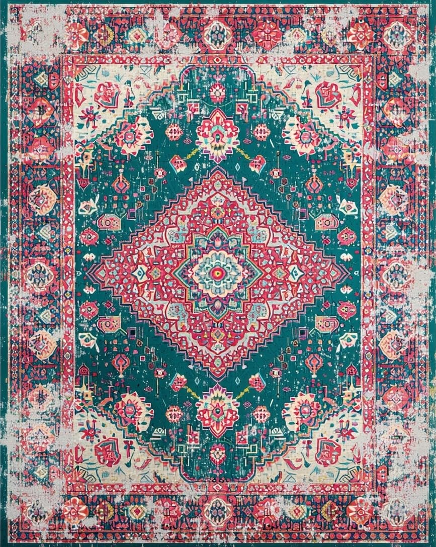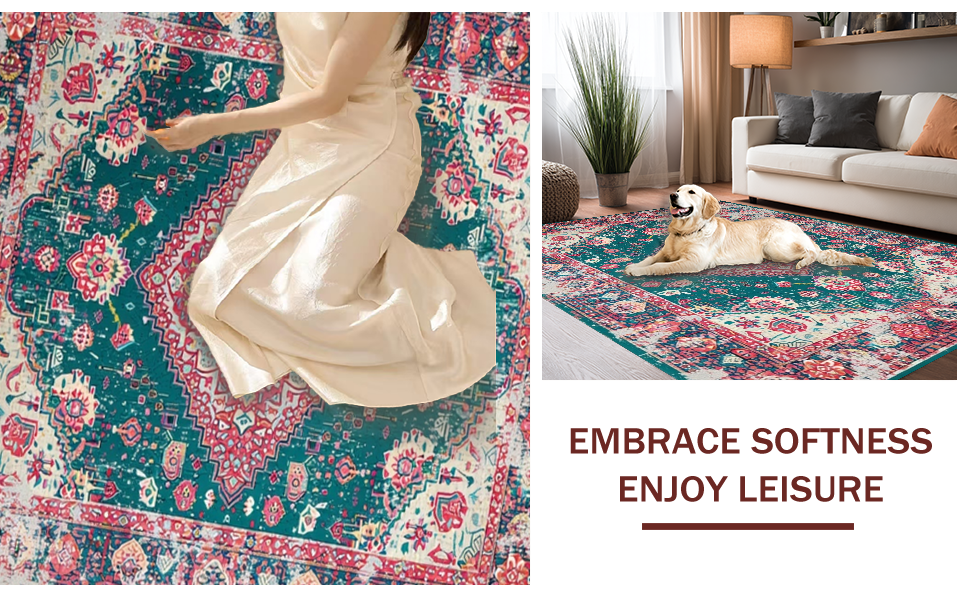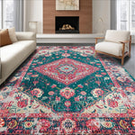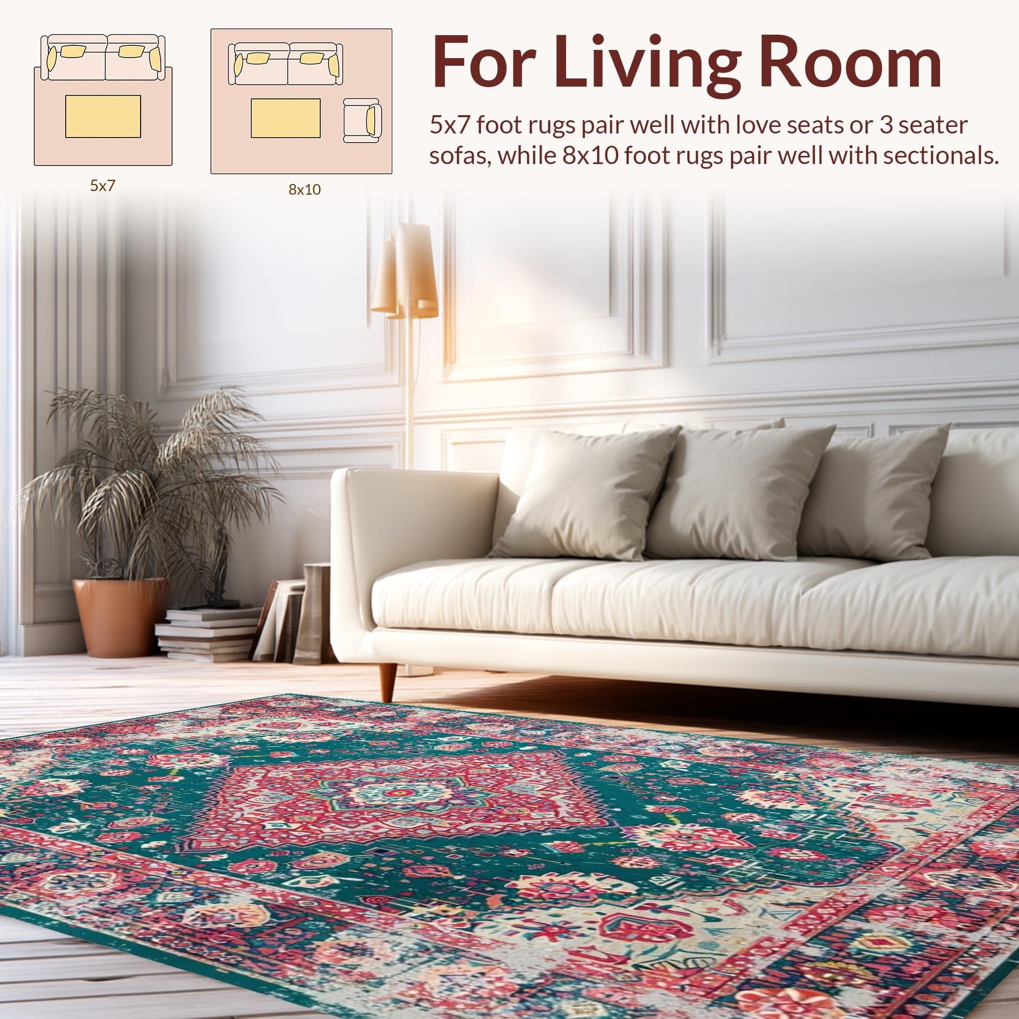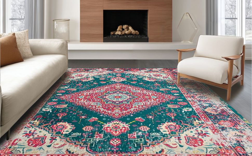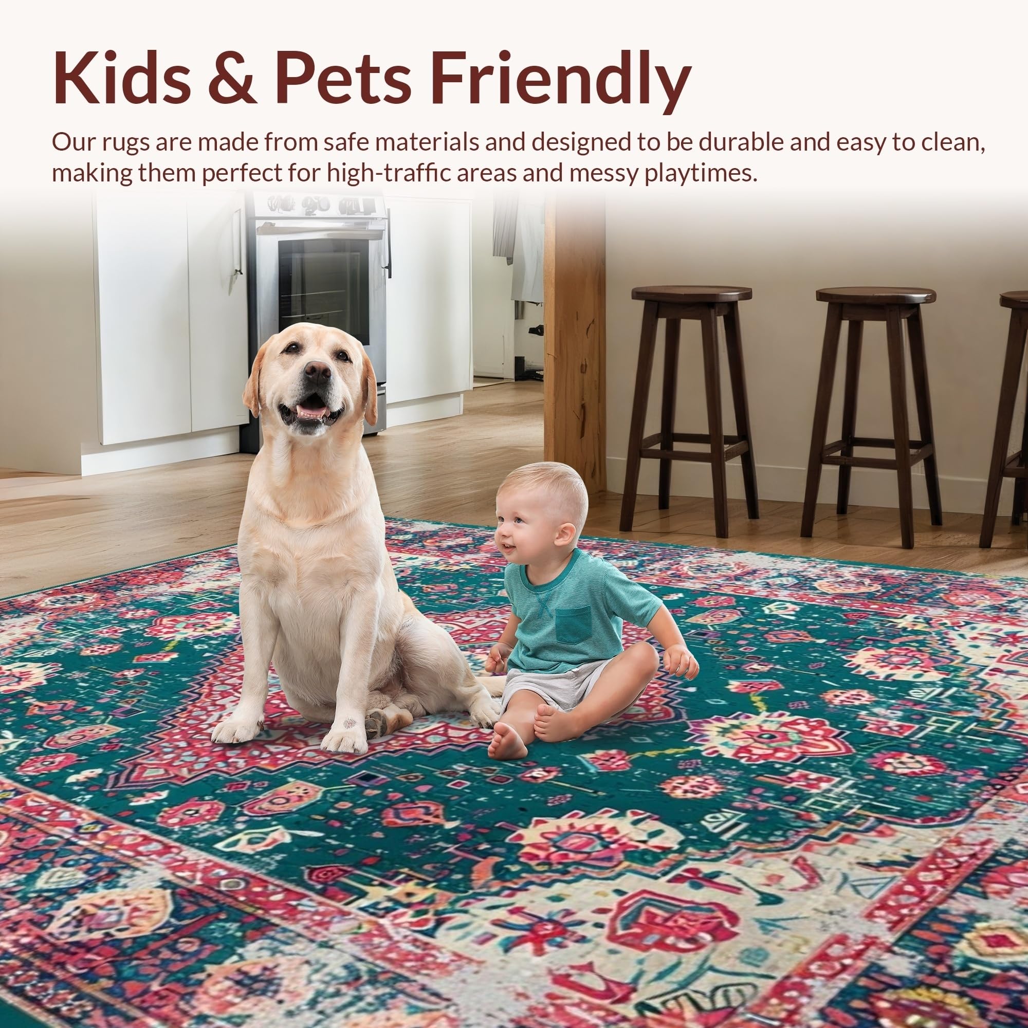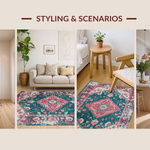 Ultra Soft Area Rug, Non Slip, Stain Resistant, Washable Area Rugs for Living Room, Bedroom, Vibrant Rose Geometric Arrangement(Green) Overview:
