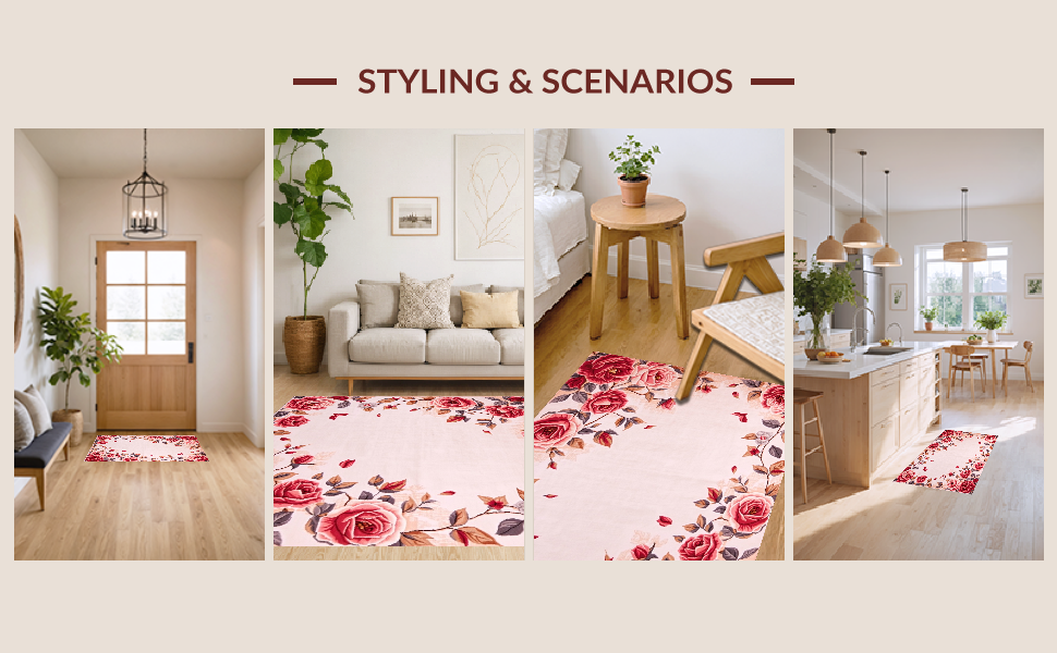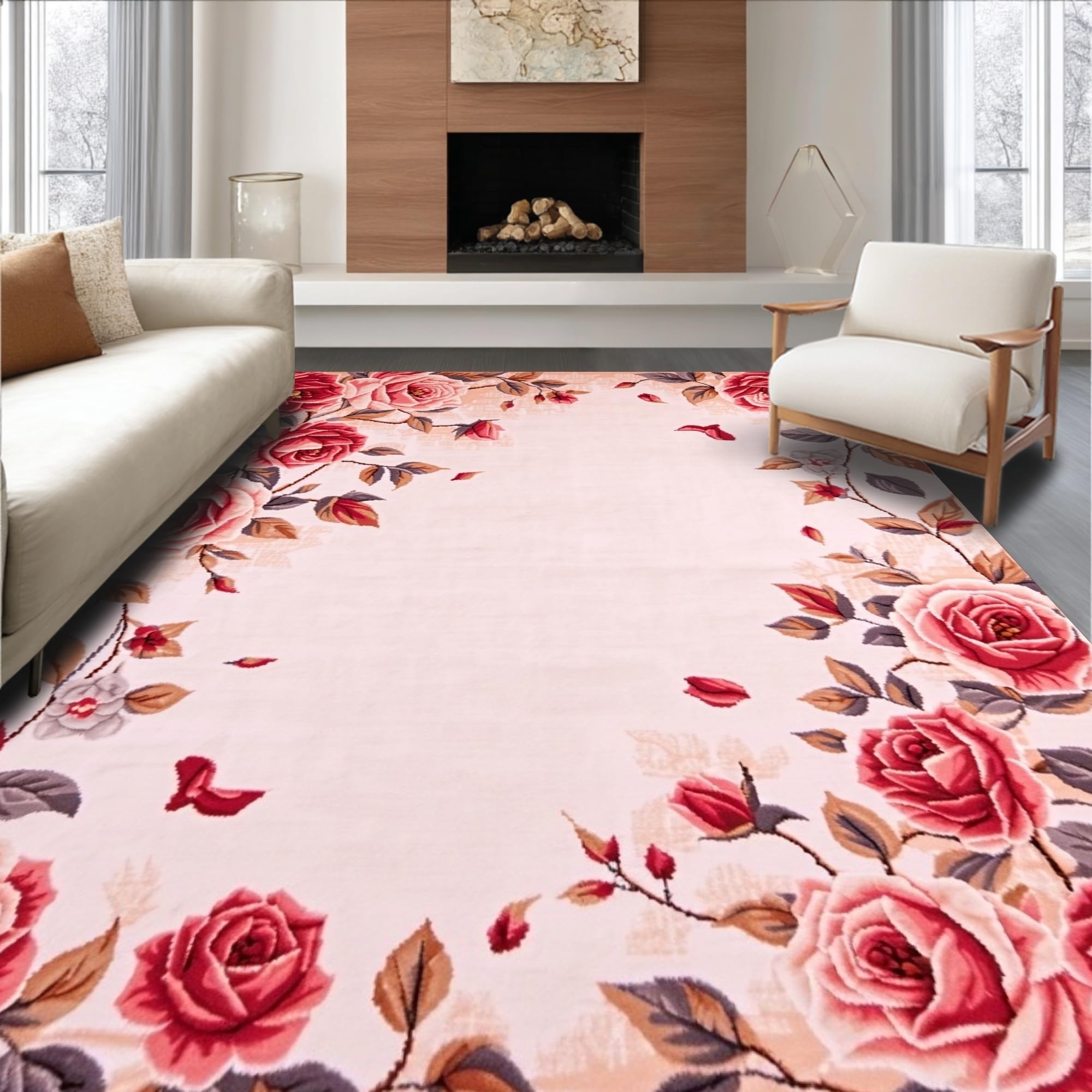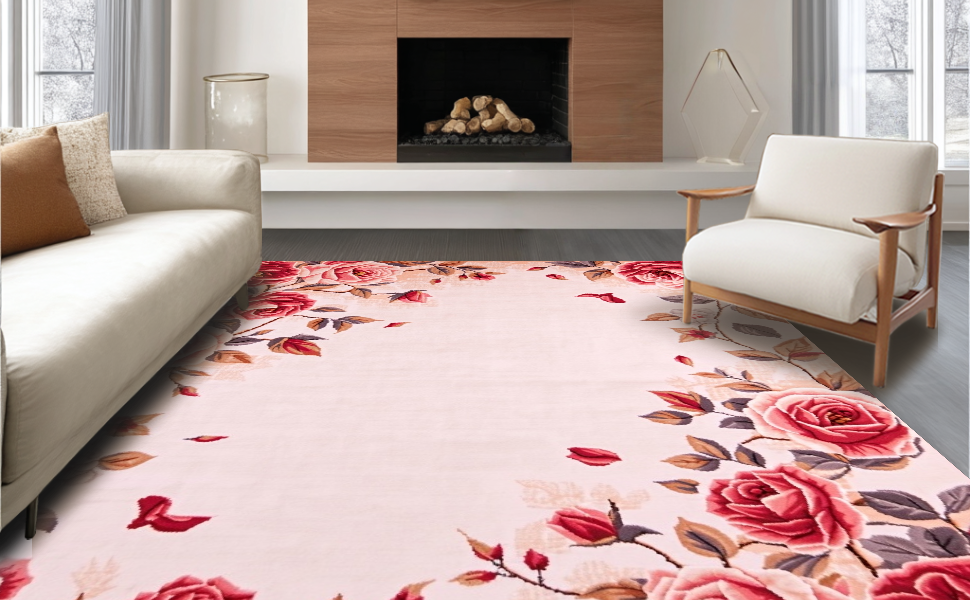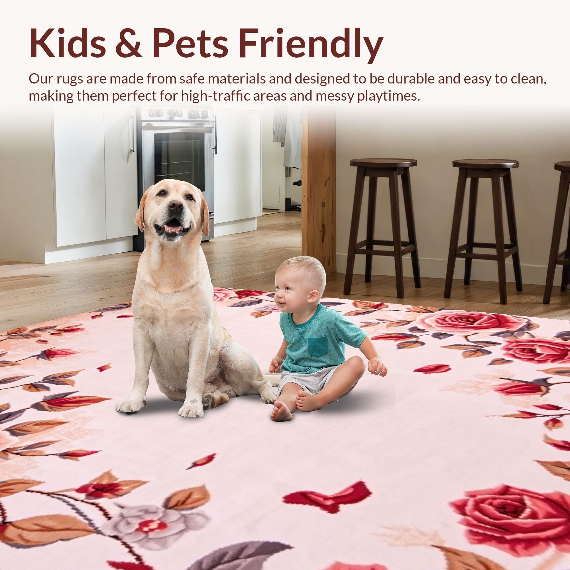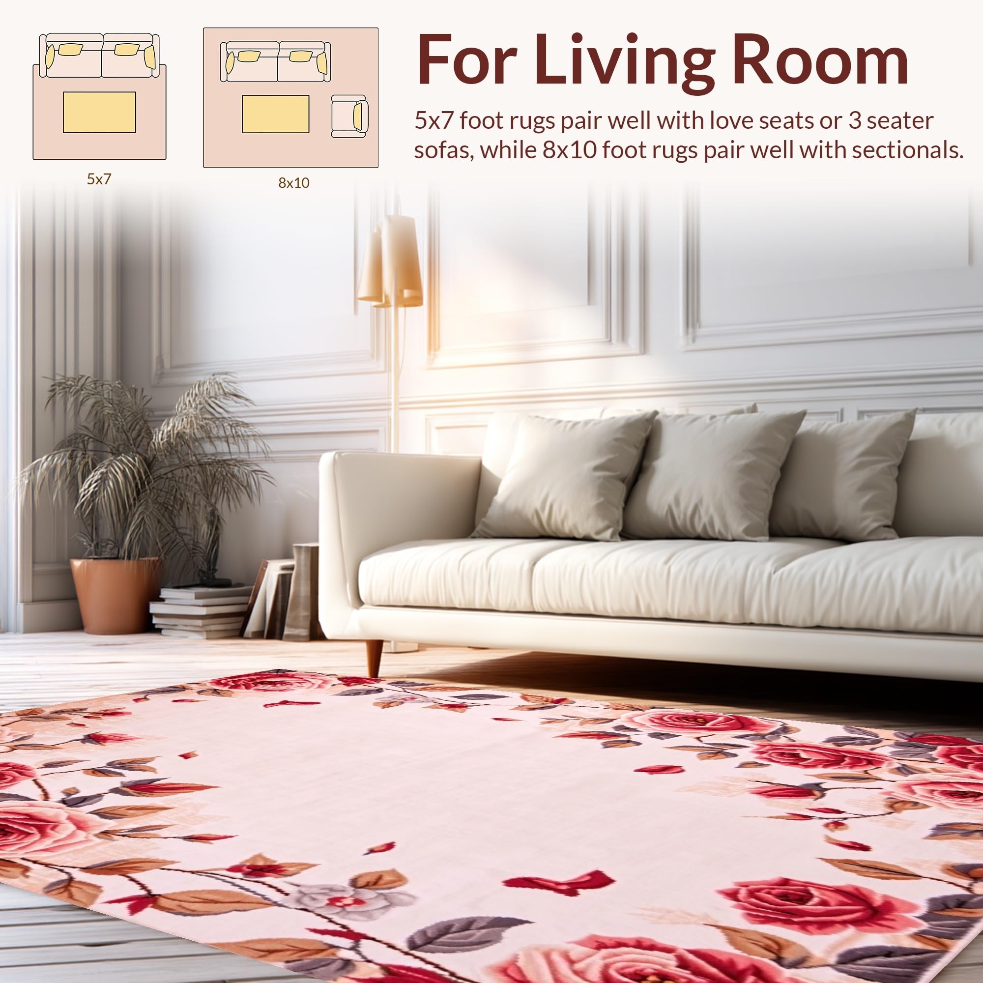 Ultra Soft Area Rug, Non Slip, Stain Resistant, Washable Area Rugs for Living Room, Bedroom, Vibrant Rosebud Textured Delight(Pink) Overview: