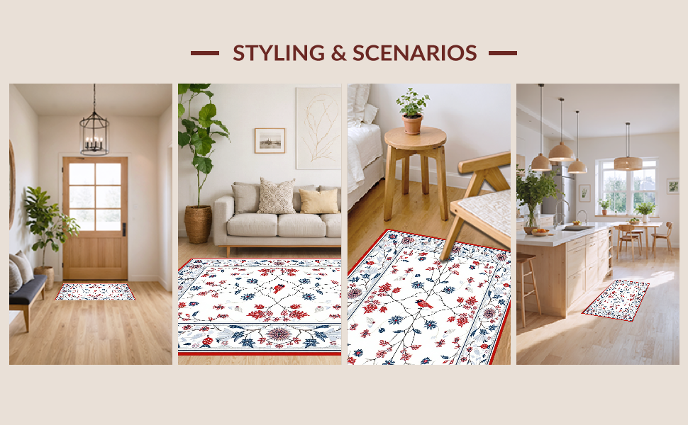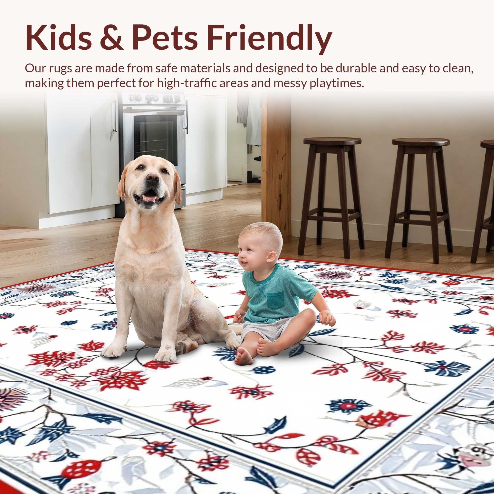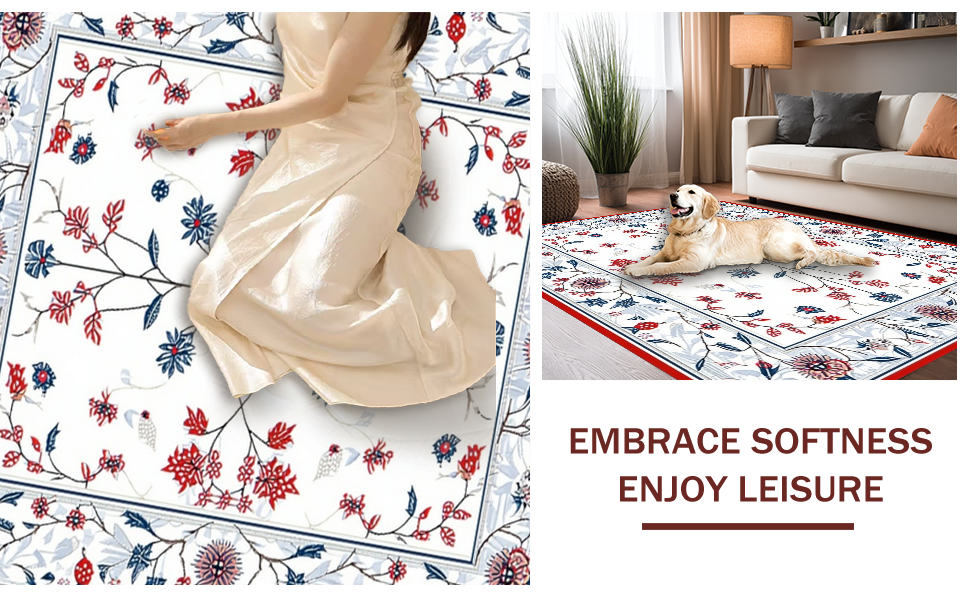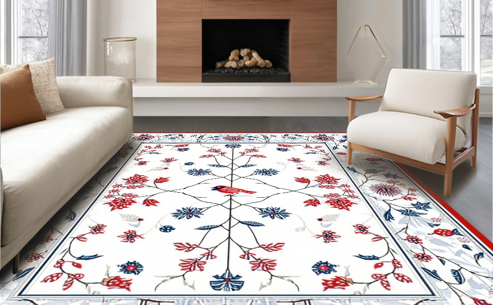 Ultra Soft Area Rug, Non Slip, Stain Resistant, Washable Area Rugs for Living Room, Bedroom, Vibrant Seasonal Feathered Design(White) Overview: