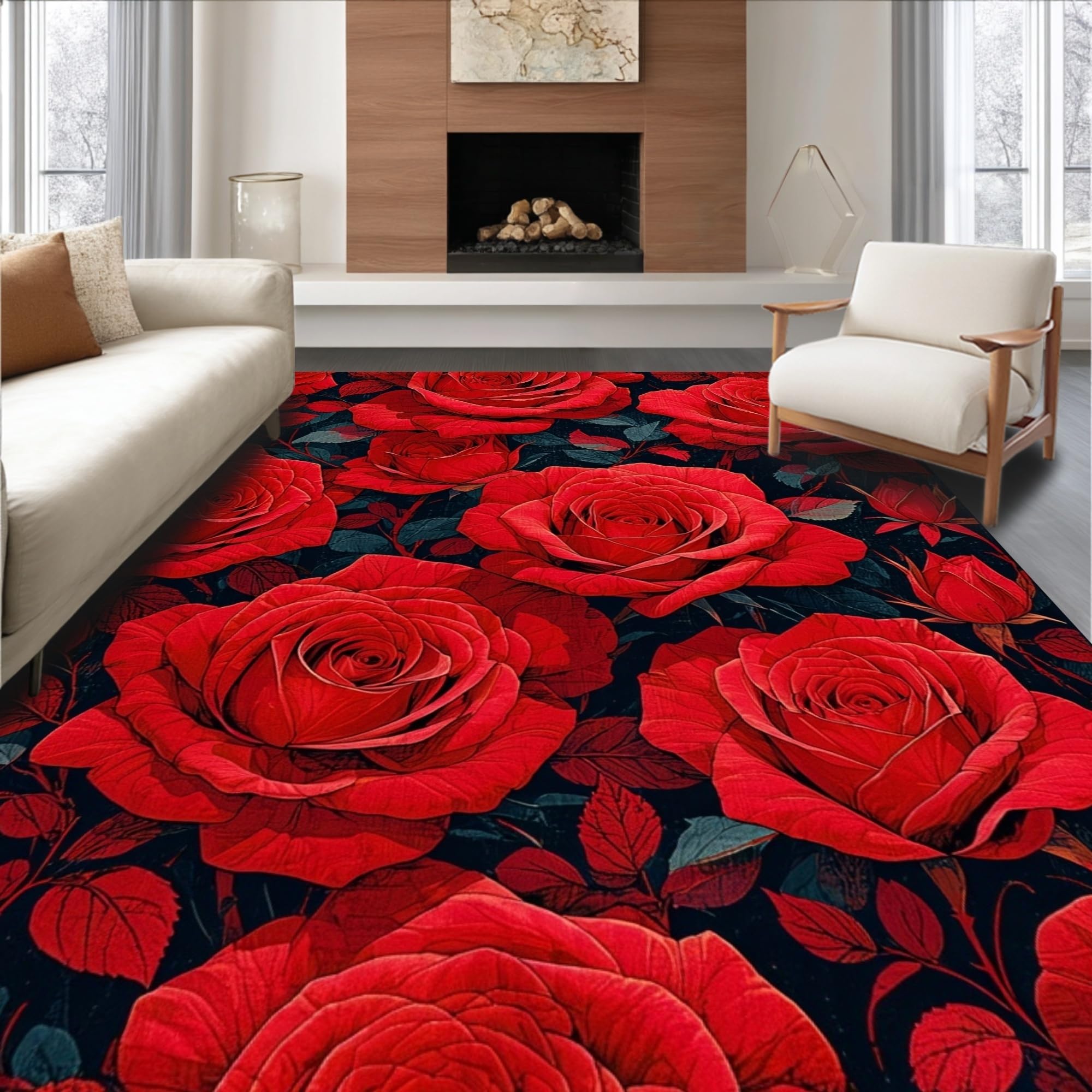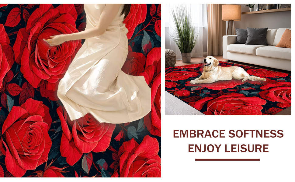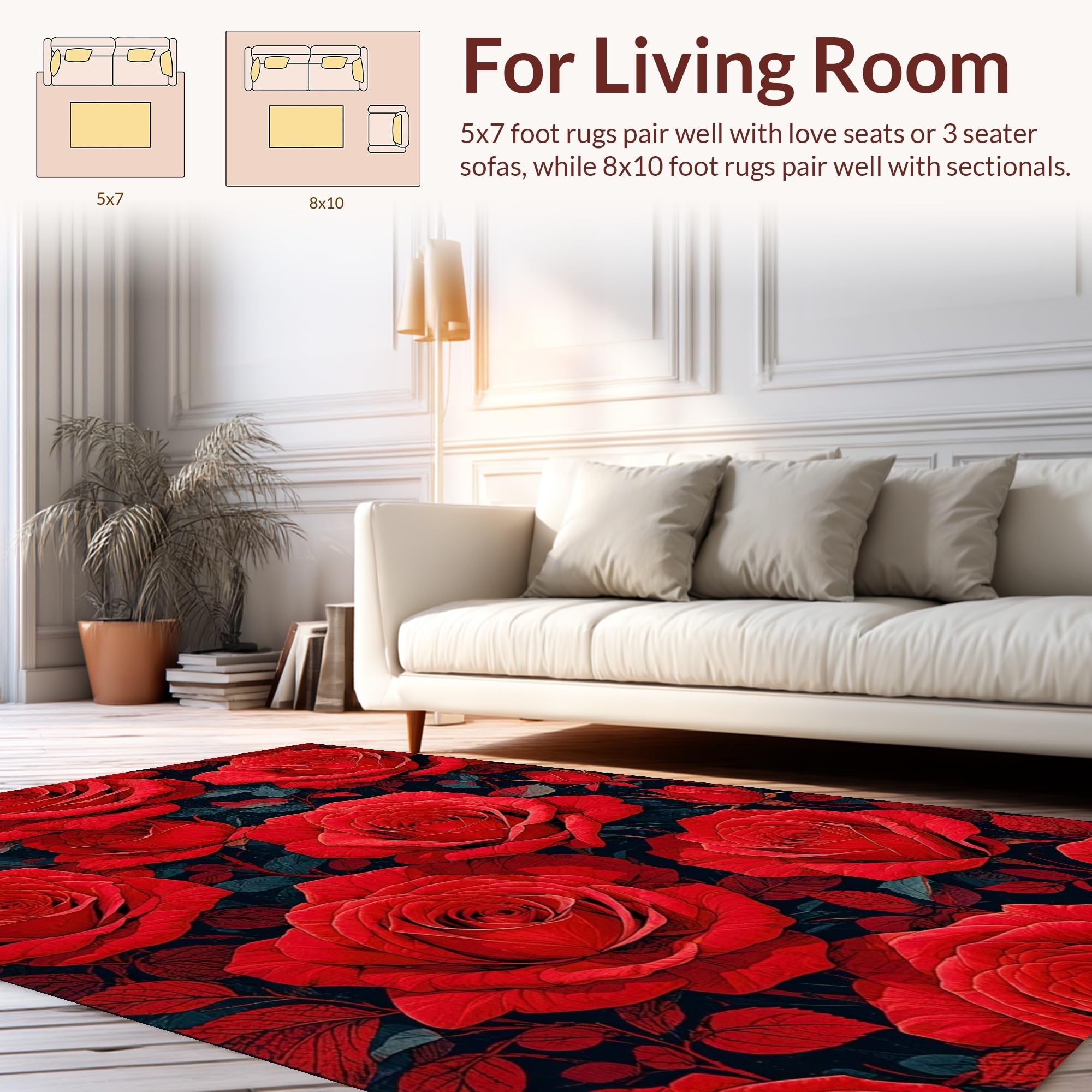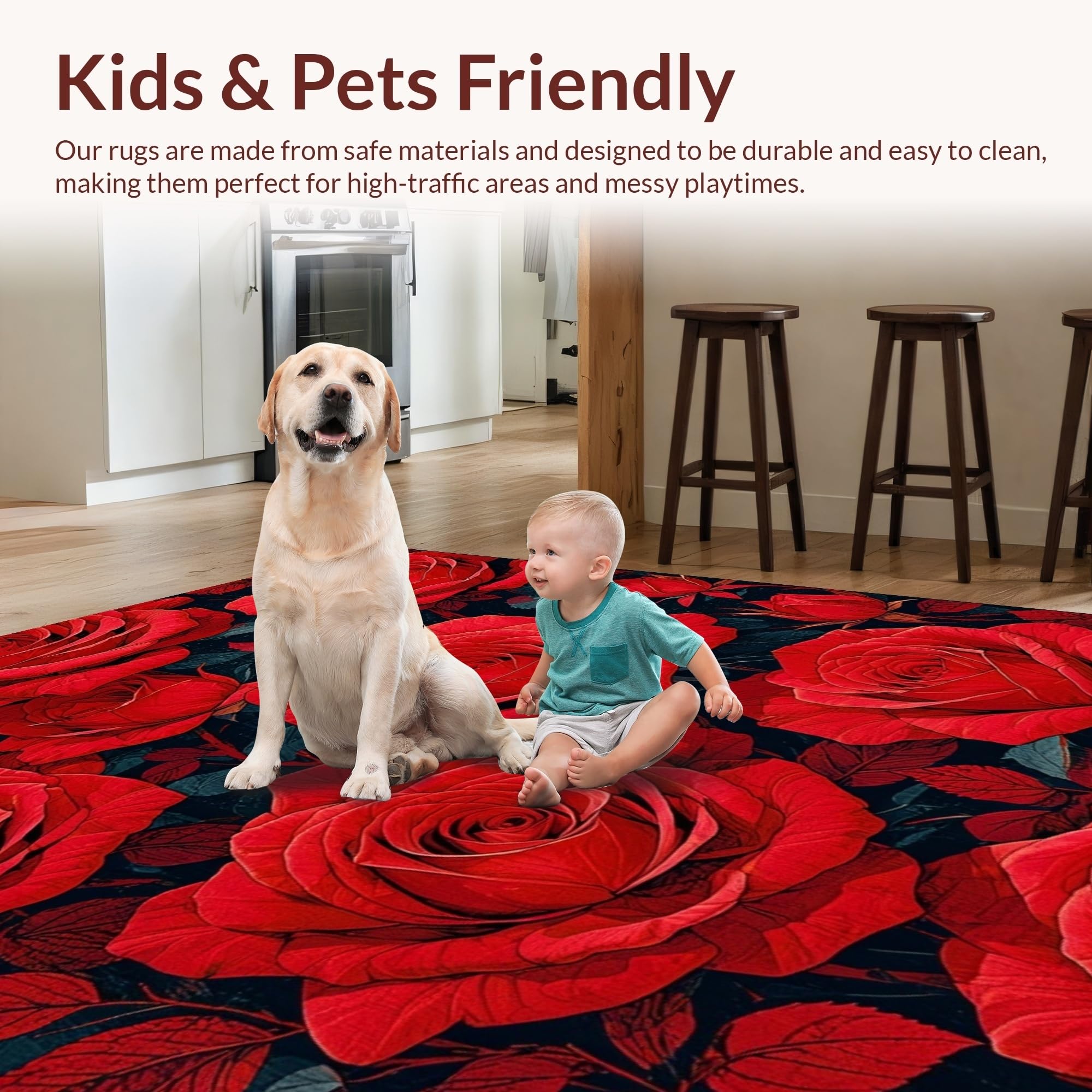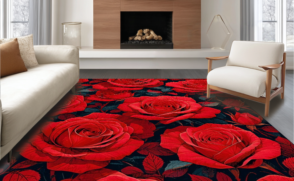 Ultra Soft Area Rug, Non Slip, Stain Resistant, Washable Area Rugs for Living Room, Bedroom, Vibrant Shaggy Floral Elegance(Red) Overview: