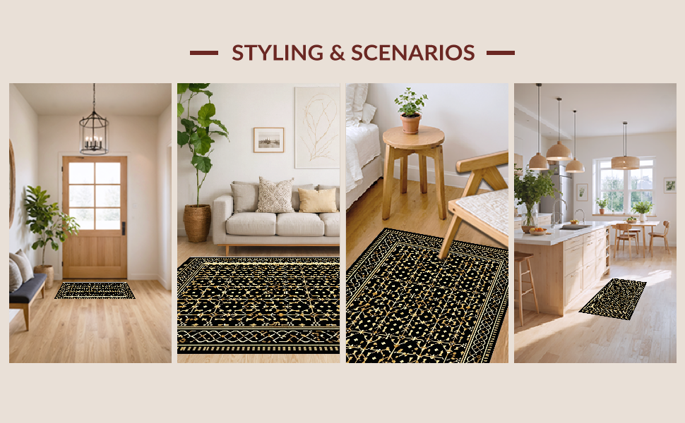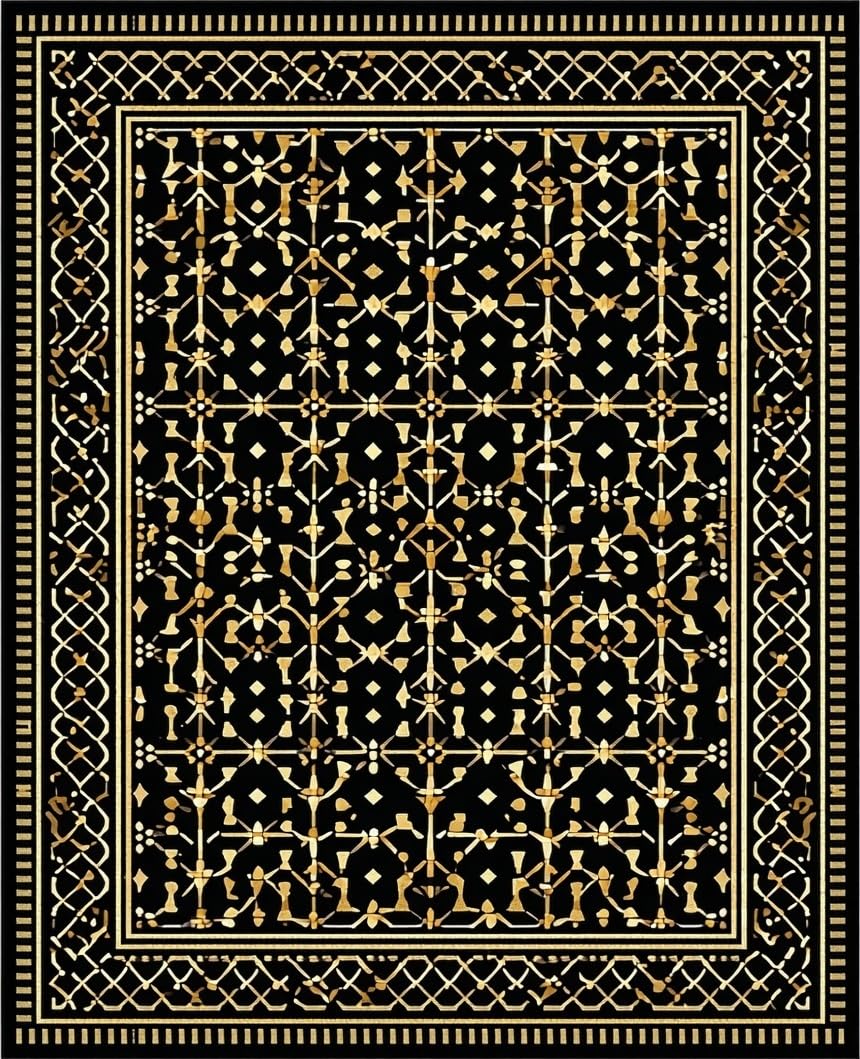 Ultra Soft Area Rug, Non Slip, Stain Resistant, Washable Area Rugs for Living Room, Bedroom, Vibrant Shaggy Trellis Motif(Black) Overview: