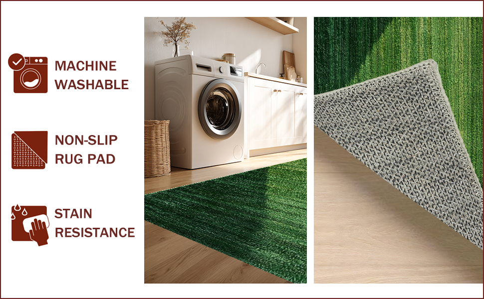 Ultra Soft Area Rug, Non Slip, Stain Resistant, Washable Area Rugs for Living Room, Bedroom, Vibrant Soft Eclectic Aesthetic(Green) Overview: