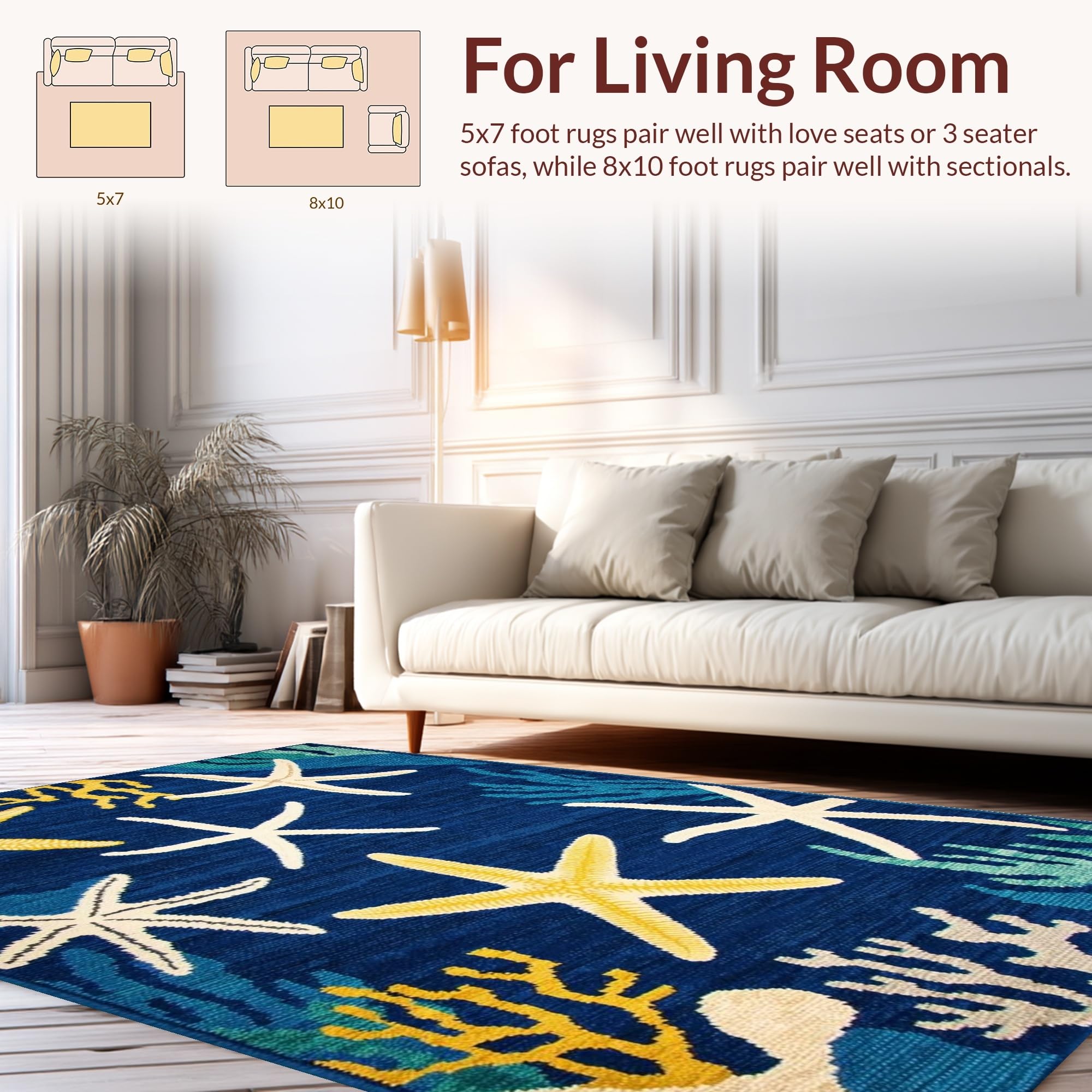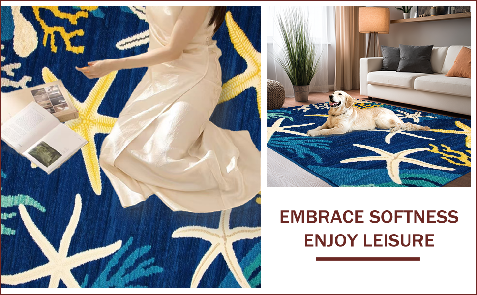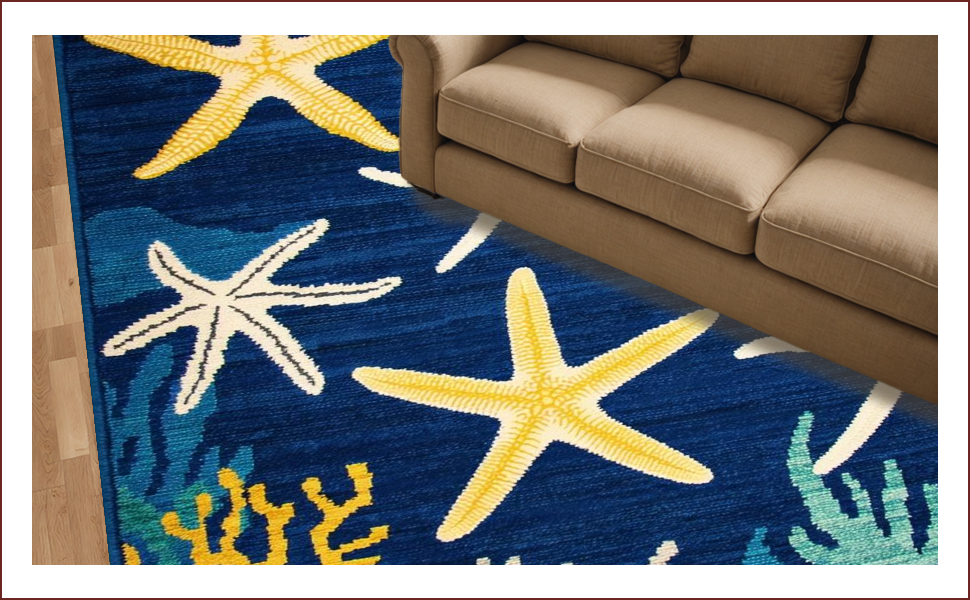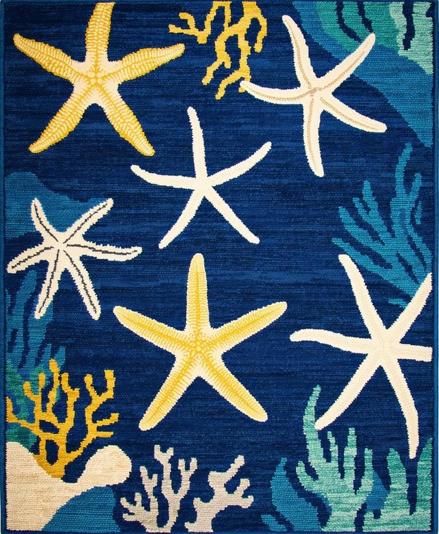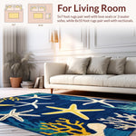 Ultra Soft Area Rug, Non Slip, Stain Resistant, Washable Area Rugs for Living Room, Bedroom, Vibrant Starfish Coastal Aesthetic(Blue) Overview:
