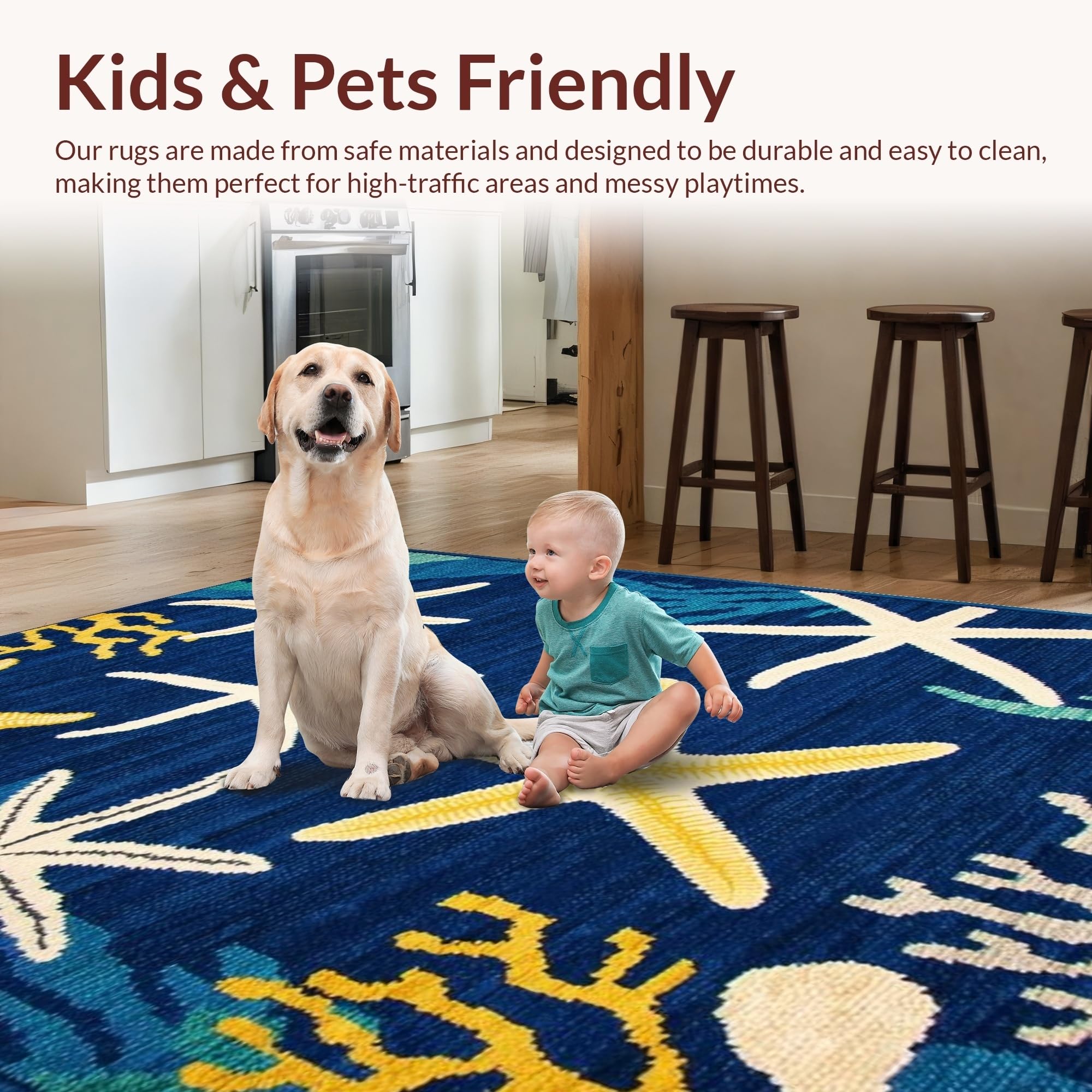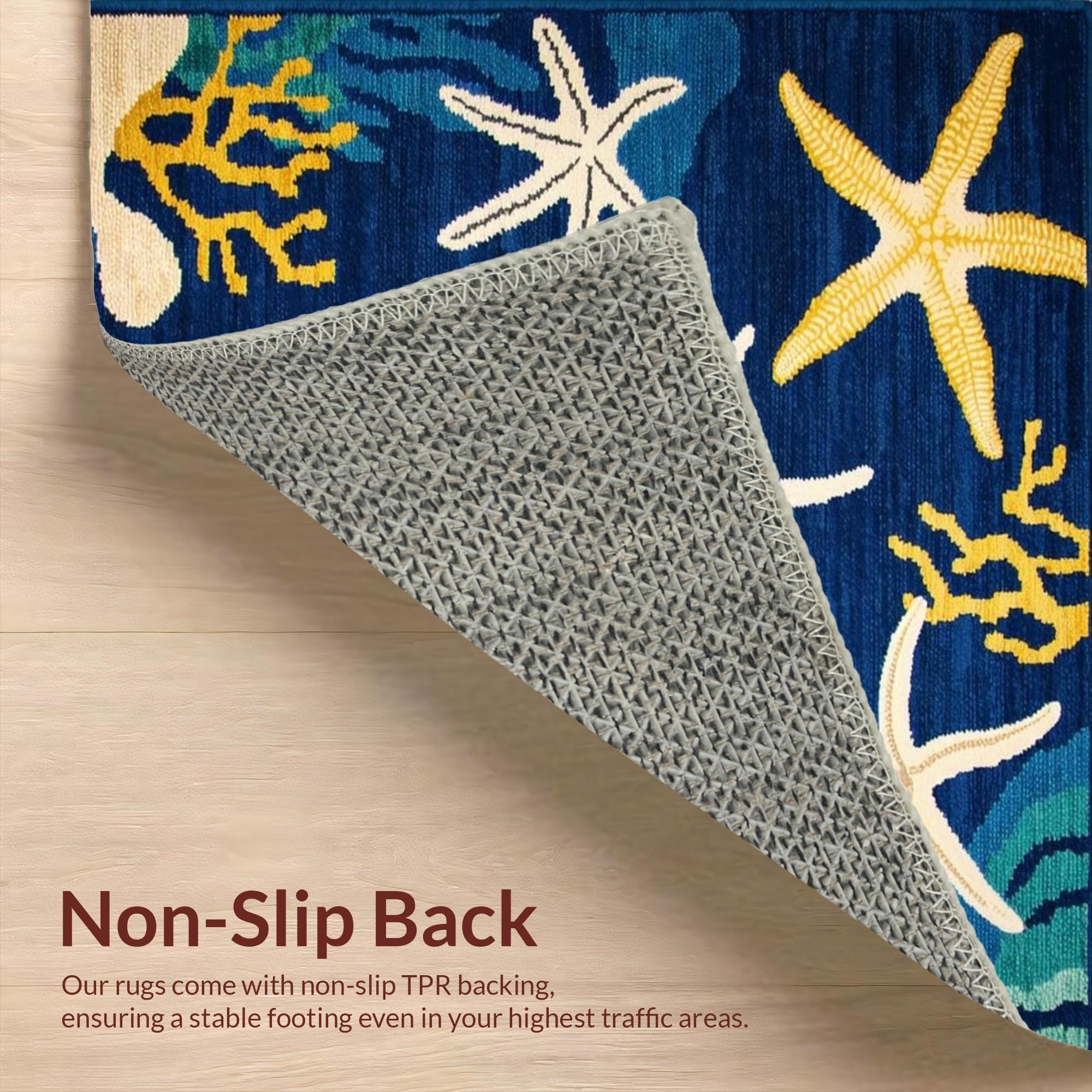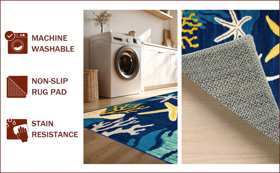 Ultra Soft Area Rug, Non Slip, Stain Resistant, Washable Area Rugs for Living Room, Bedroom, Vibrant Starfish Coastal Aesthetic(Blue) Overview: