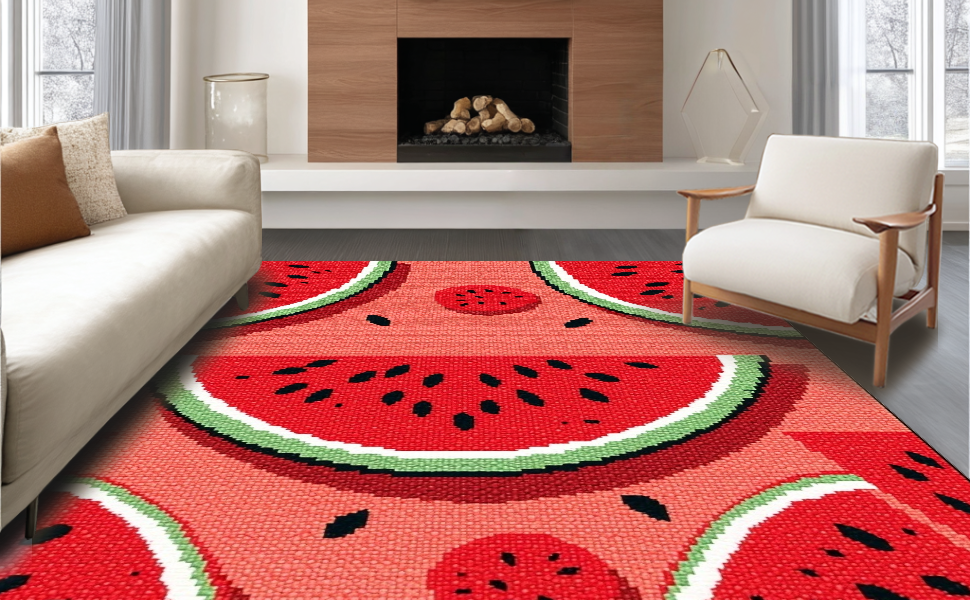 Ultra Soft Area Rug, Non Slip, Stain Resistant, Washable Area Rugs for Living Room, Bedroom, Vibrant Summer Splash Motif(Red) Overview:
