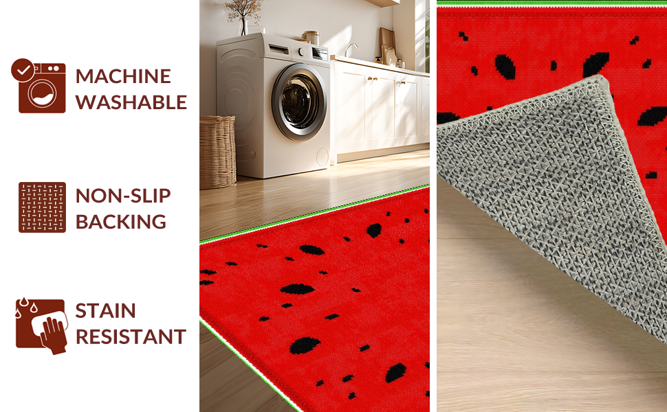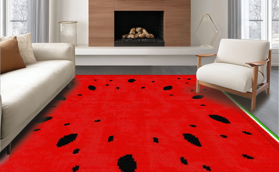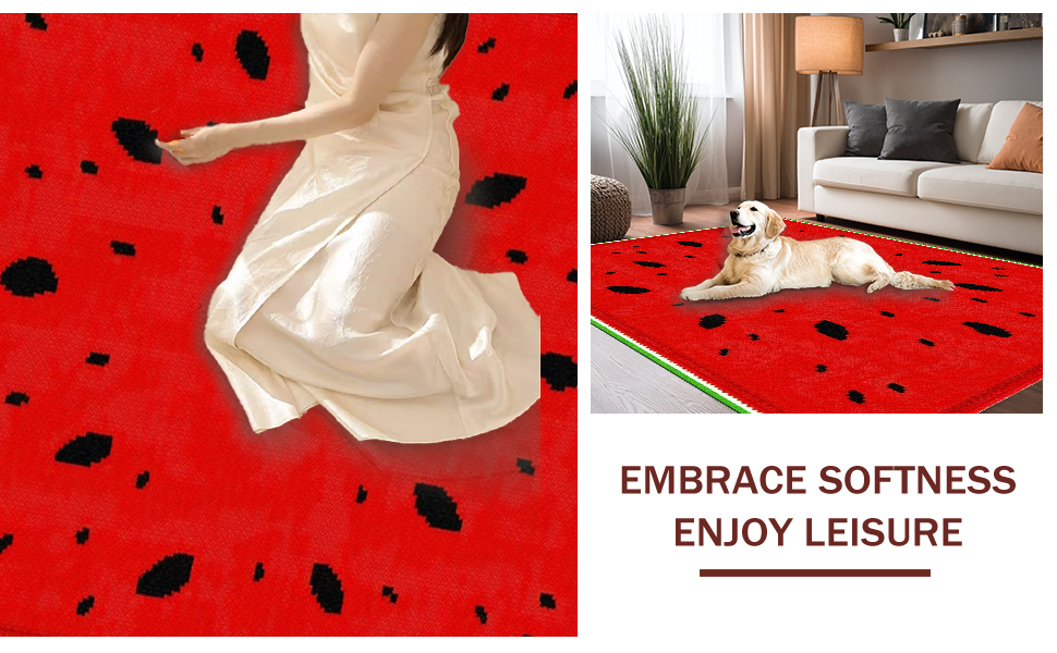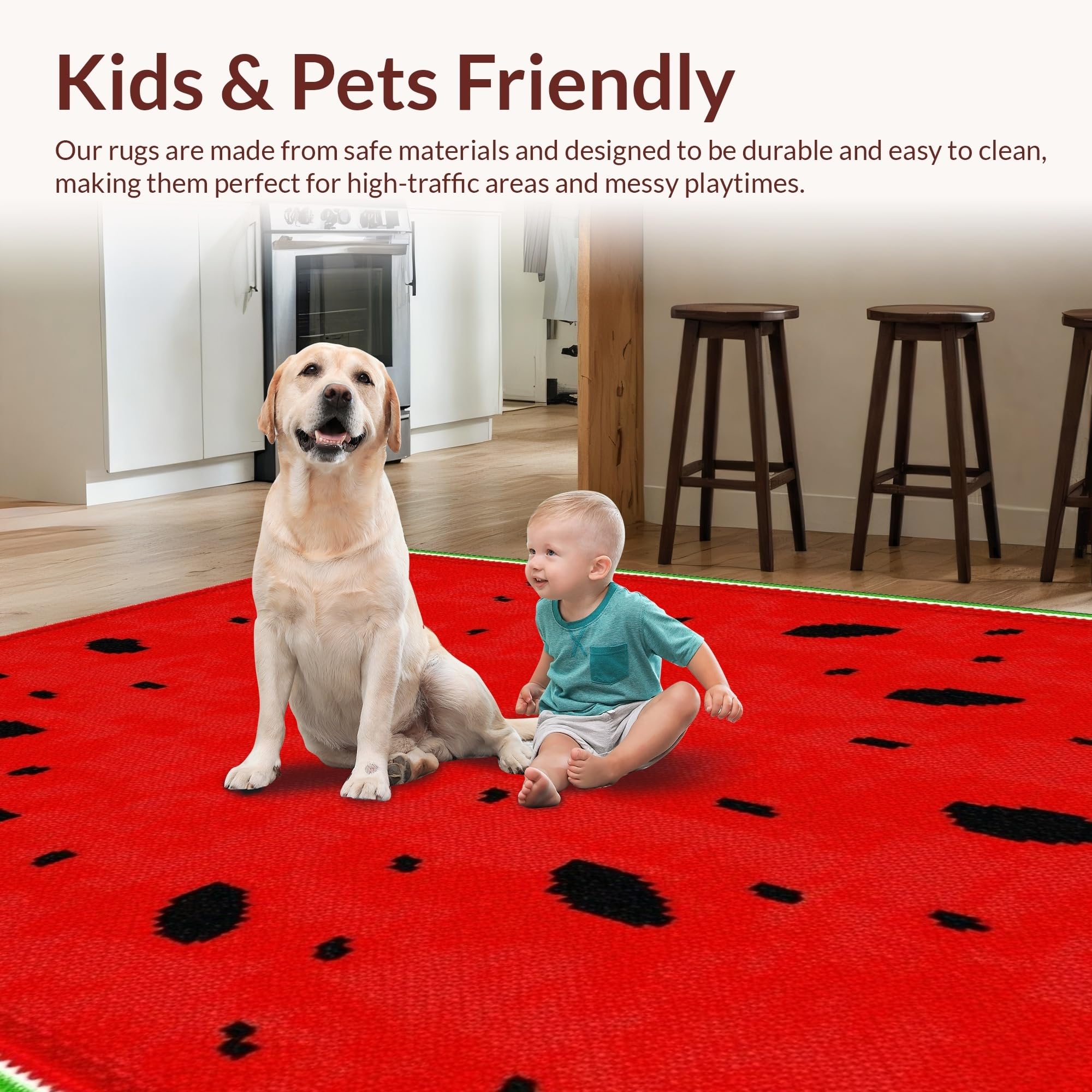 Ultra Soft Area Rug, Non Slip, Stain Resistant, Washable Area Rugs for Living Room, Bedroom, Vibrant Summer Watermelon Aesthetic(Red) Overview: