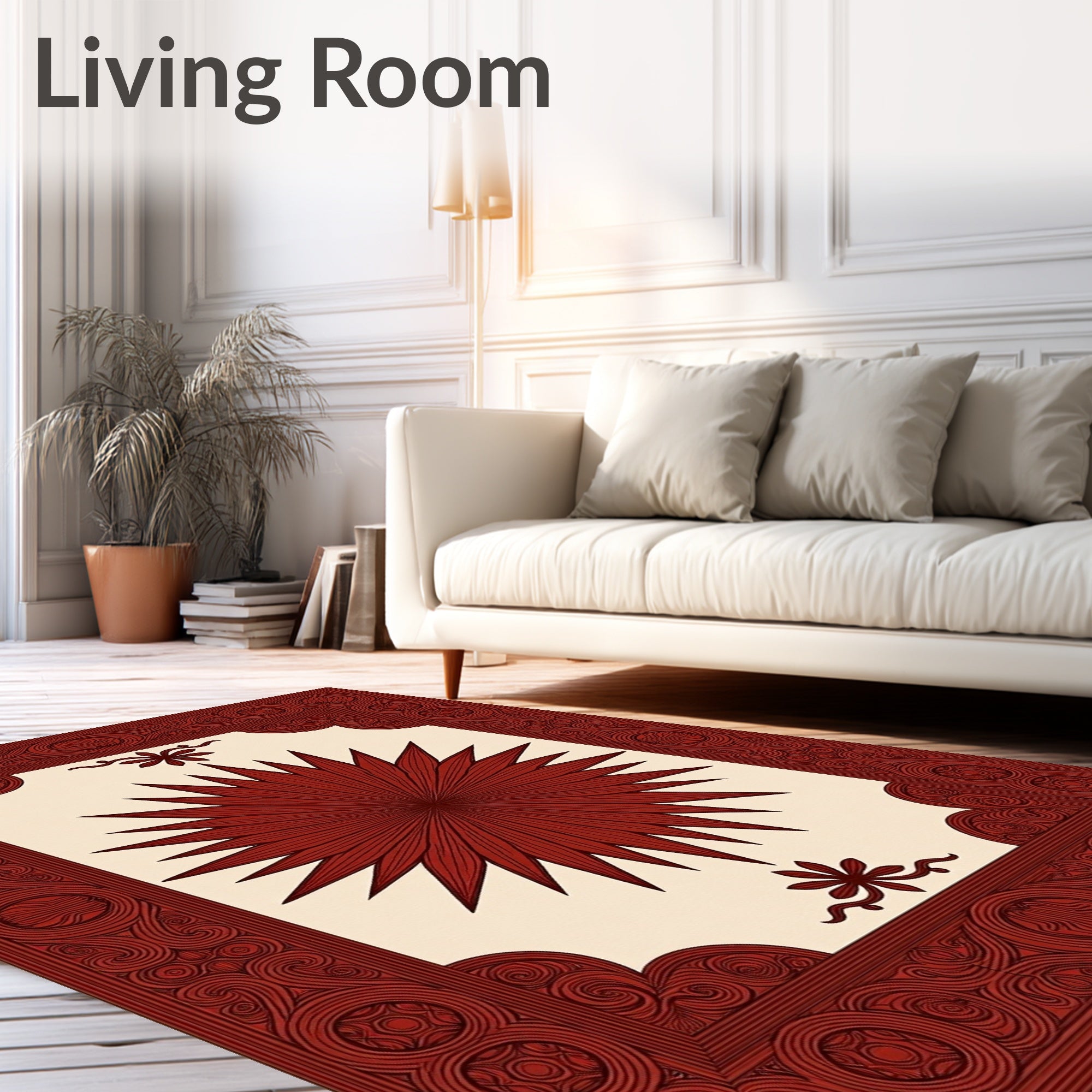 Ultra Soft Area Rug, Non Slip, Stain Resistant, Washable Area Rugs for Living Room, Bedroom, Vibrant Sunburst Medallion Decorative Accent(Red) Overview: