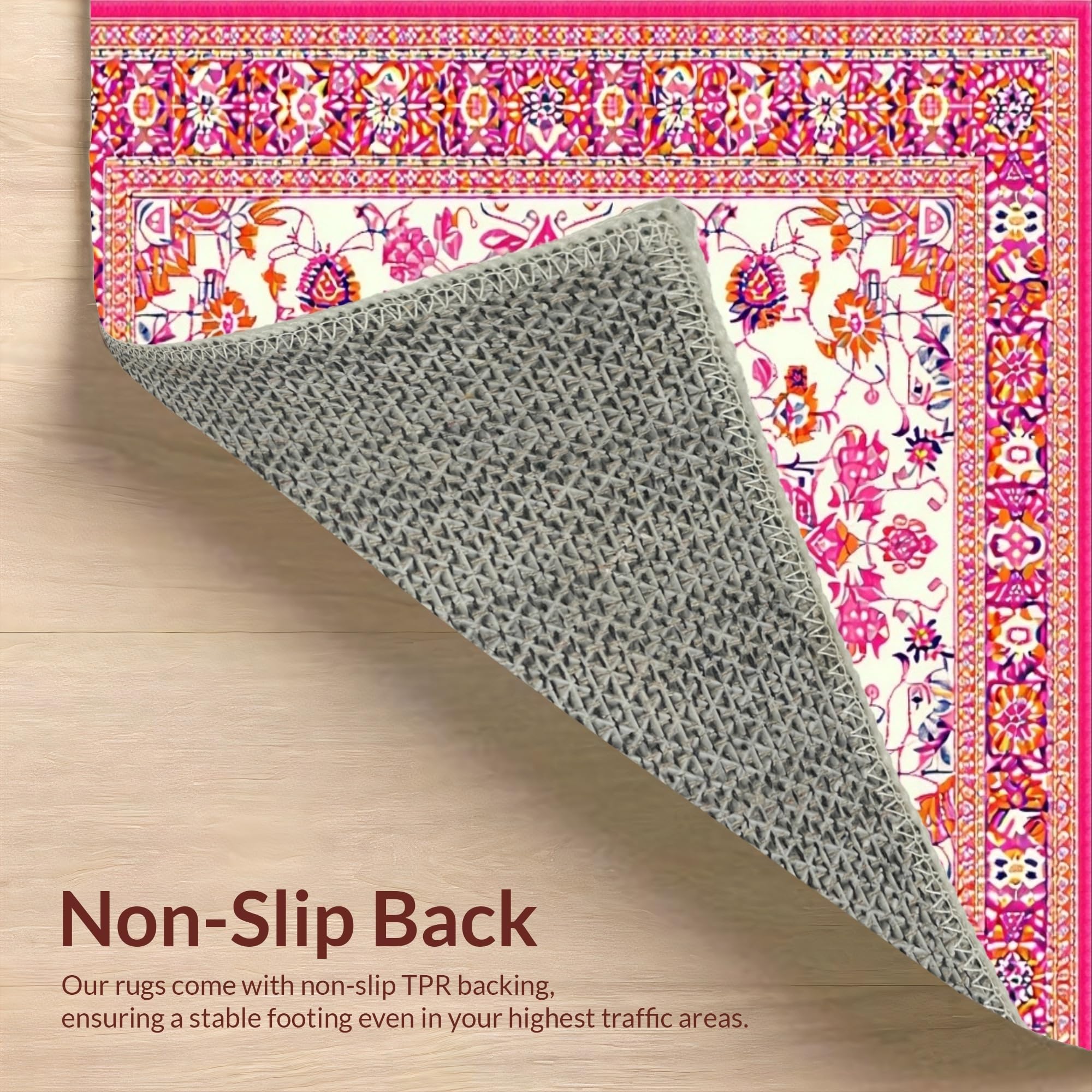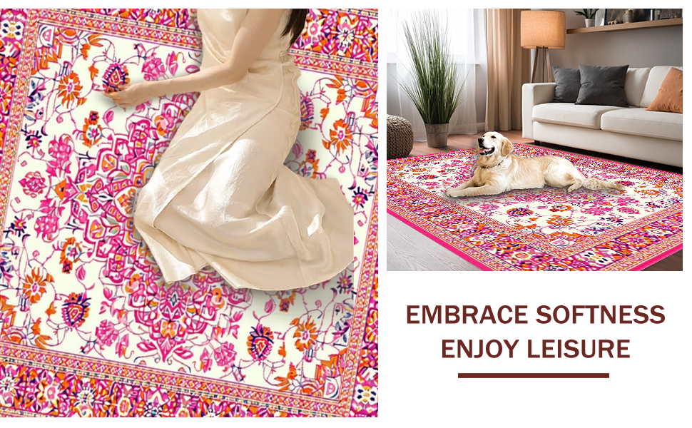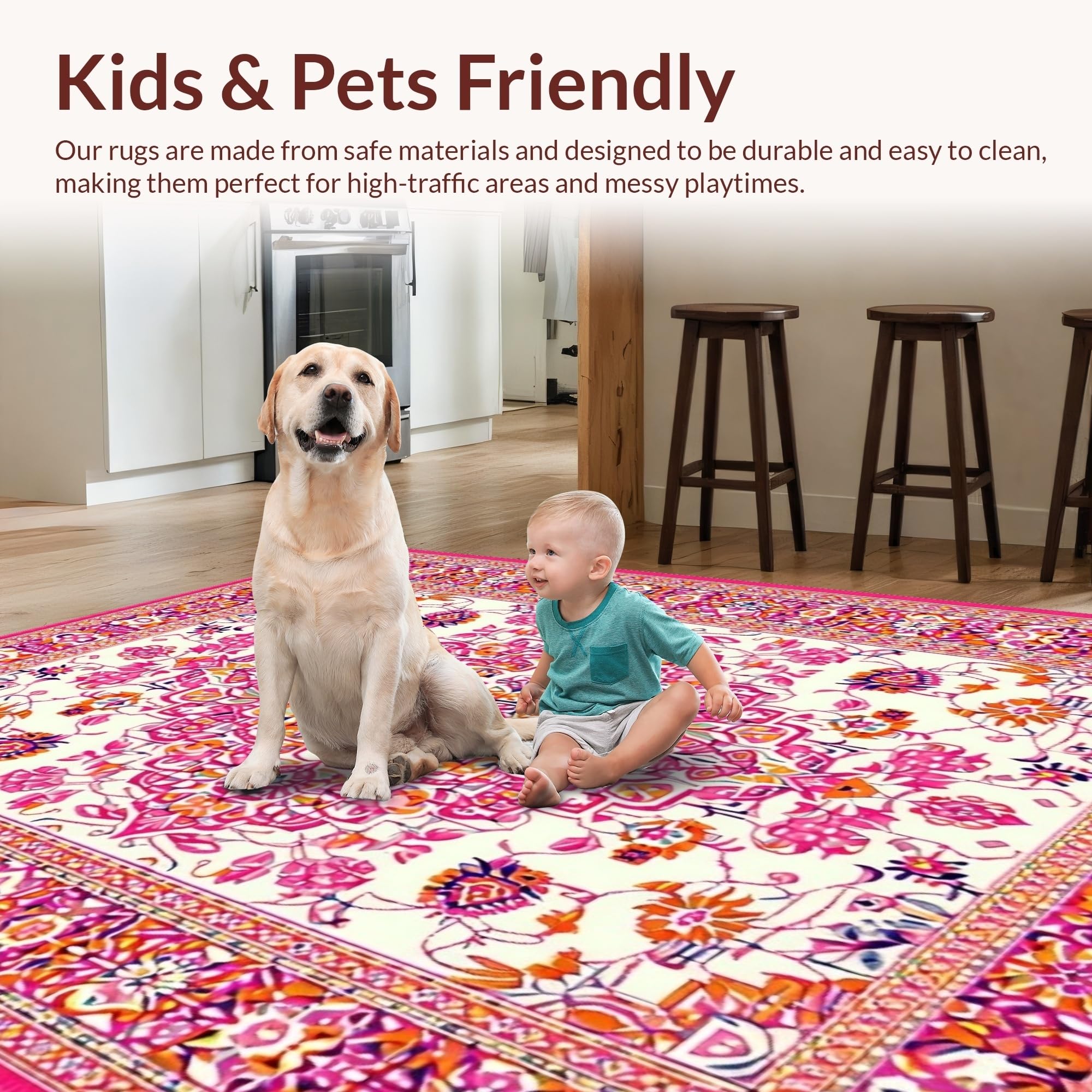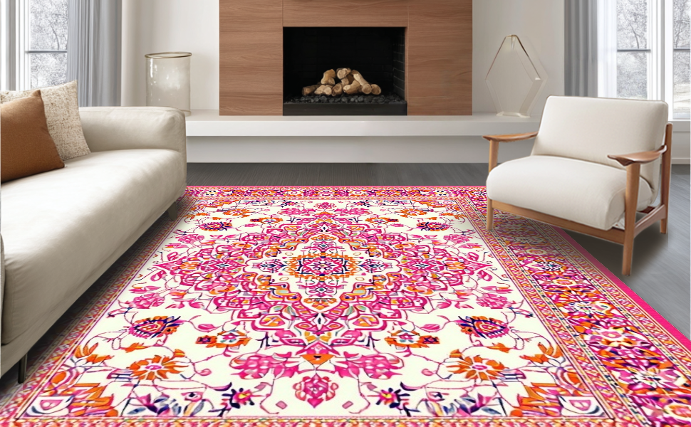 Ultra Soft Area Rug, Non Slip, Stain Resistant, Washable Area Rugs for Living Room, Bedroom, Vibrant Symmetrical Floral Design(White) Overview: