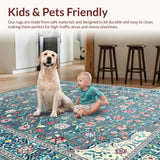 Ultra Soft Area Rug, Non Slip, Stain Resistant, Washable Area Rugs for Living Room, Bedroom, Vibrant Teal Botanical Harmony(Blue) Overview: