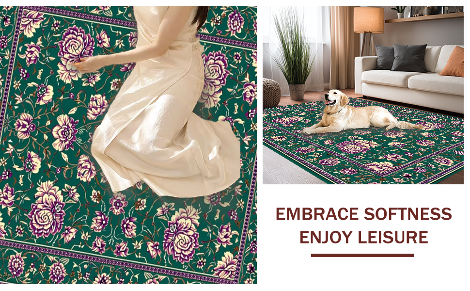 Ultra Soft Area Rug, Non Slip, Stain Resistant, Washable Area Rugs for Living Room, Bedroom, Vibrant Textured Flower Arrangement(Green) Overview: